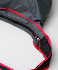 パッカブル時の形状は、収納された寝袋をモチーフにデザイン。ナンガらしい遊び心を感じさせるディテールです。メイン収納部はファスナー開閉式のため、移動時でも中身が落ちにくく、安心して使用できます。