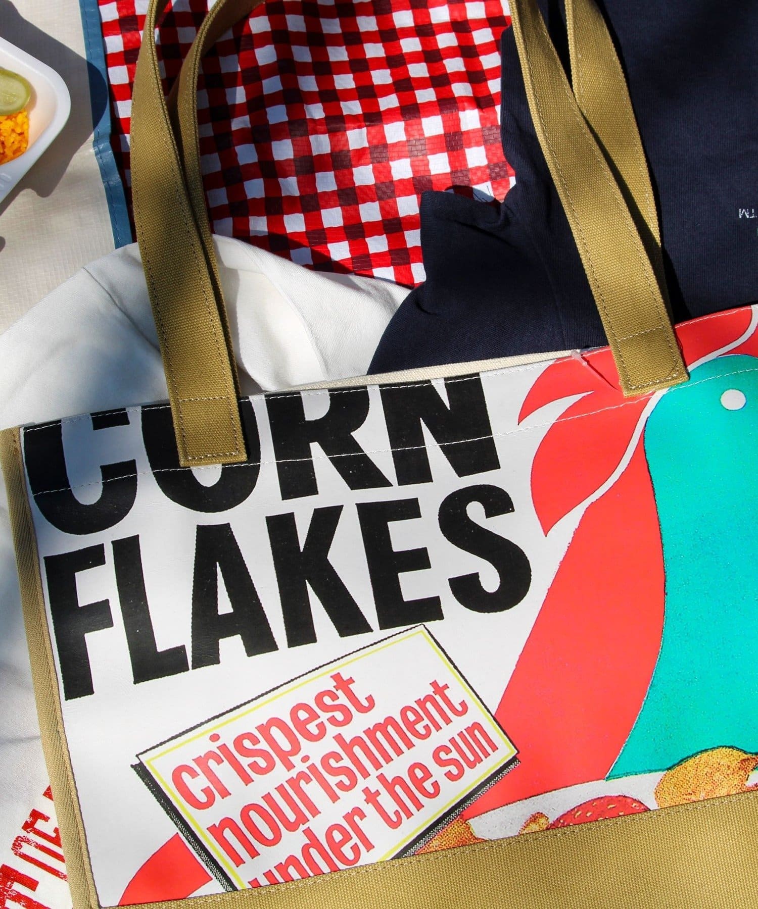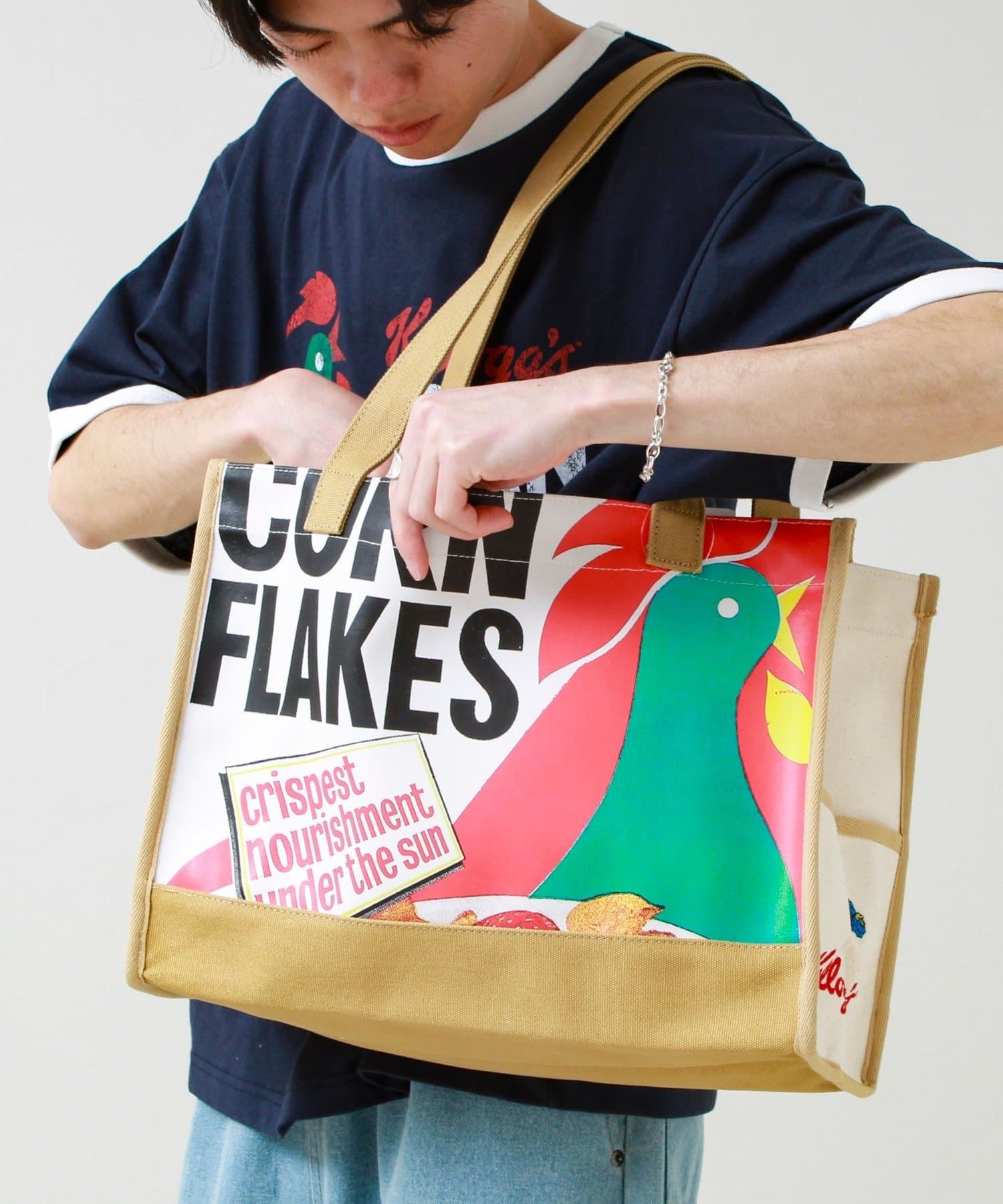 ヴィンテージKellogg’sのパッケージデザインを落とし込んだ、存在感抜群のキャンバストートバッグ。