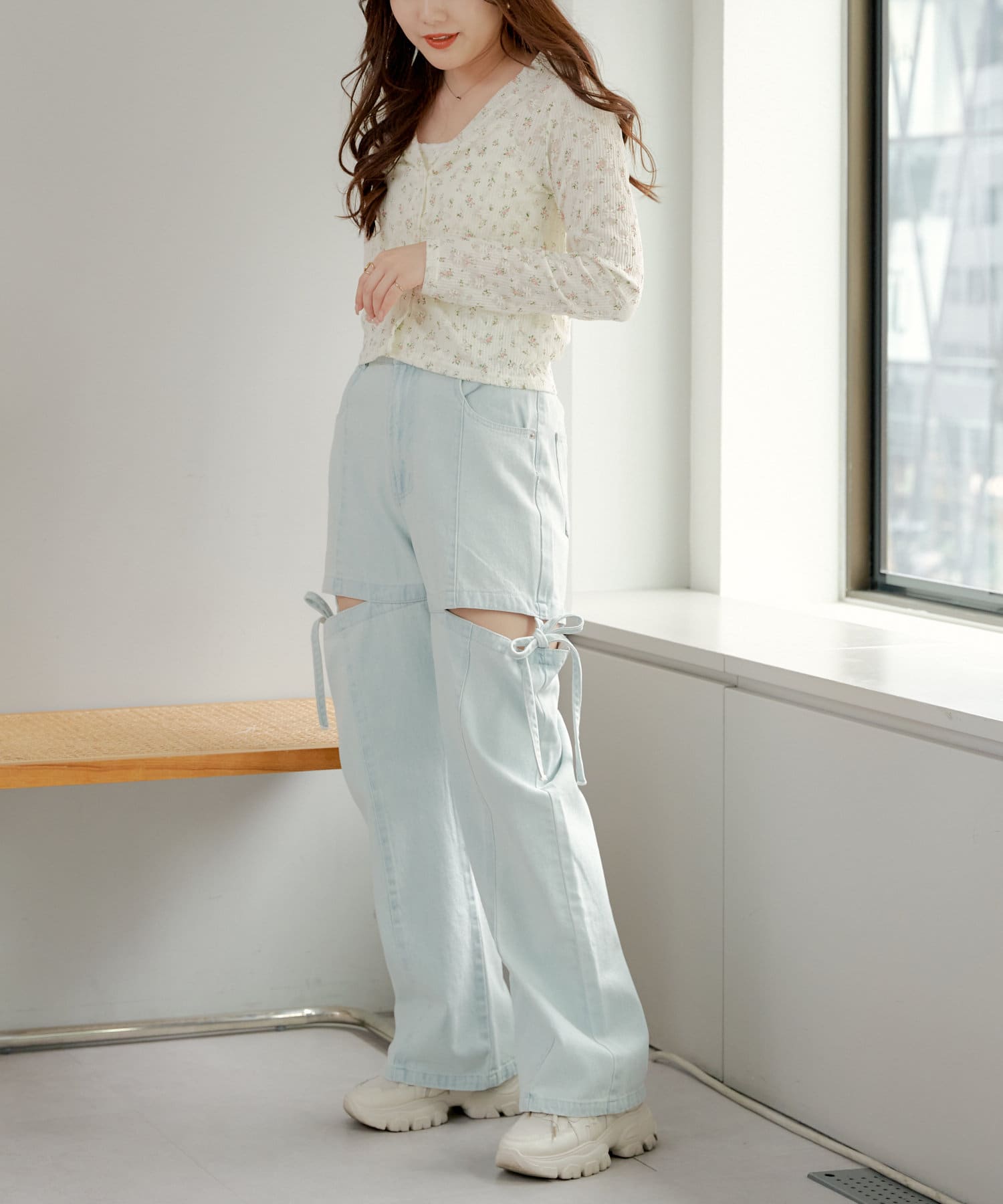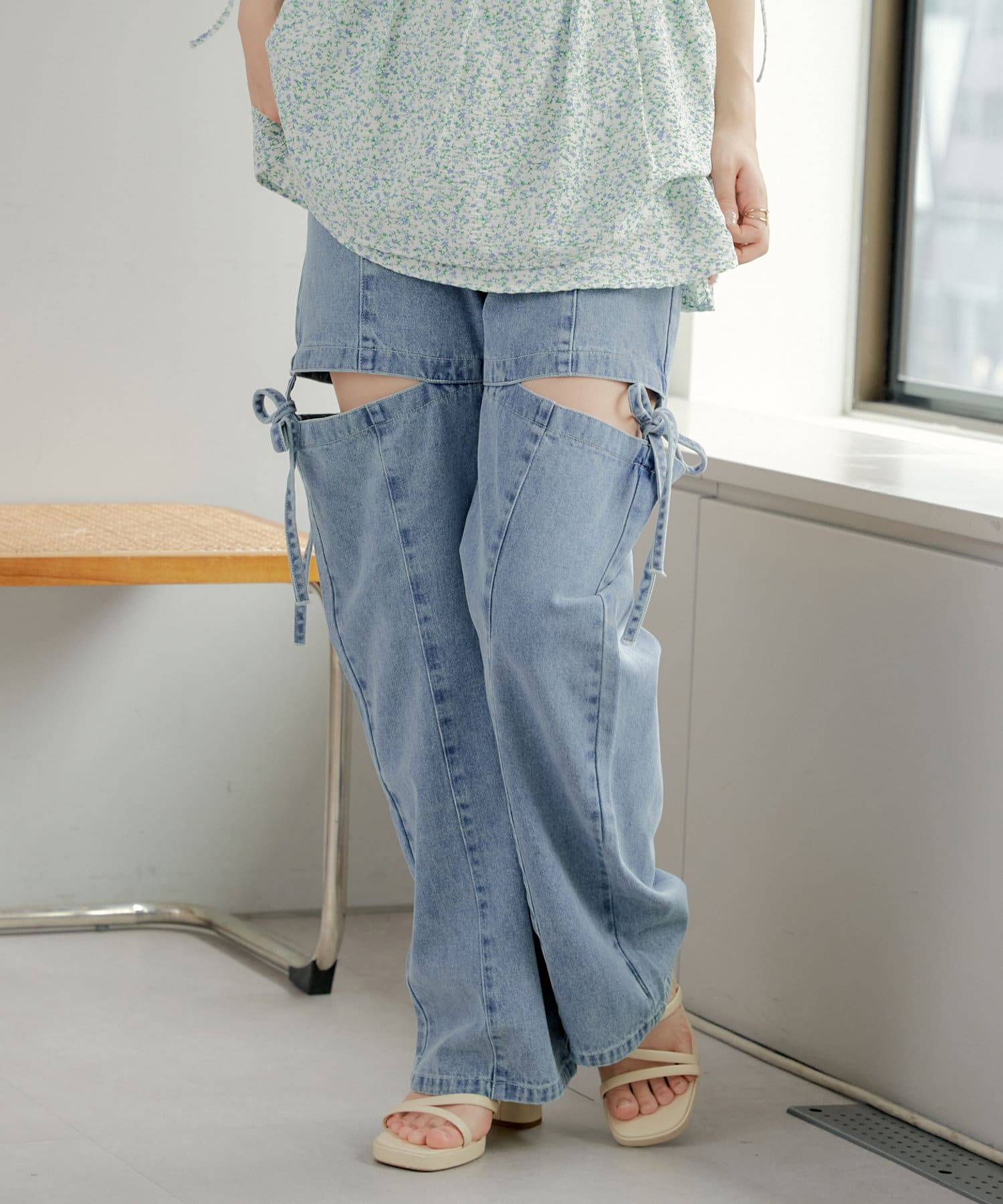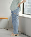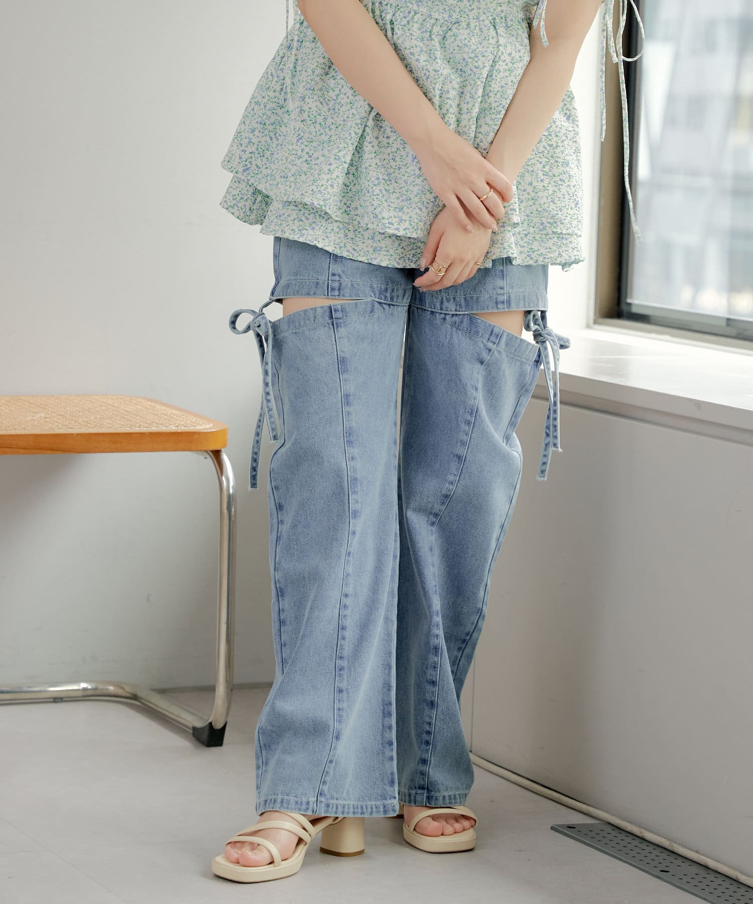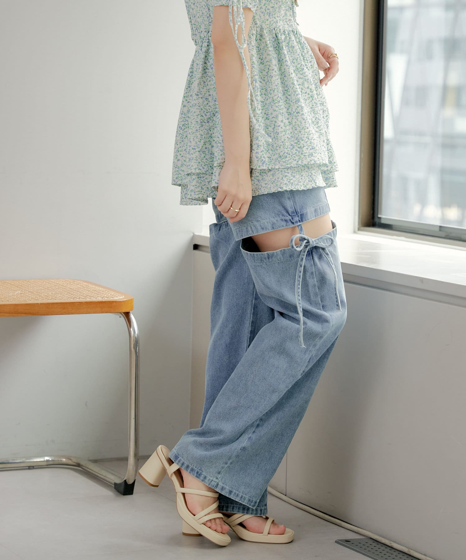 ・サイドスリットデザインで、肌見せが女性らしいデニムパンツ。