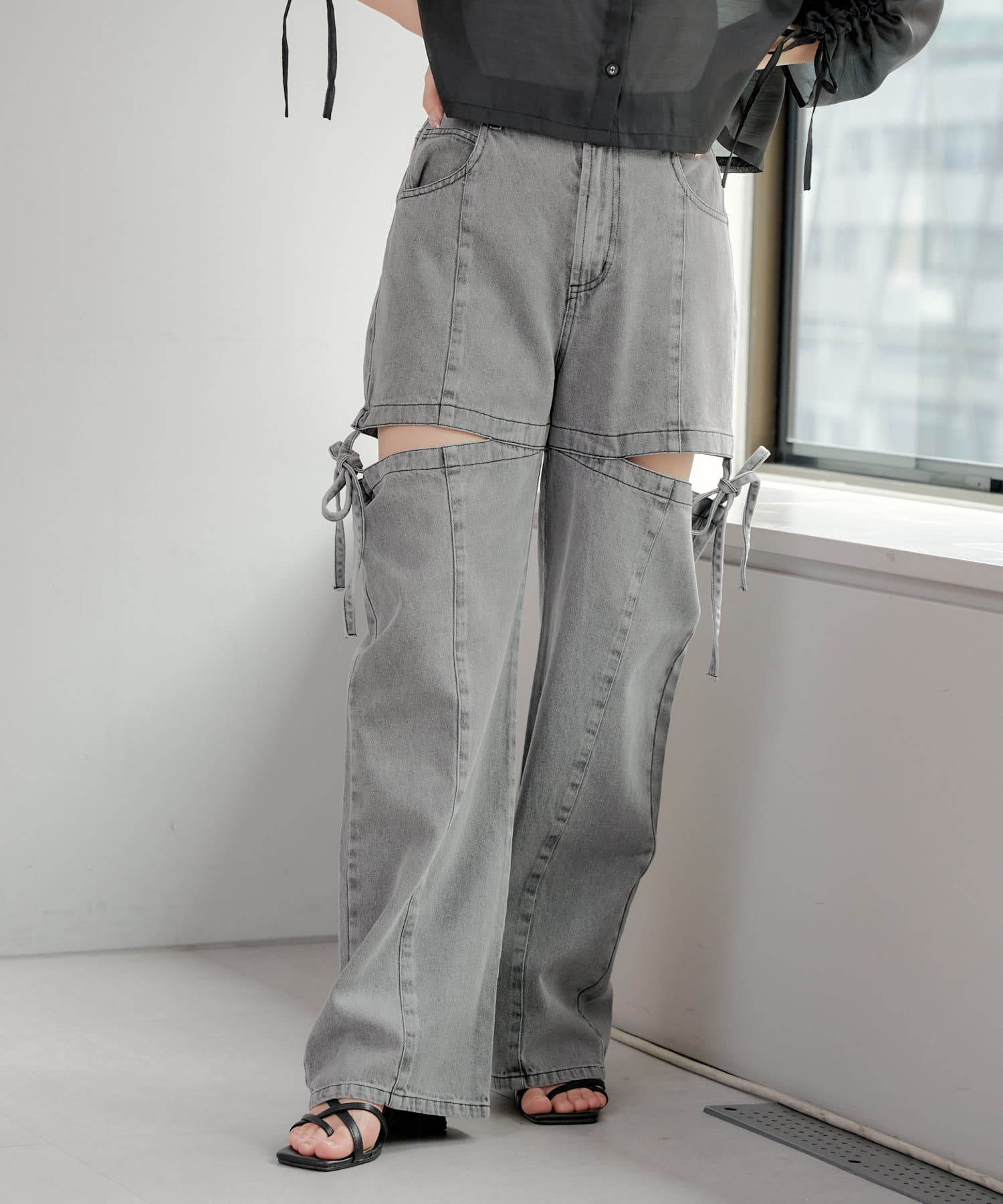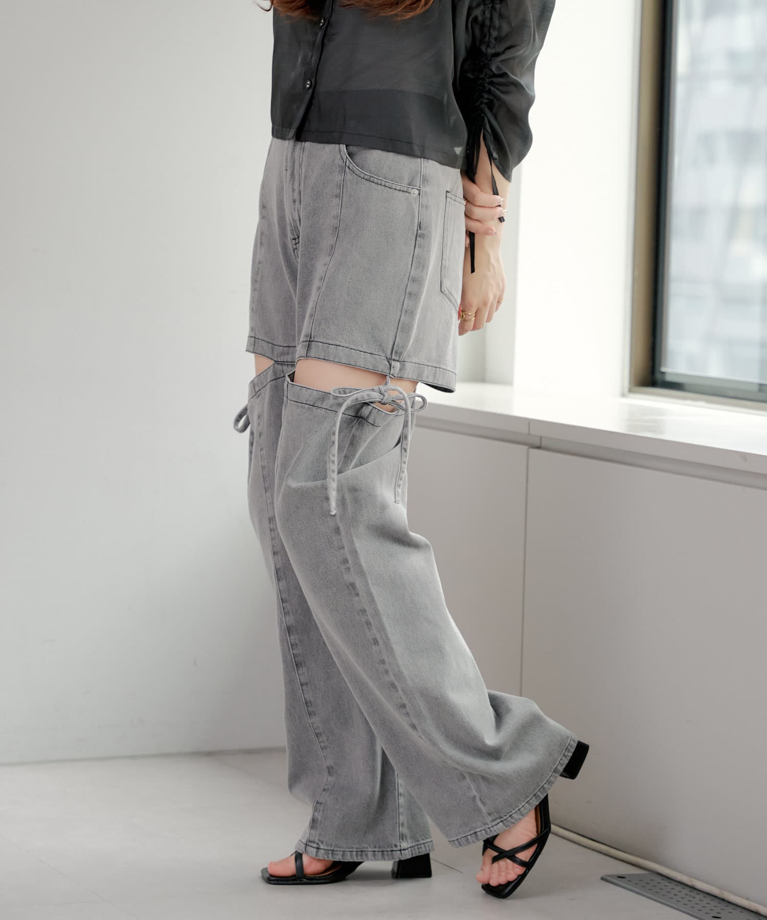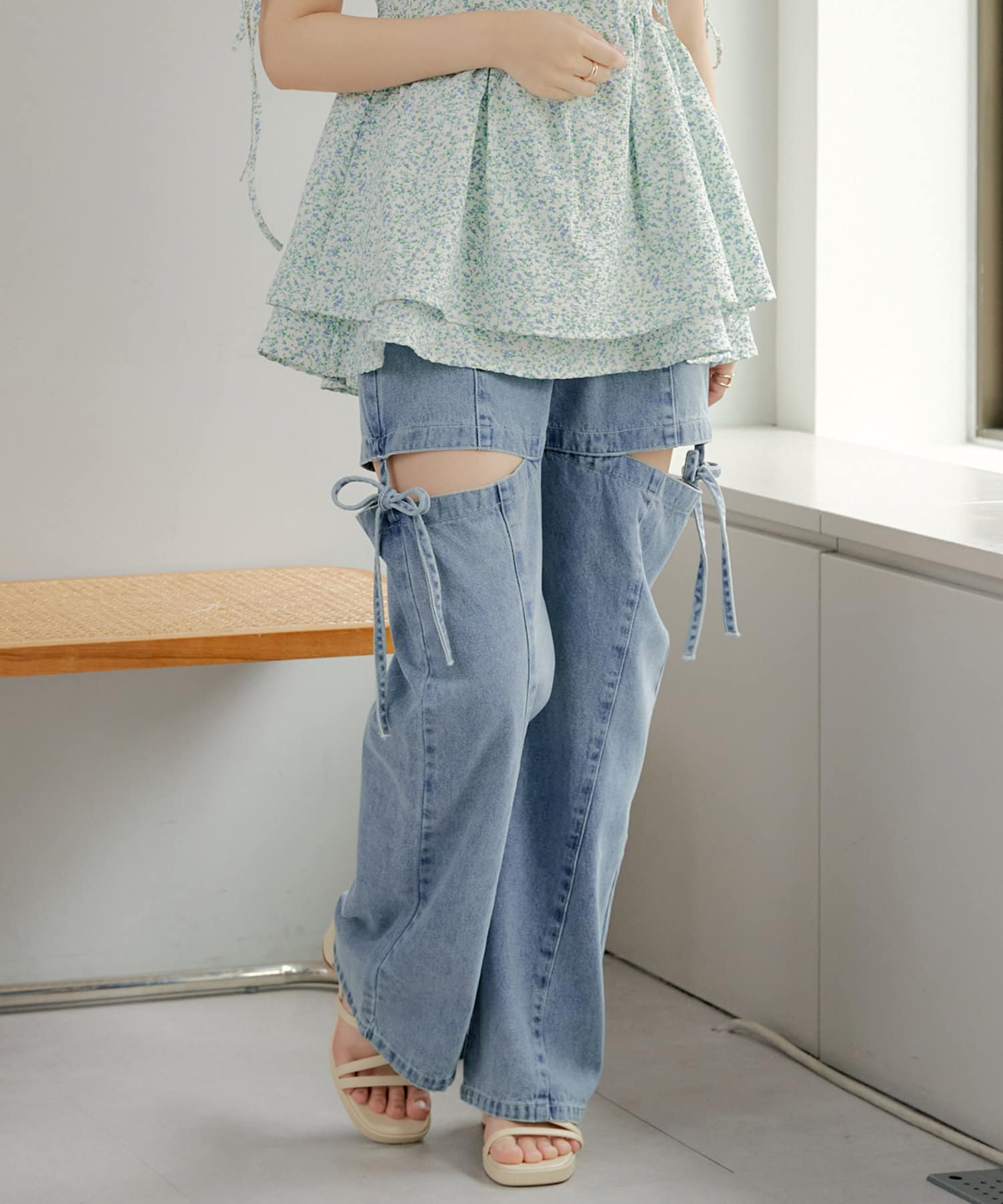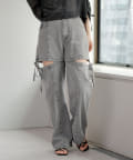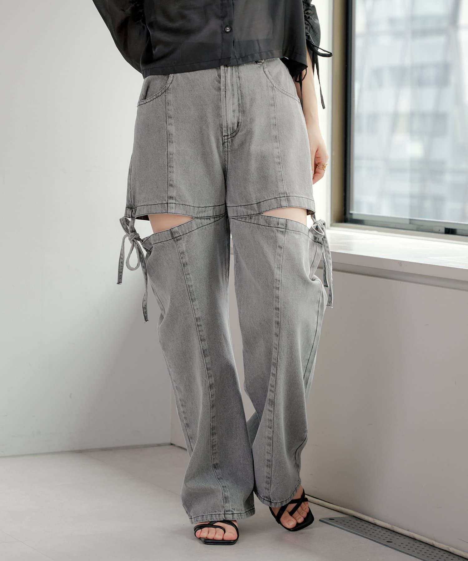 ・サイドスリットデザインで、肌見せが女性らしいデニムパンツ。