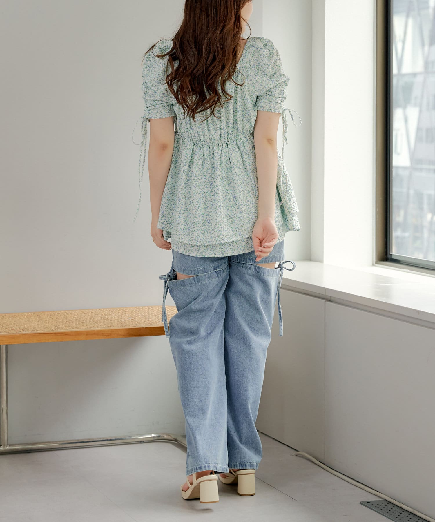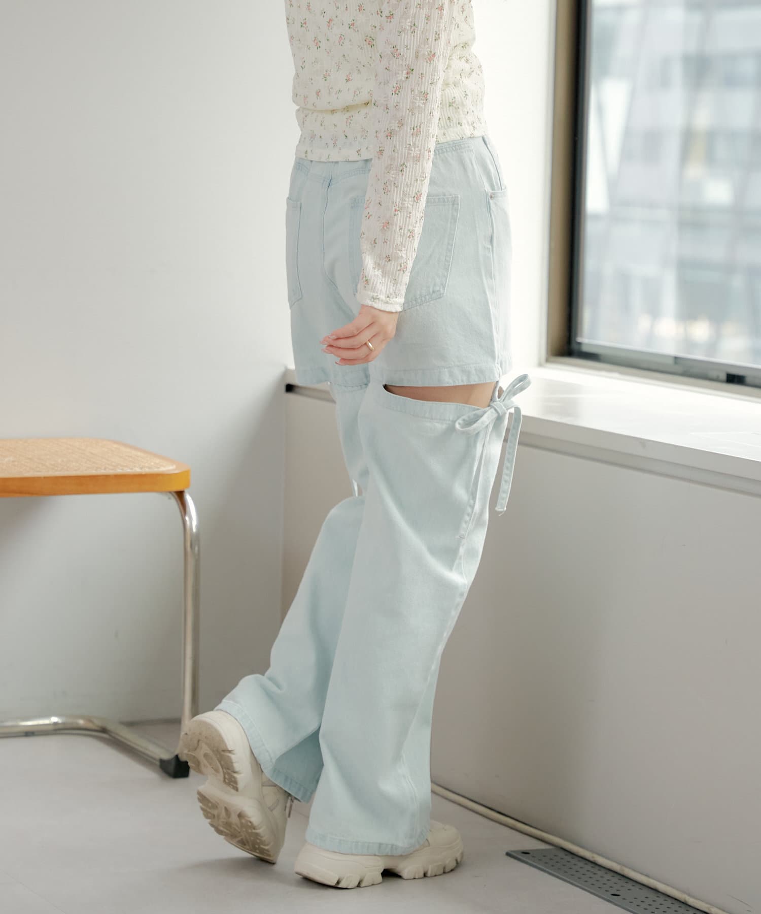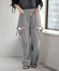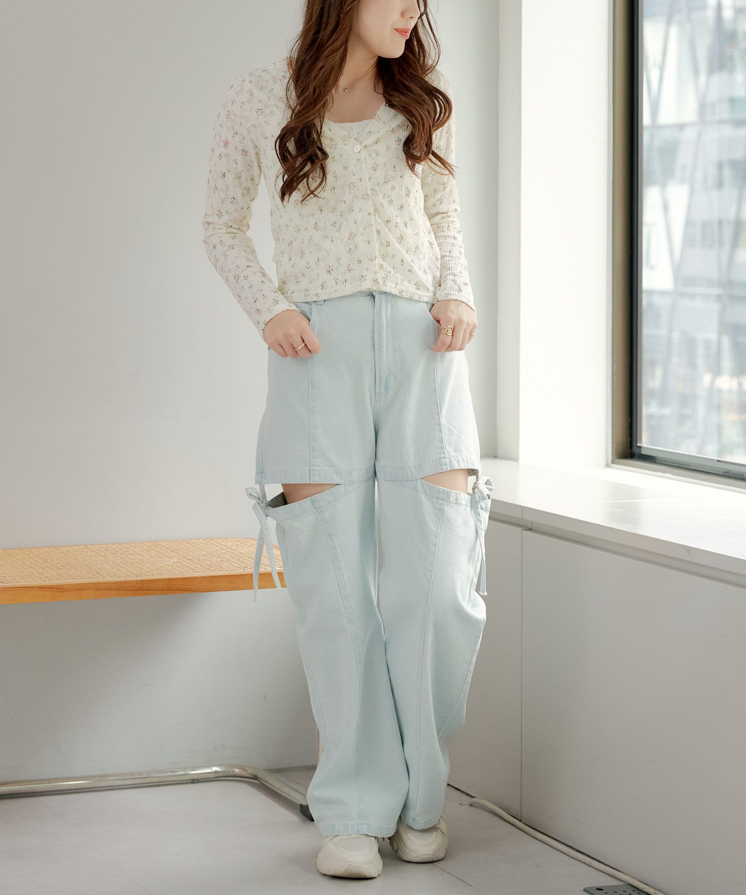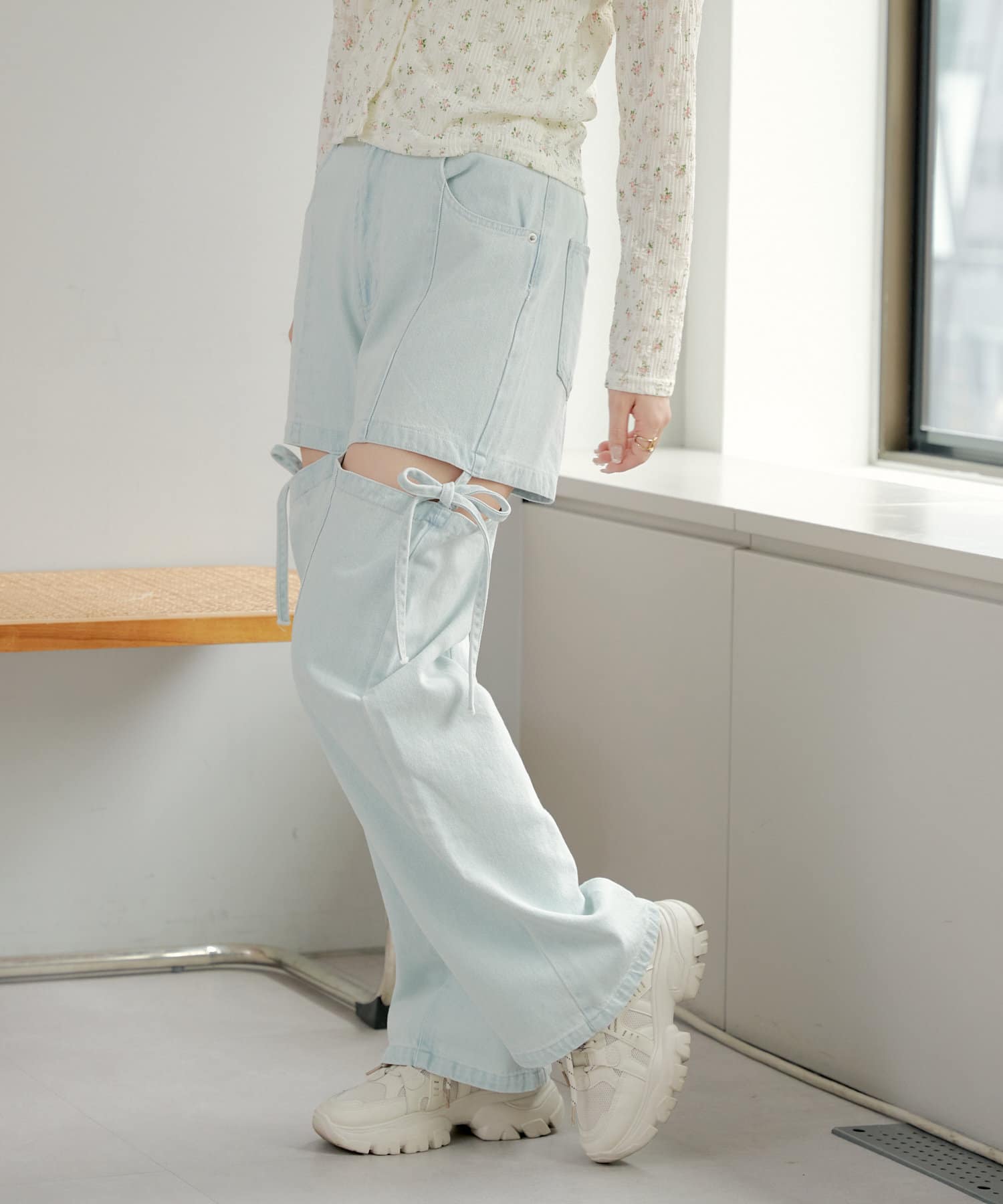 ・サイドスリットデザインで、肌見せが女性らしいデニムパンツ。