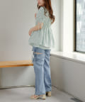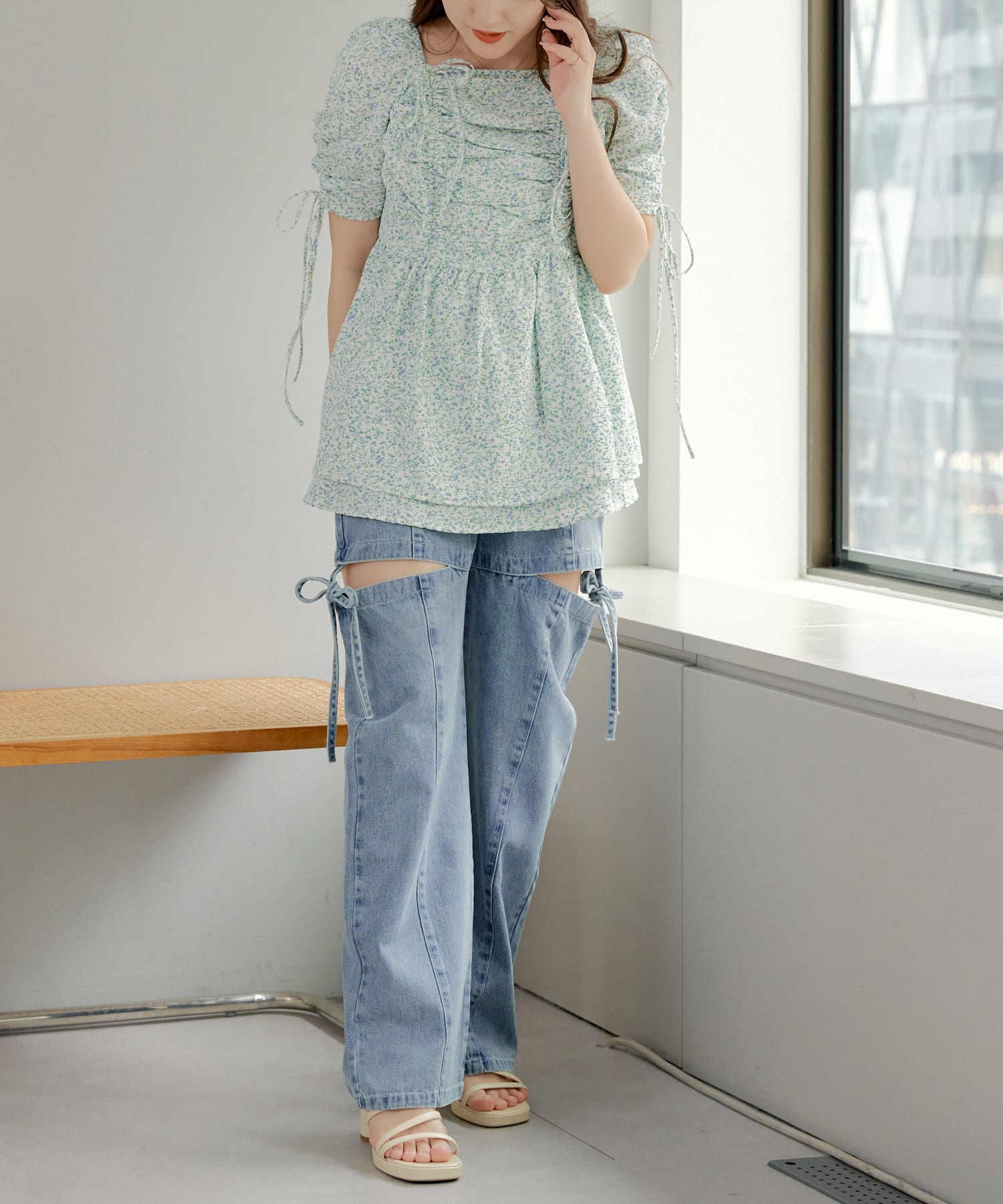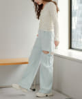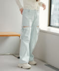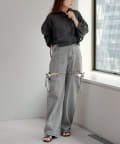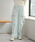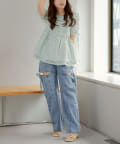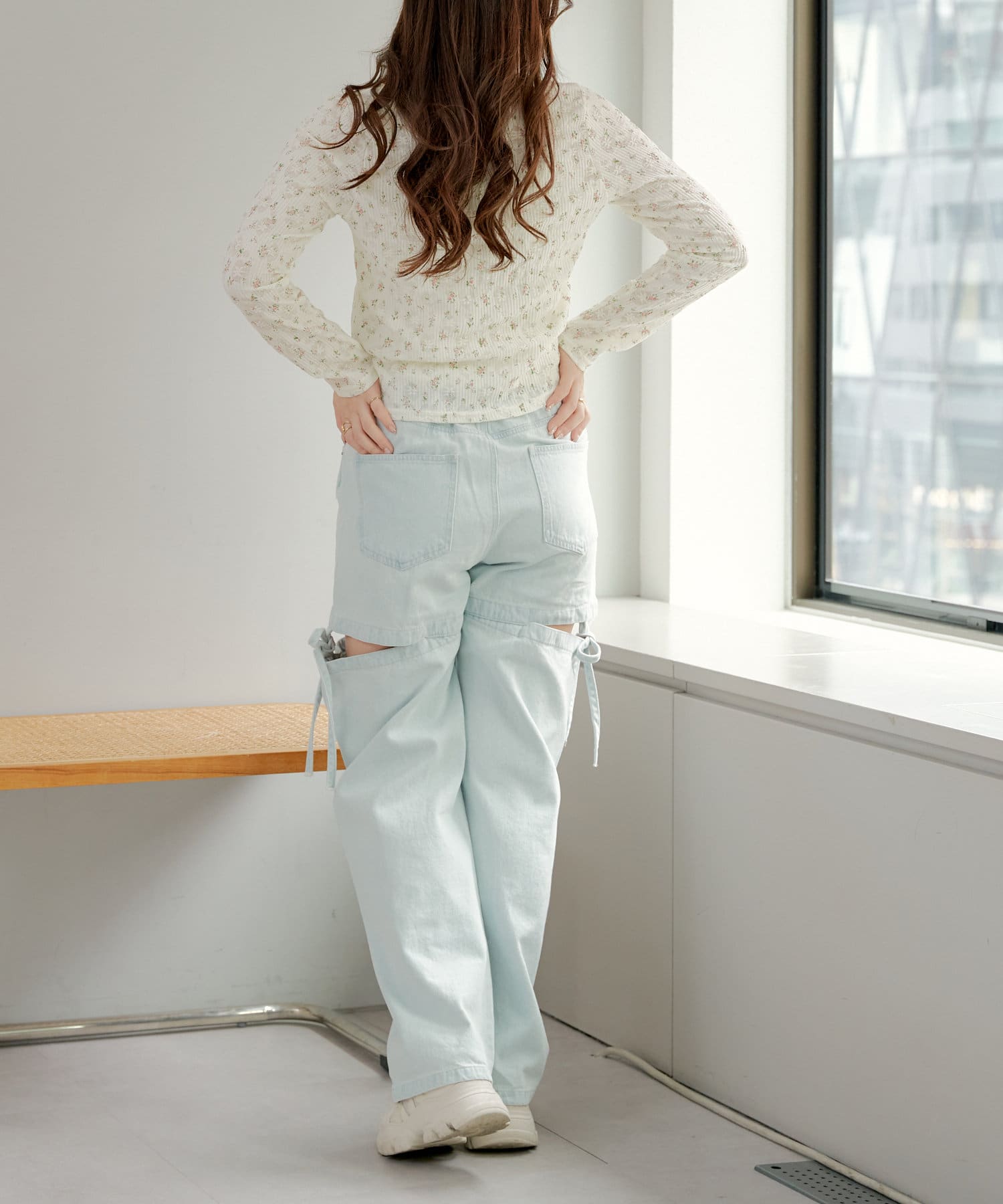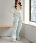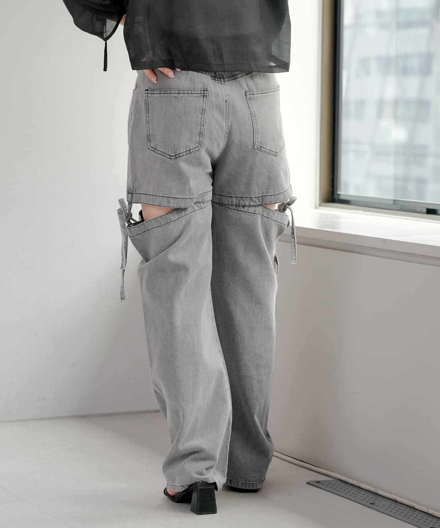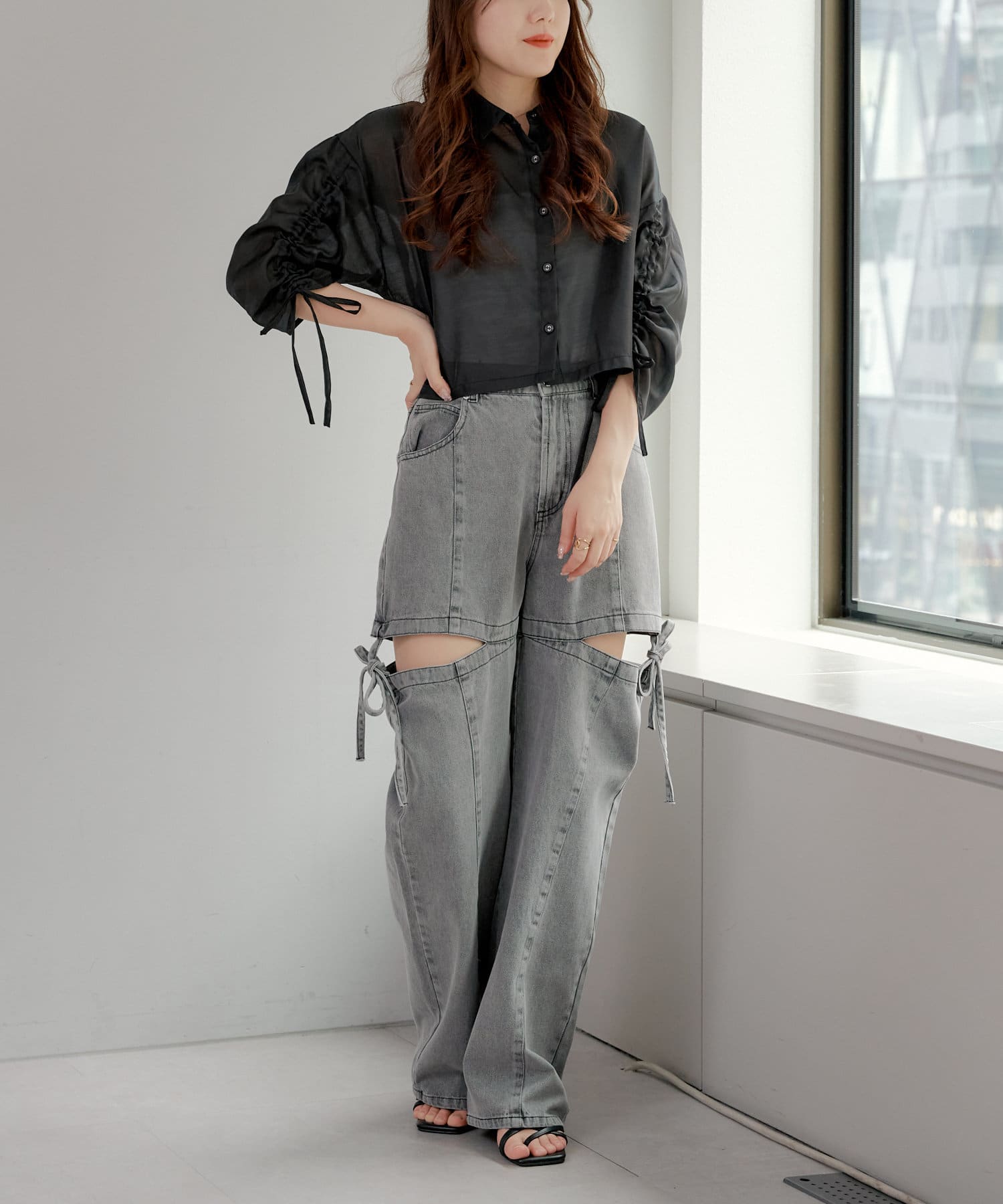 ・サイドスリットデザインで、肌見せが女性らしいデニムパンツ。