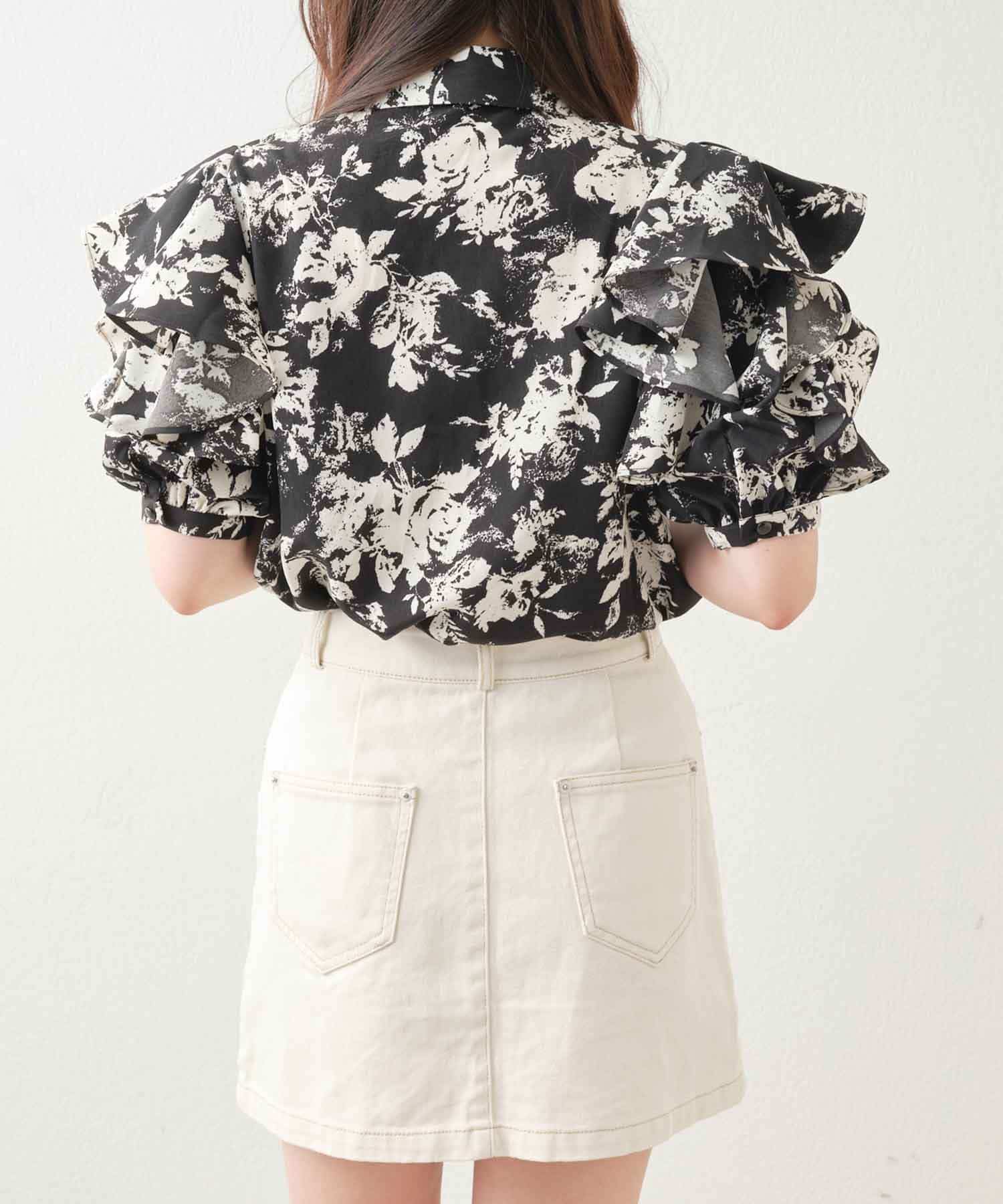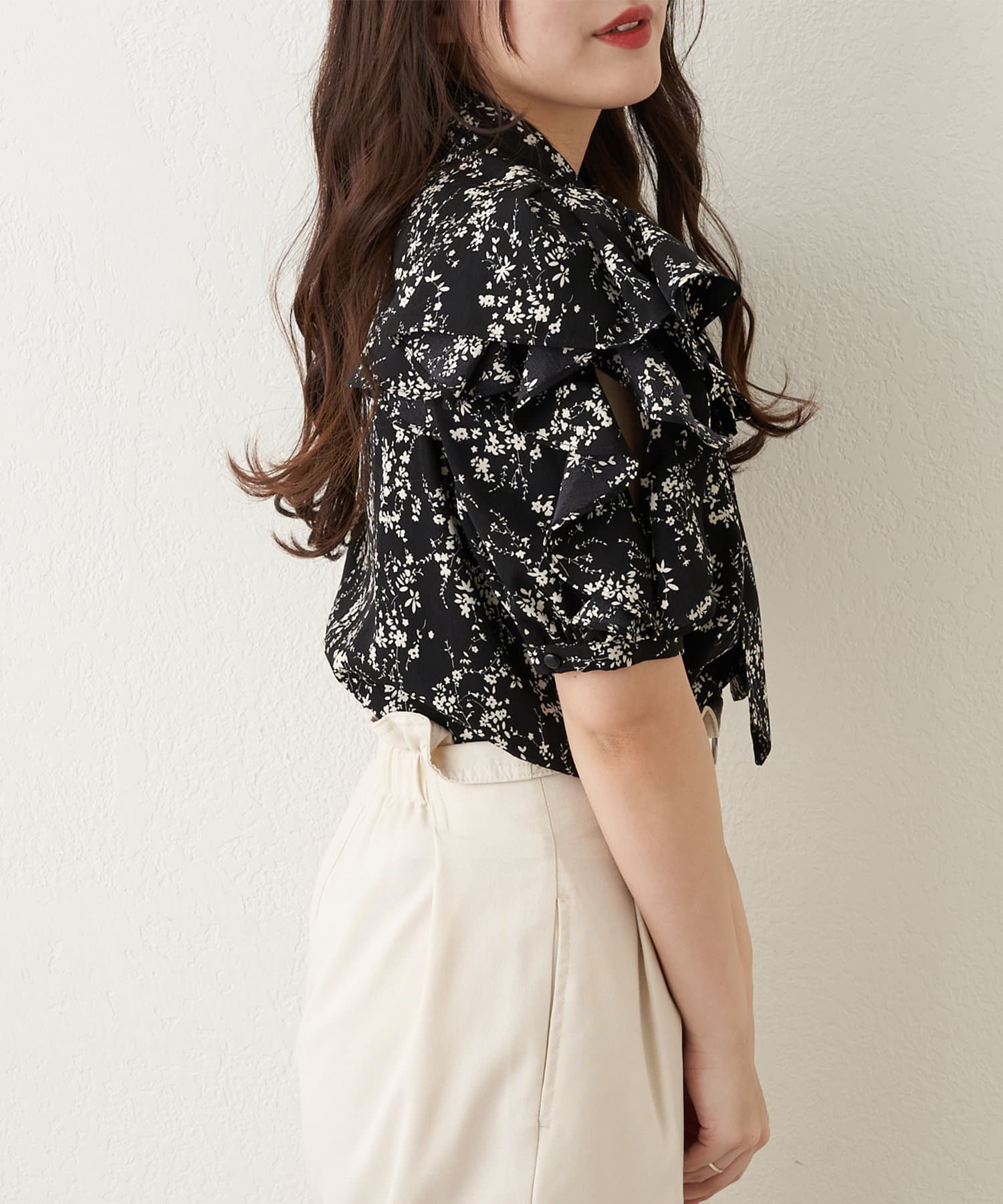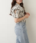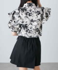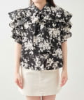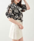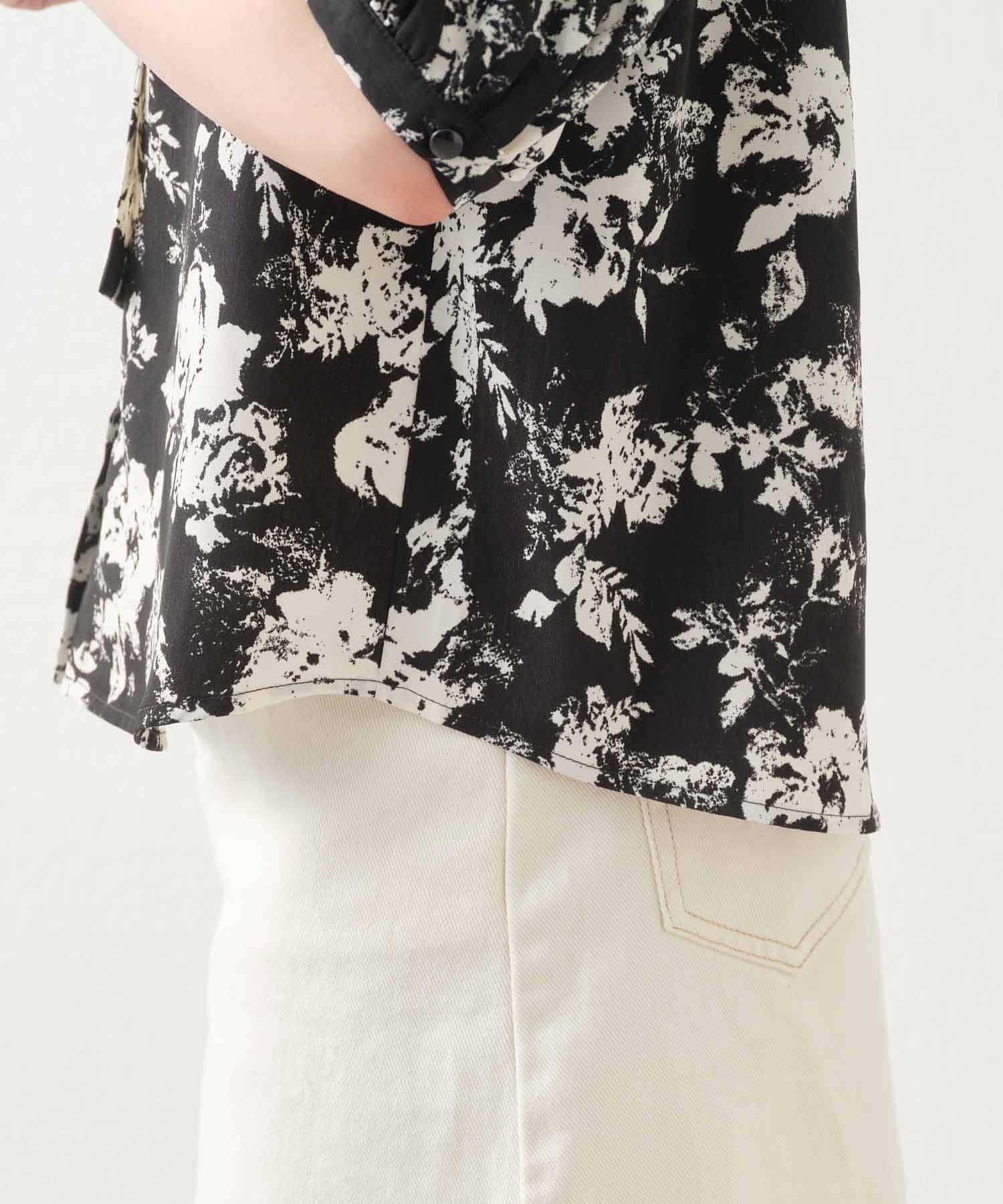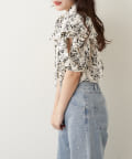 肩開きデザインでさりげない肌見せができる花柄ブラウス