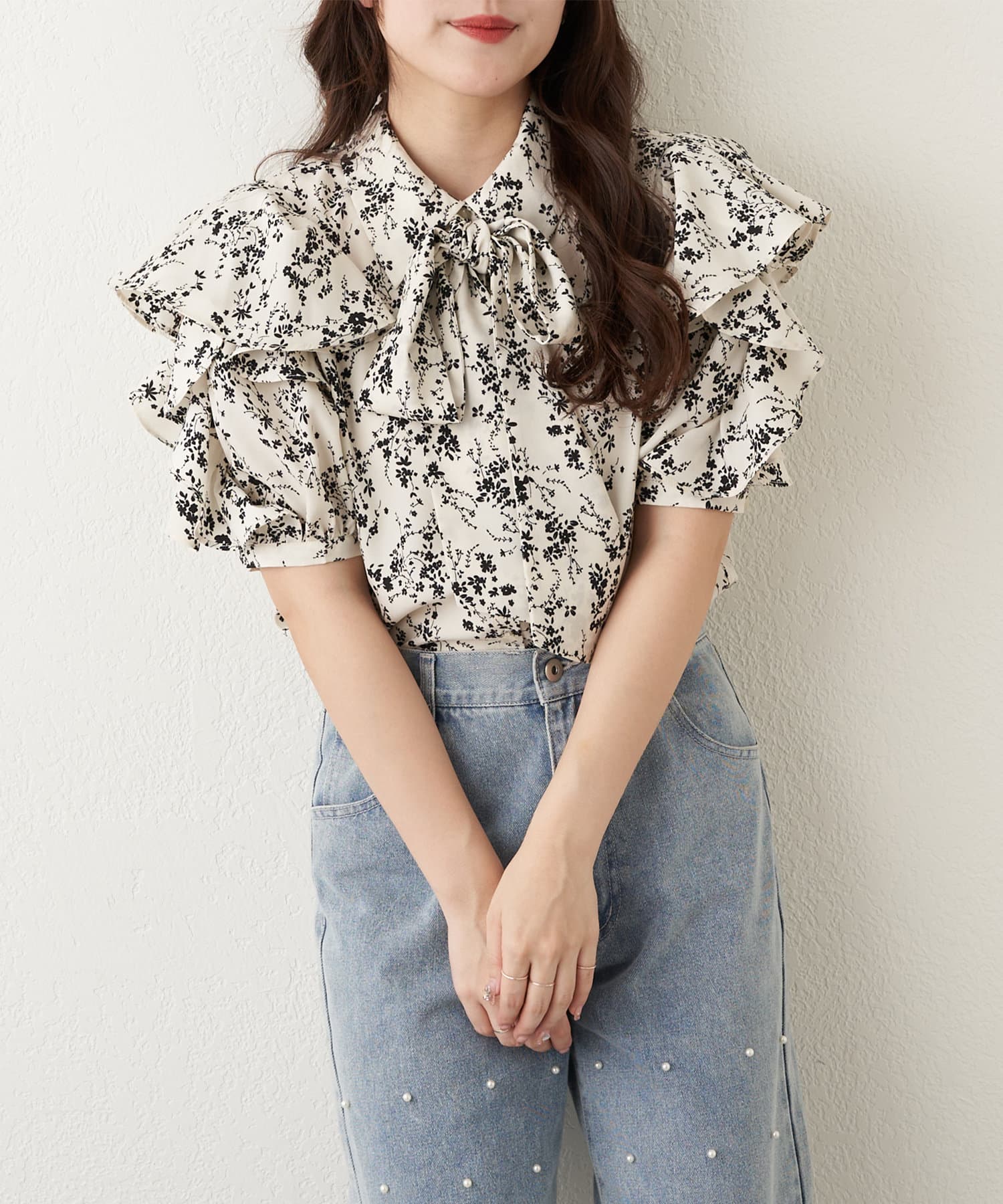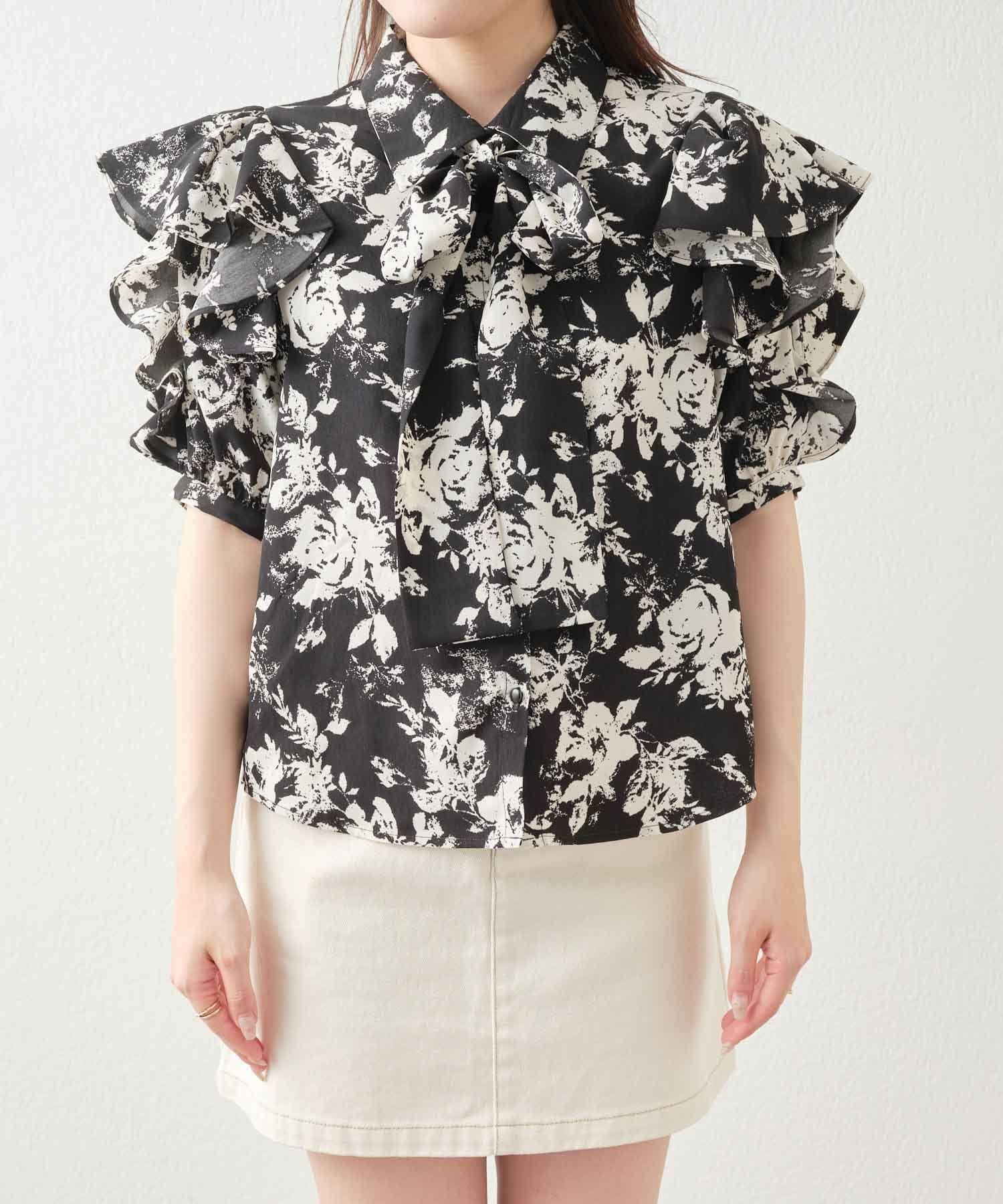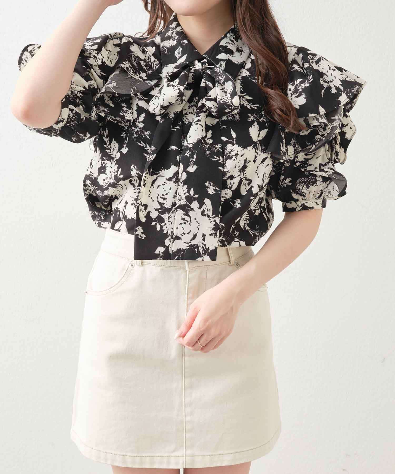 【WEB限定 / リバイバル】花柄ボウタイブラウス