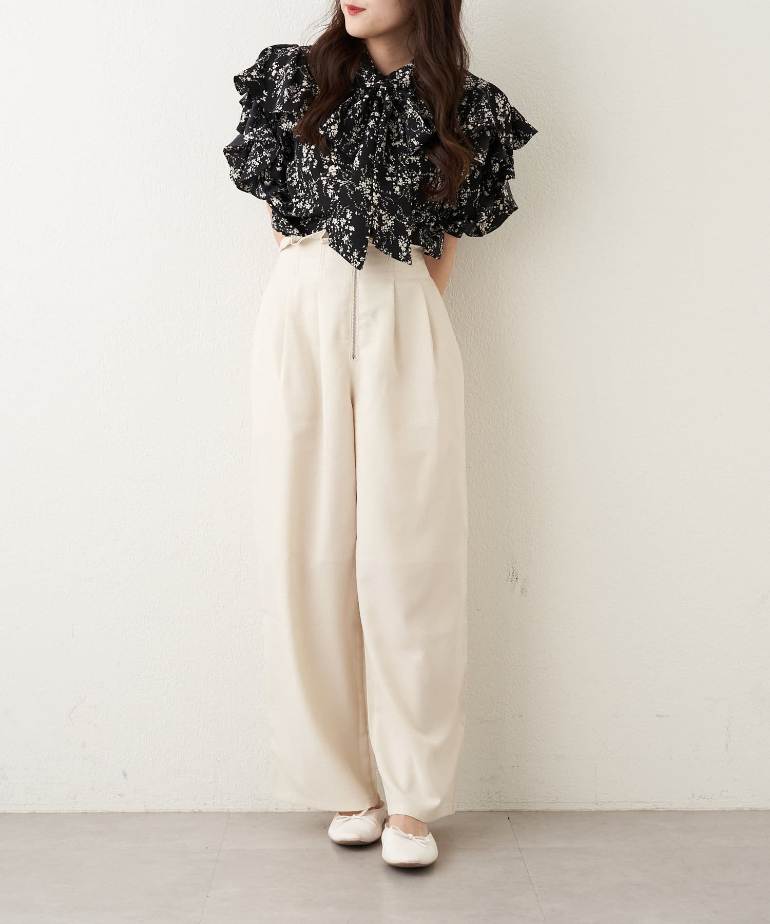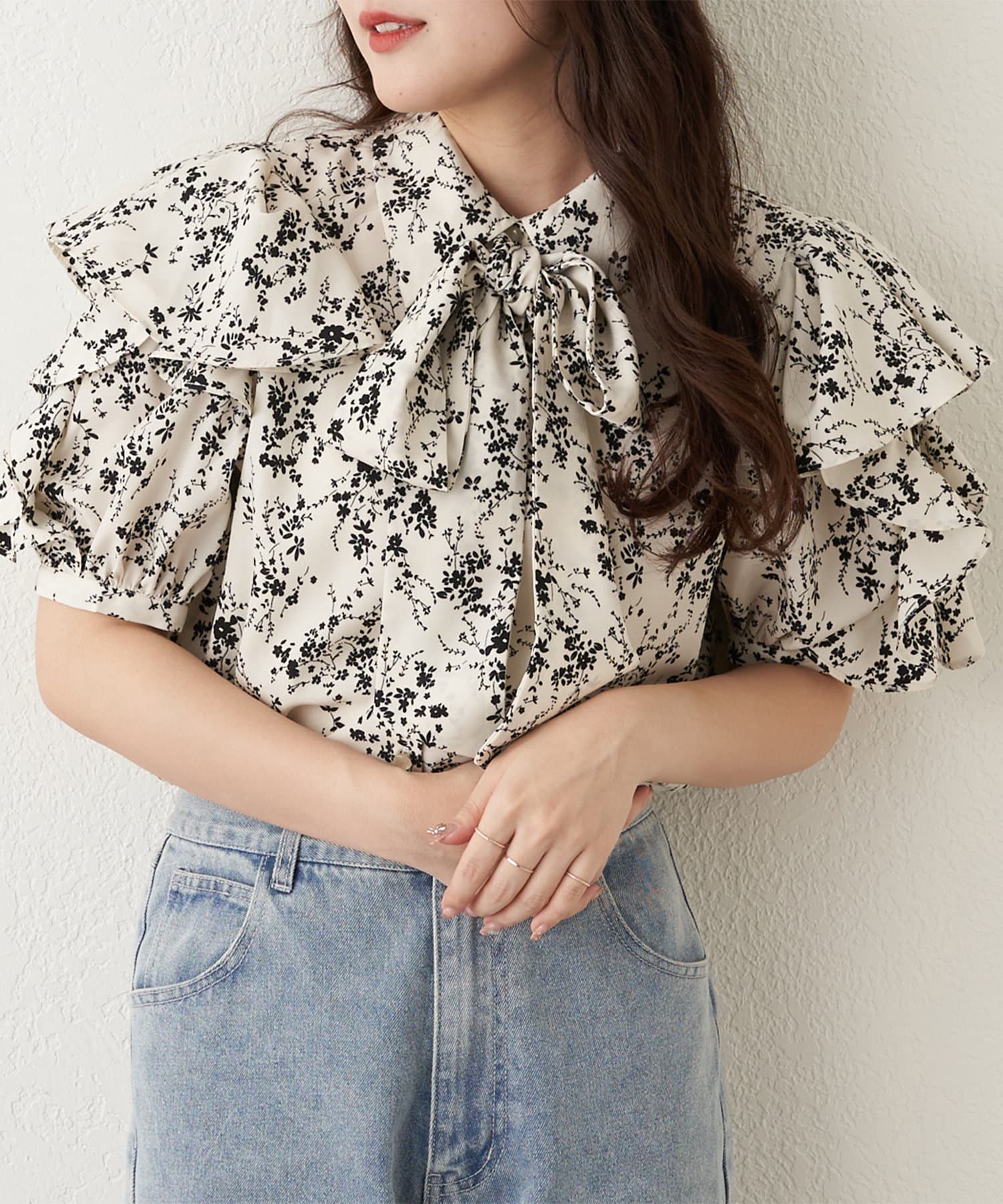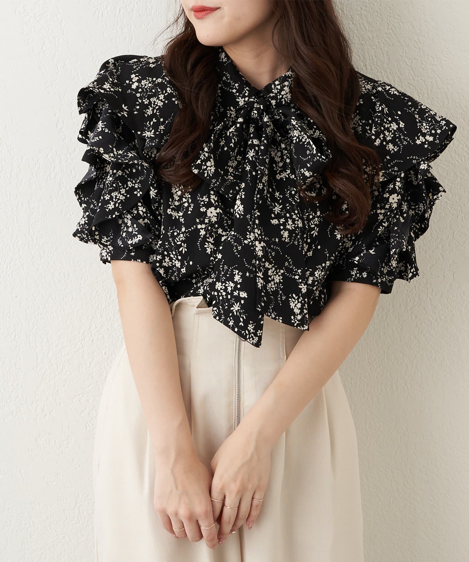 【WEB限定 / リバイバル】花柄ボウタイブラウス