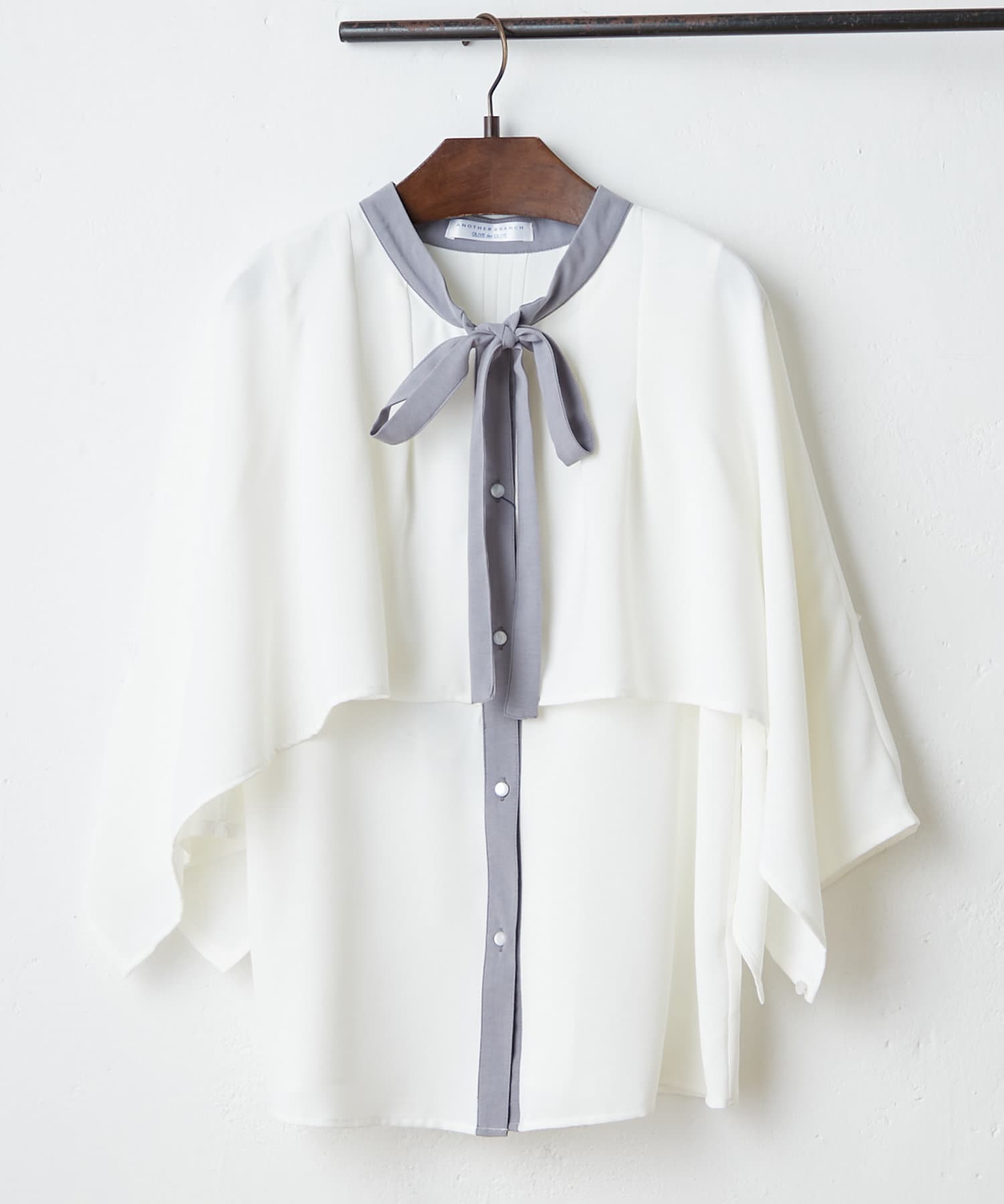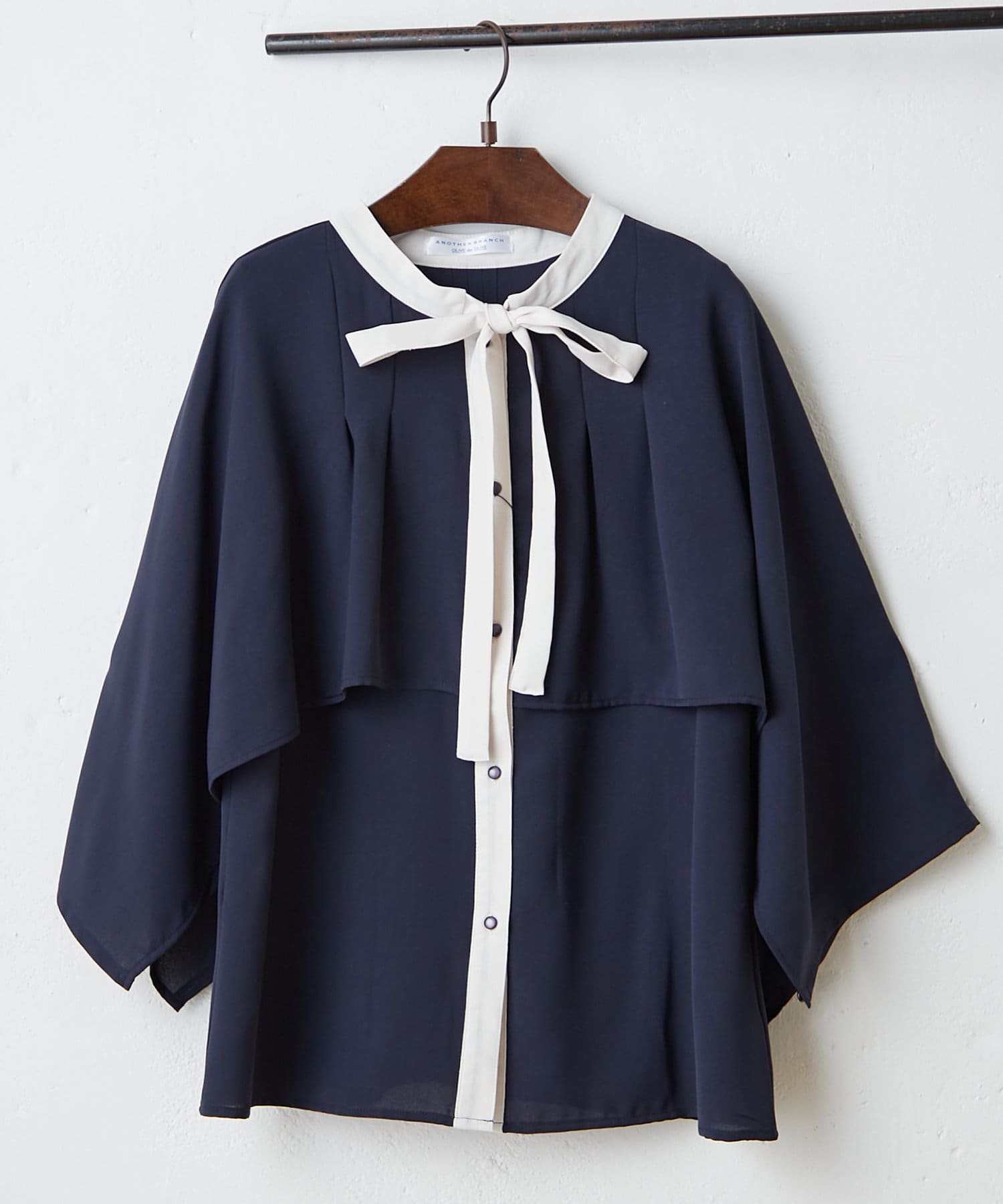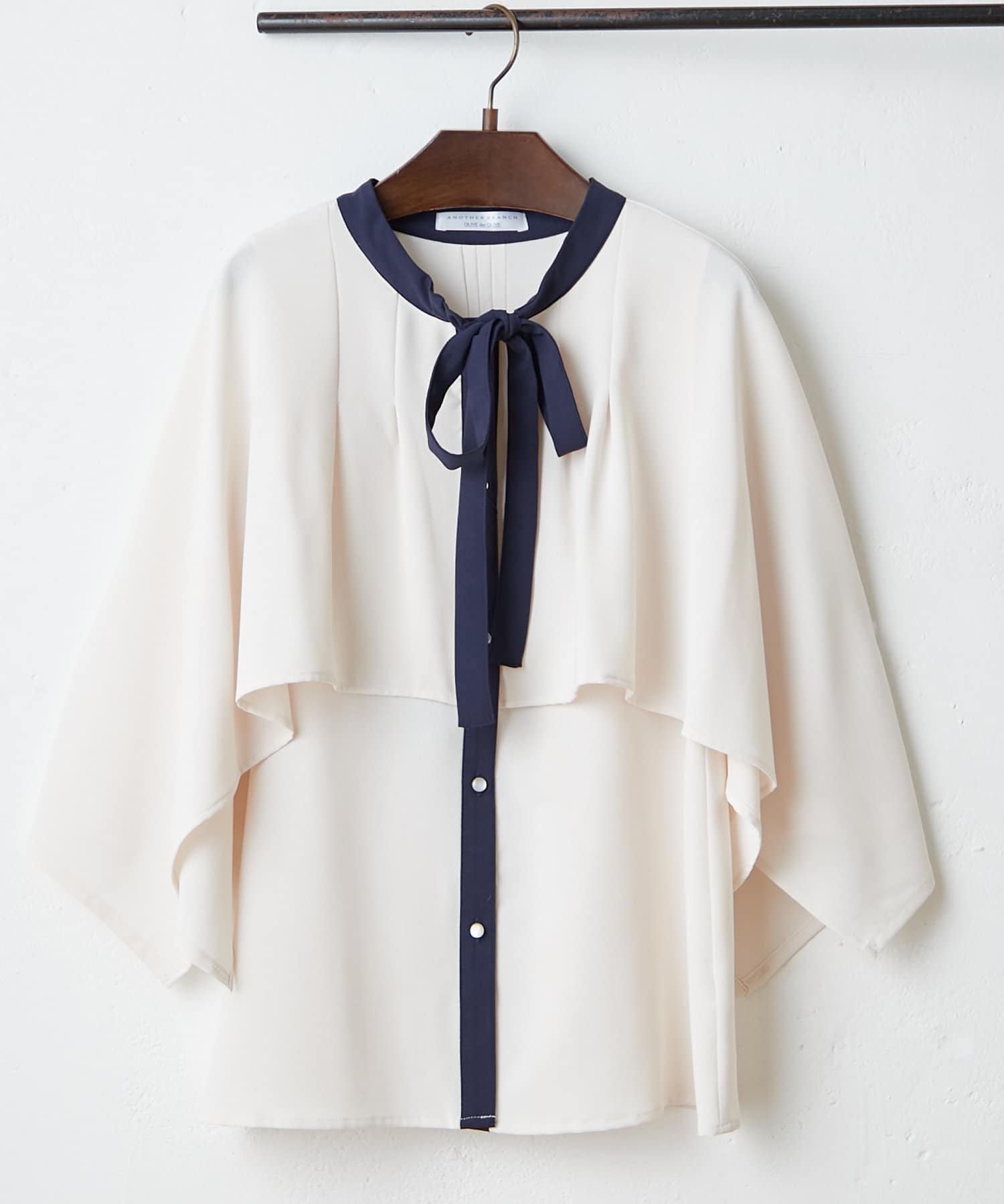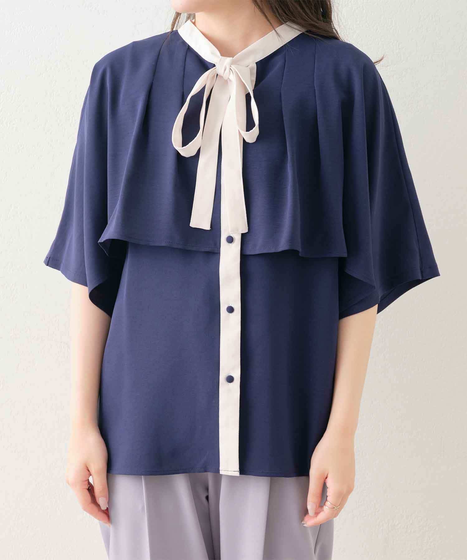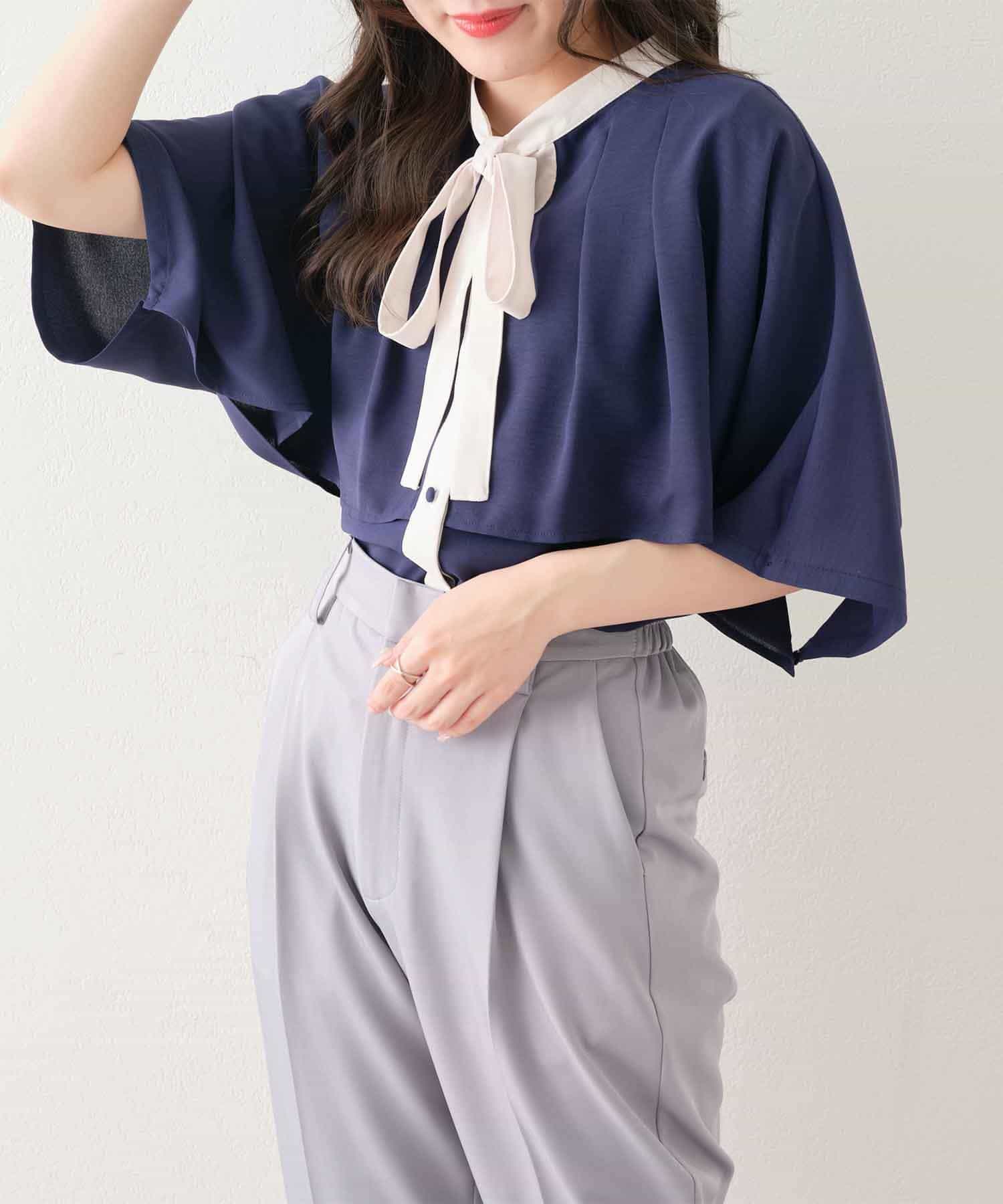 【女性らしさたっぷり!】【WEB限定】配色ケープボウタイブラウス