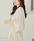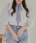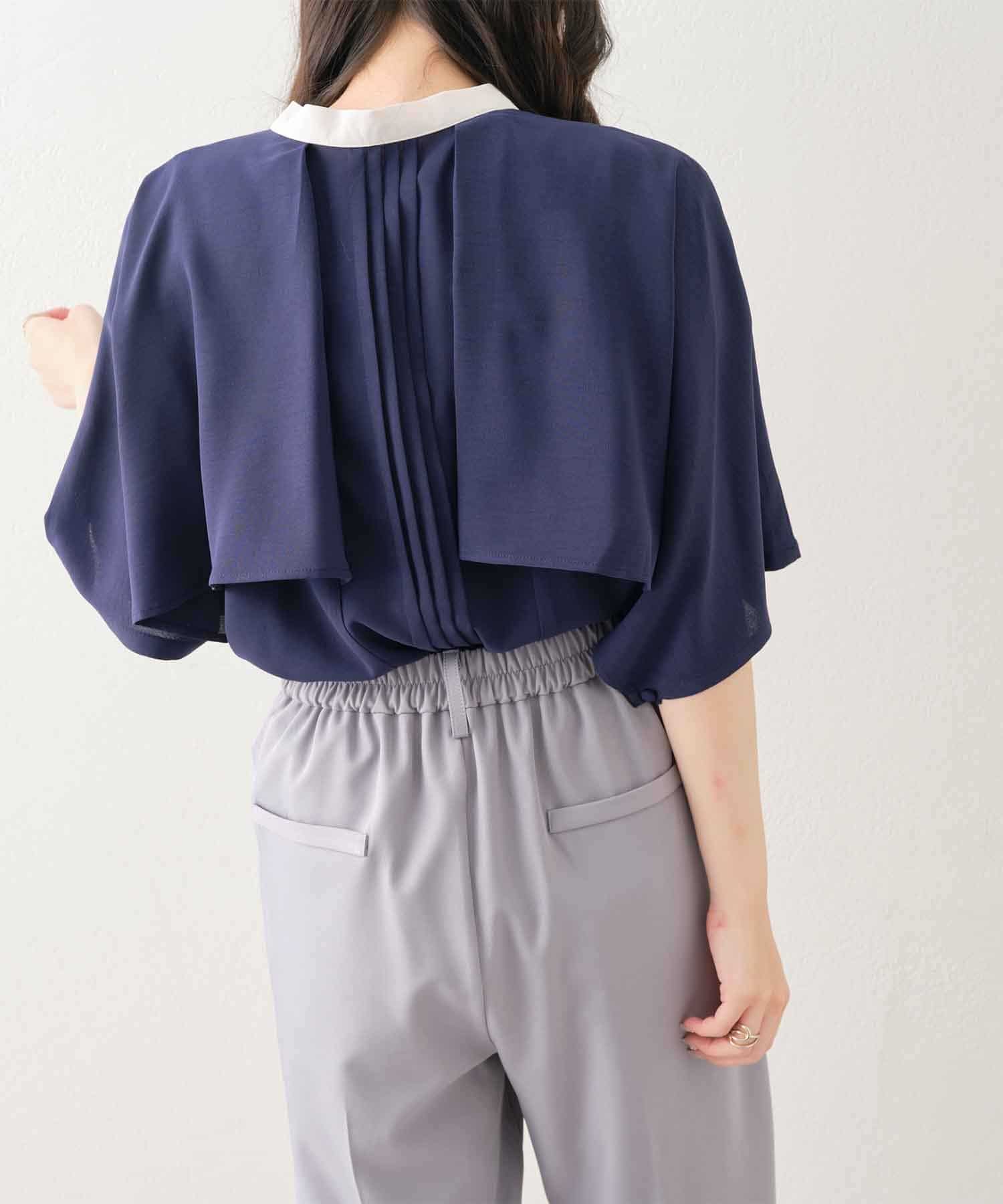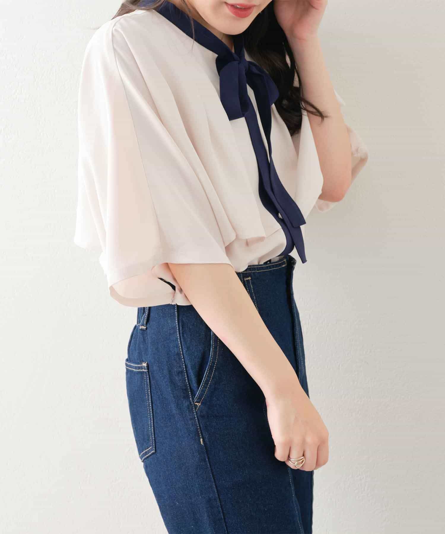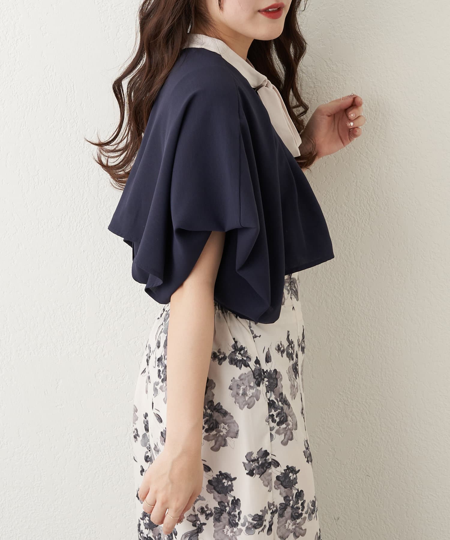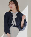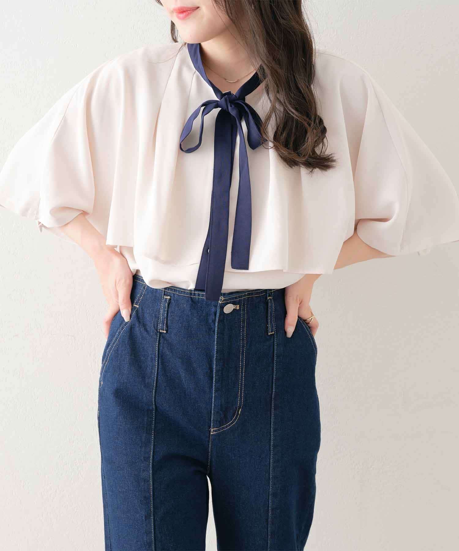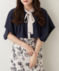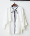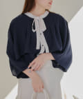 【女性らしさたっぷり!】【WEB限定】配色ケープボウタイブラウス
