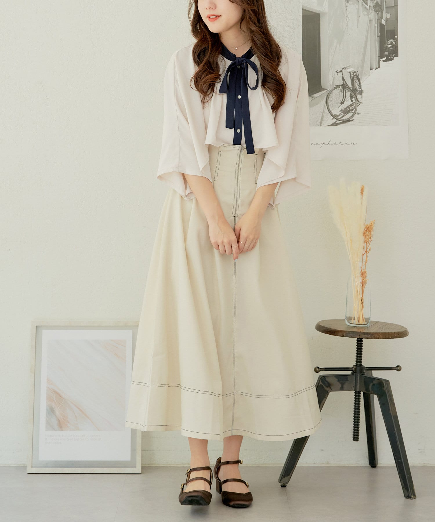 トレンドのケープデザインで旬な着こなしになるブラウス!