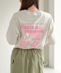 ・バックデザインが立体感ある発泡プリントのTシャツ