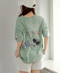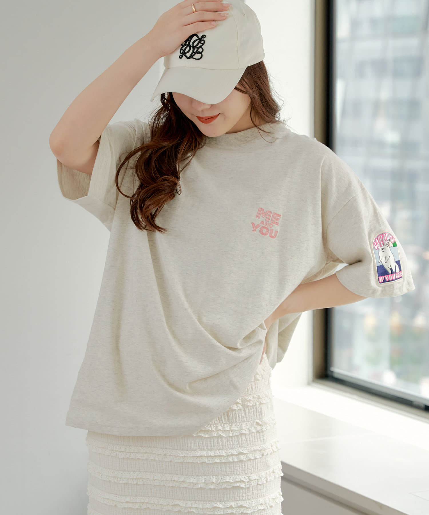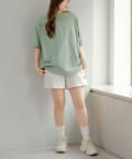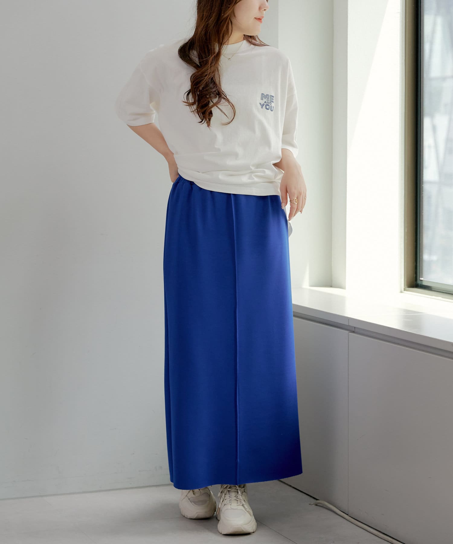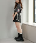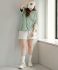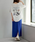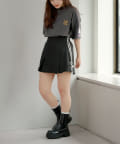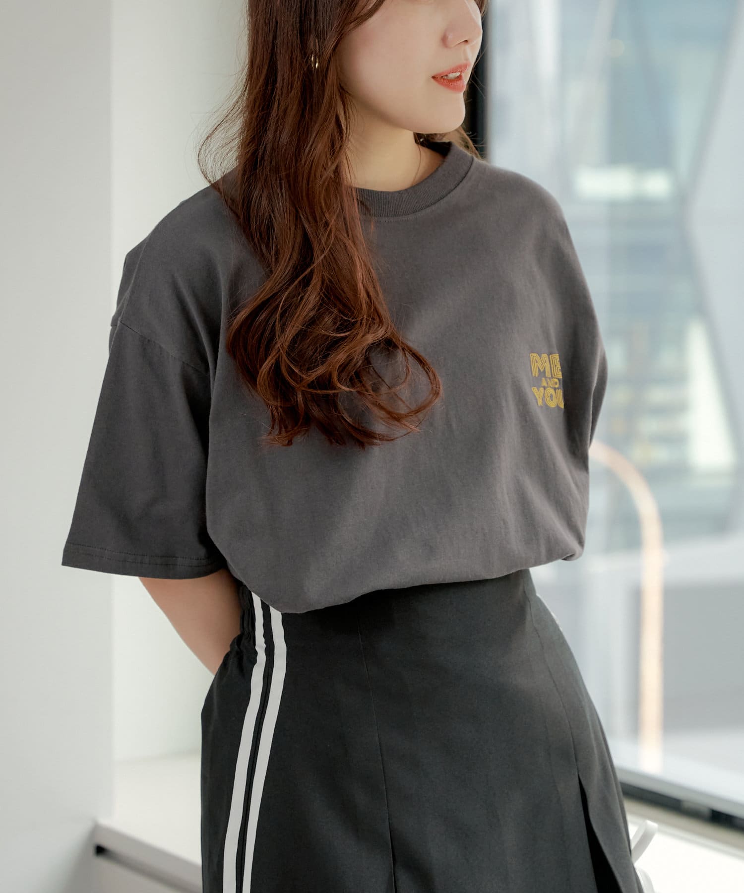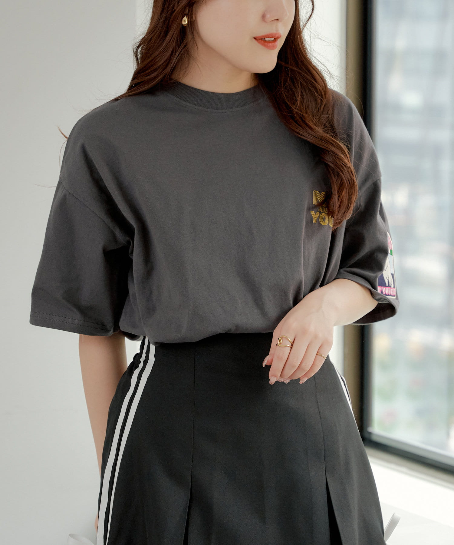 ・大きめなシルエットのTシャツは、ミニスカやタイトなスカートと合わせたり