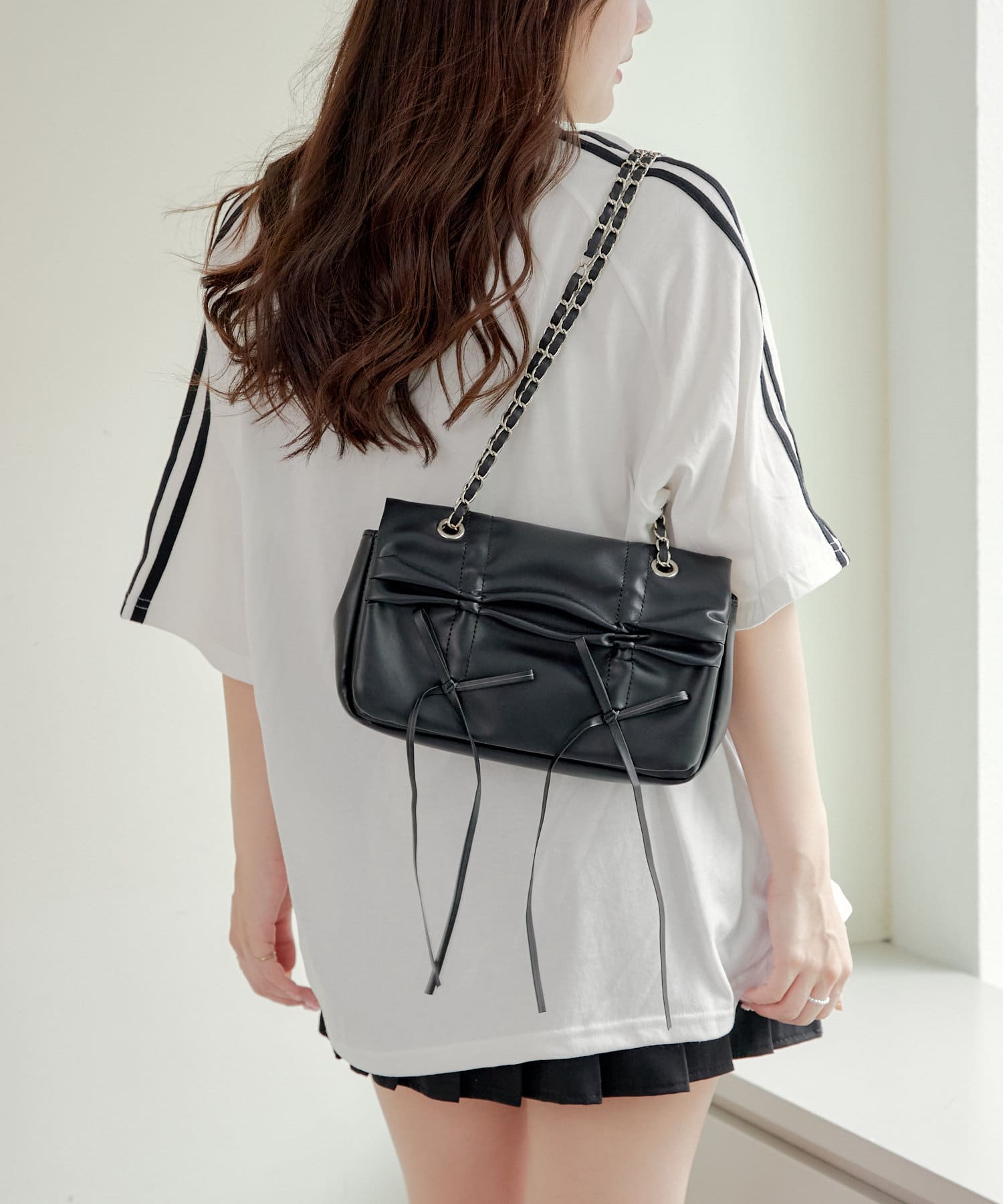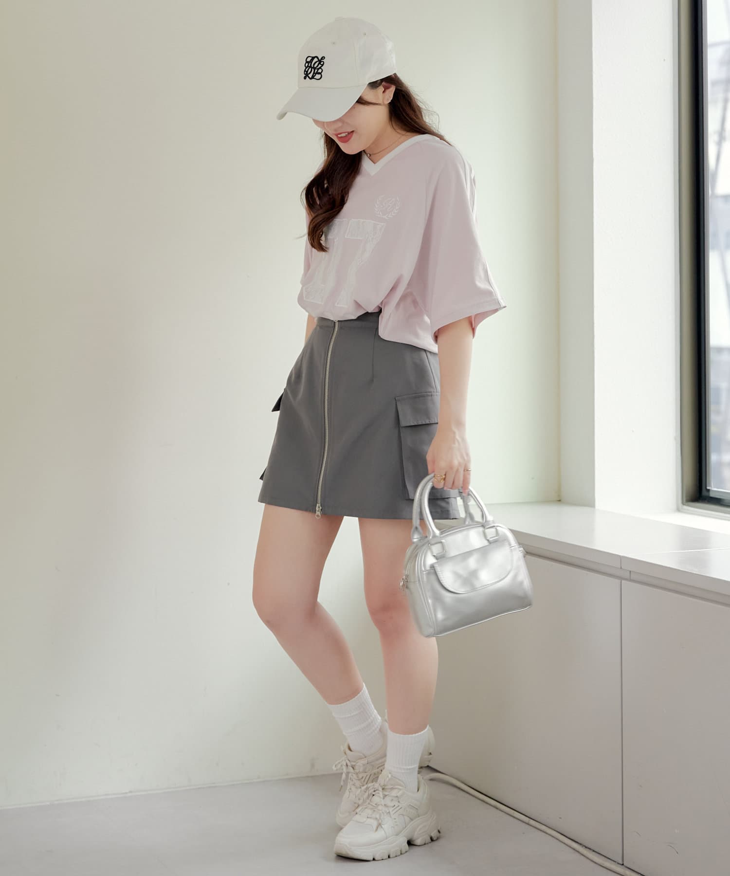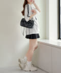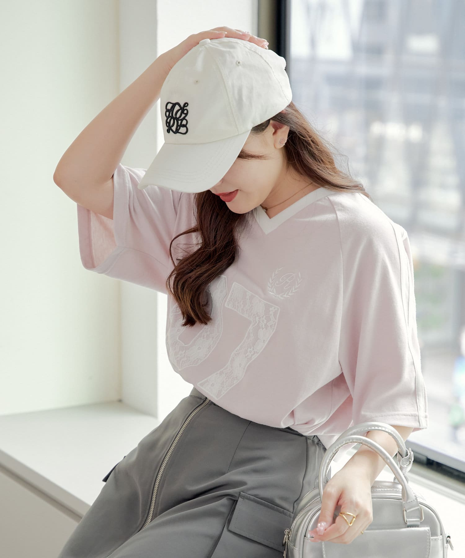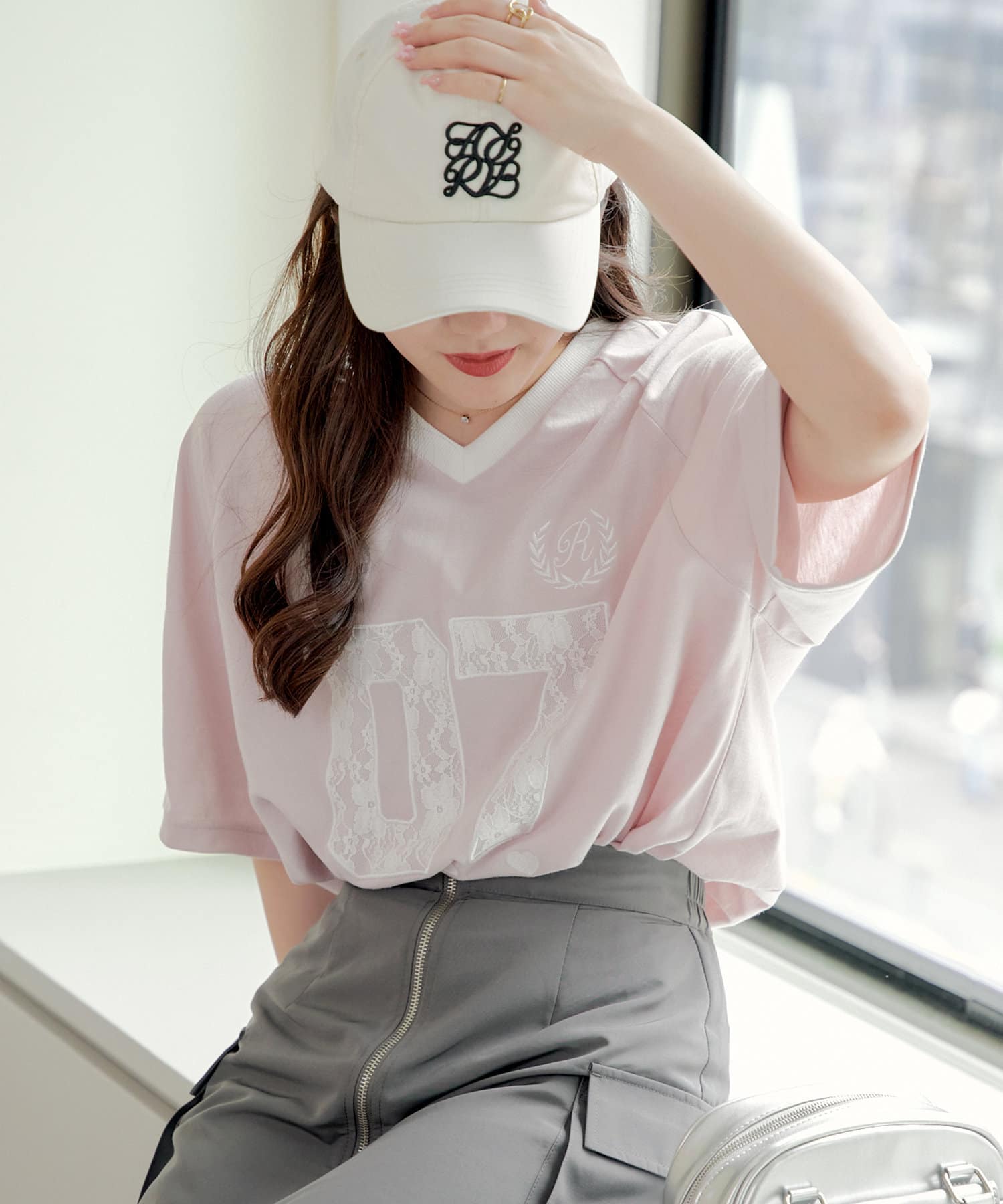 流行りのスポーティなコーディネートはどうしてもカジュアルよりになって合わせ方が難しかったりするものの、レースなのでガーリーさがプラスされて、可愛く着こなせます!