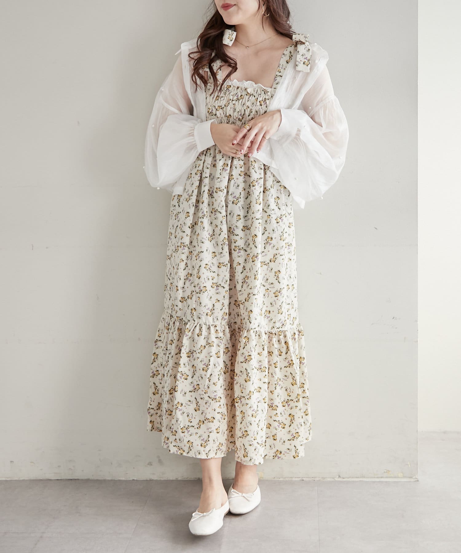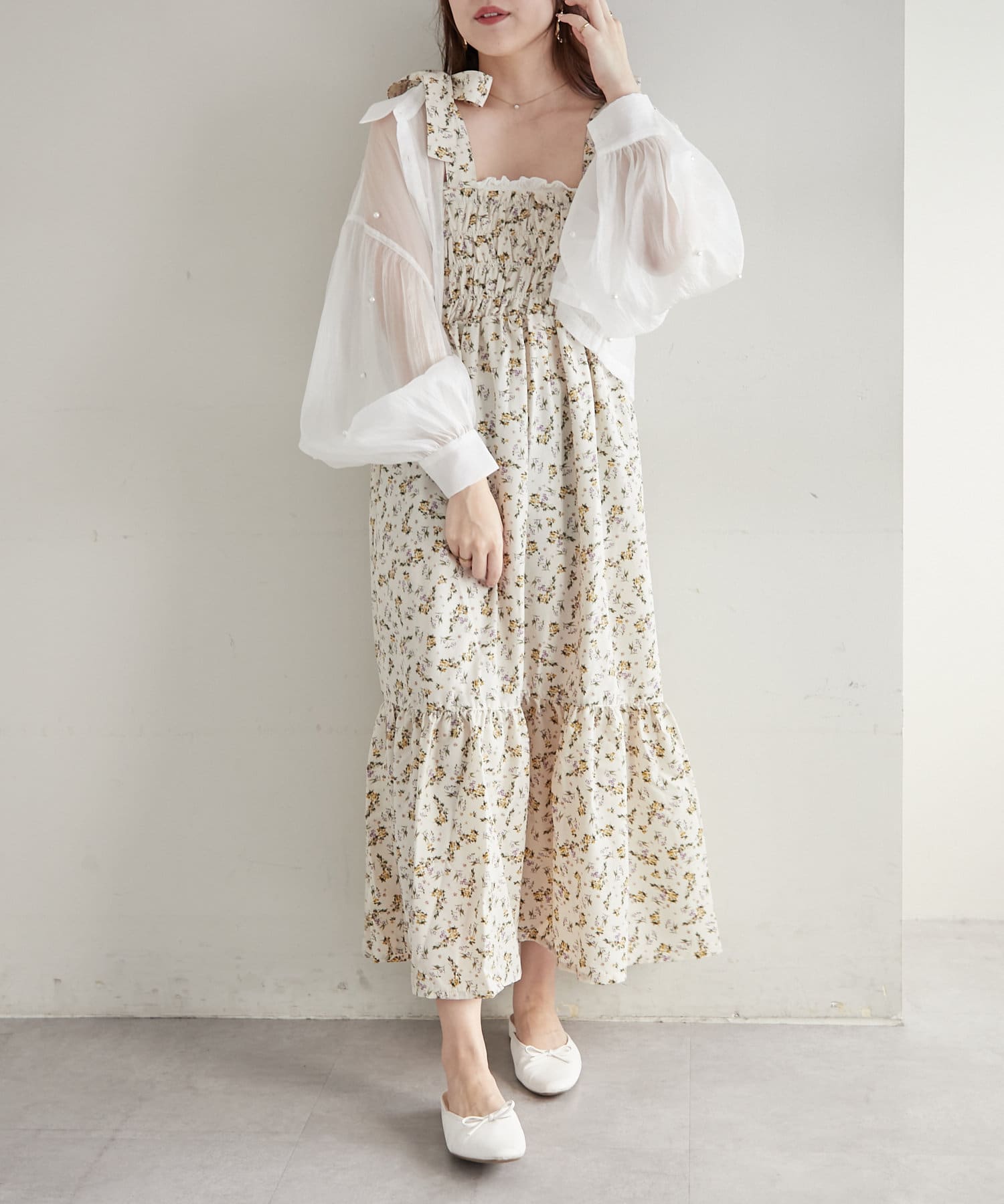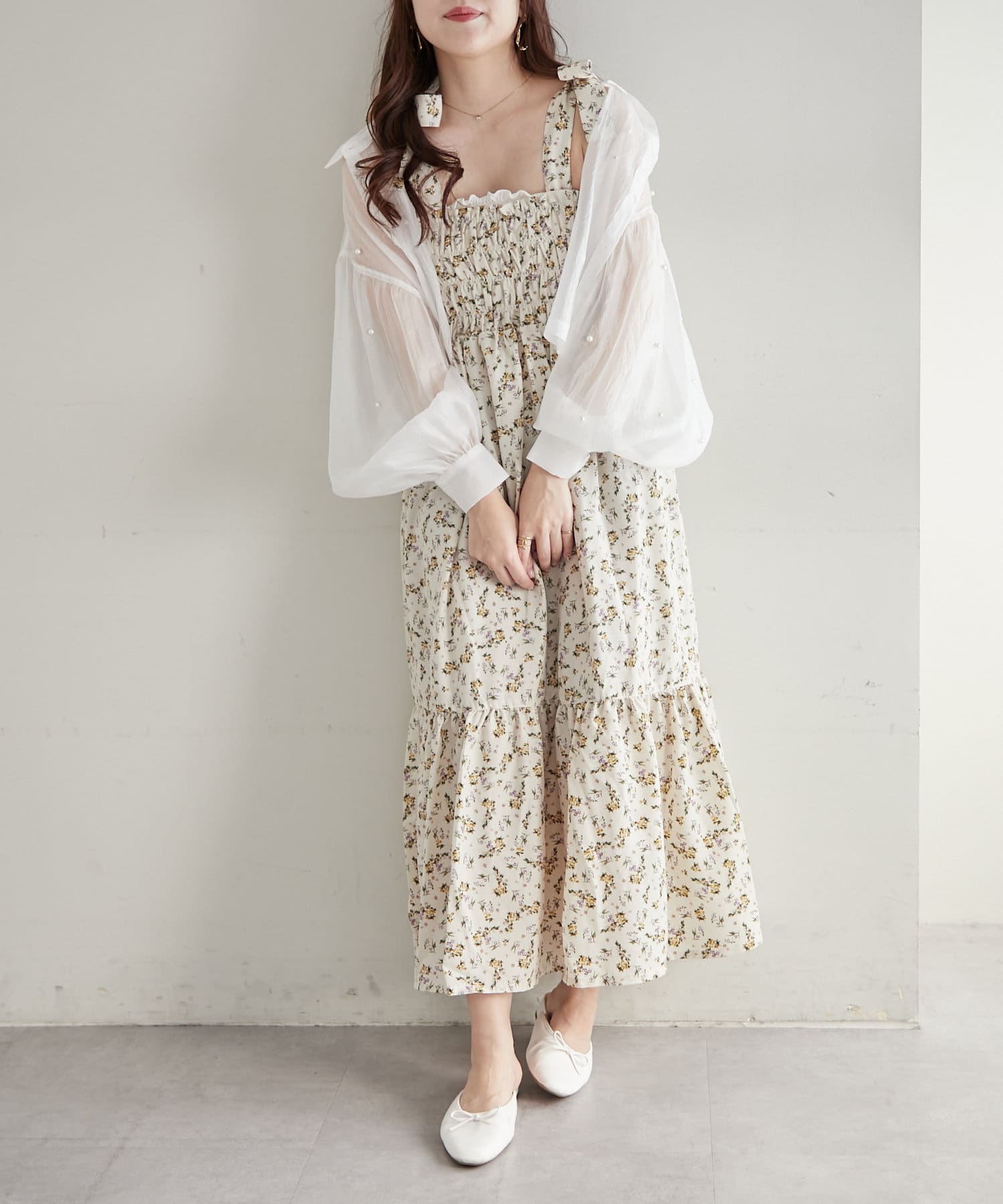 ・中にベアトップやキャミソールを合わせて1枚での着こなしがおすすめ。