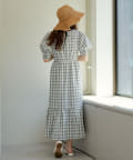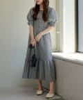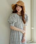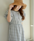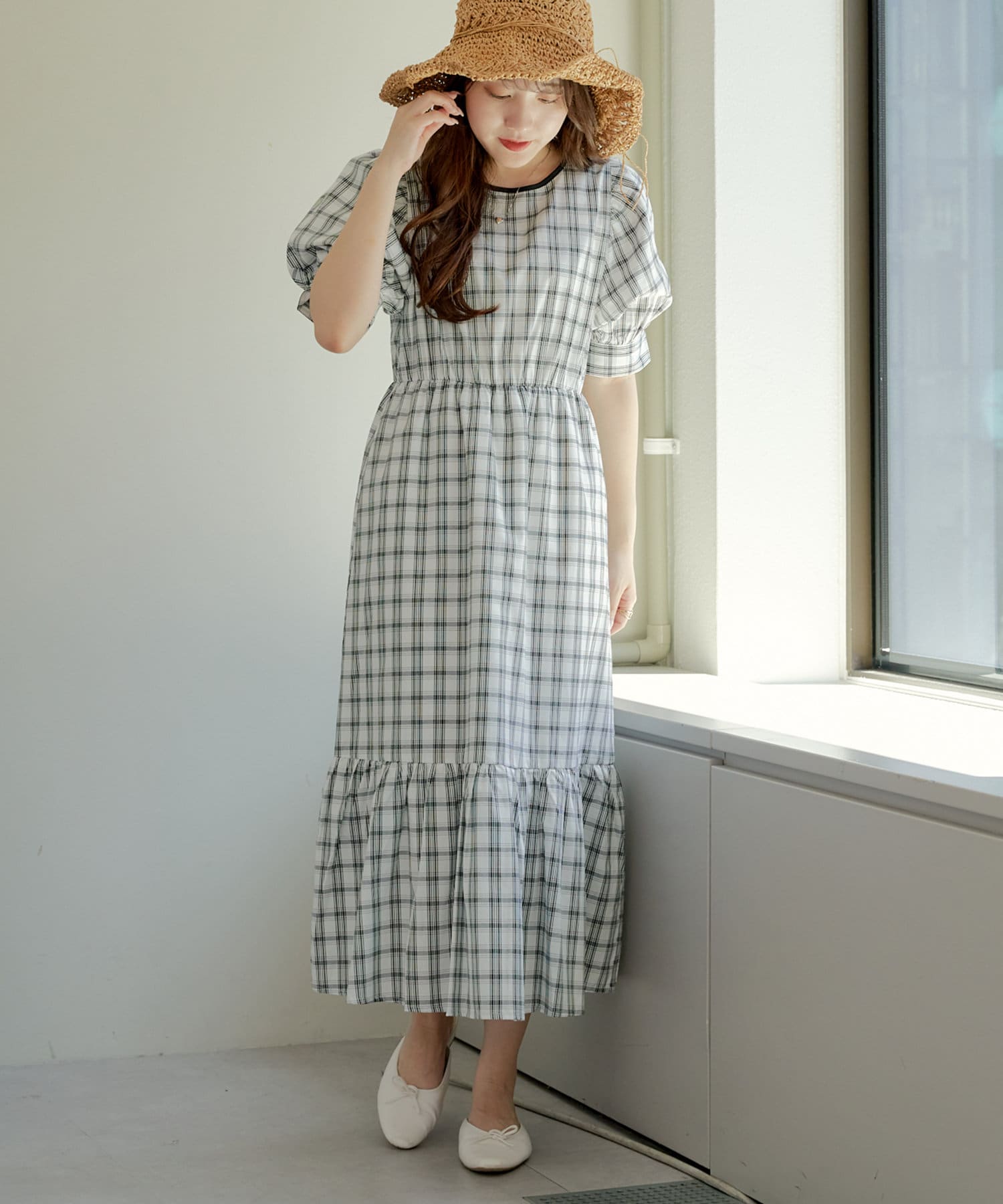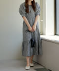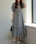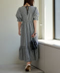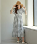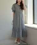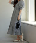 配色パインピングギャザーワンピース