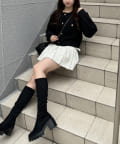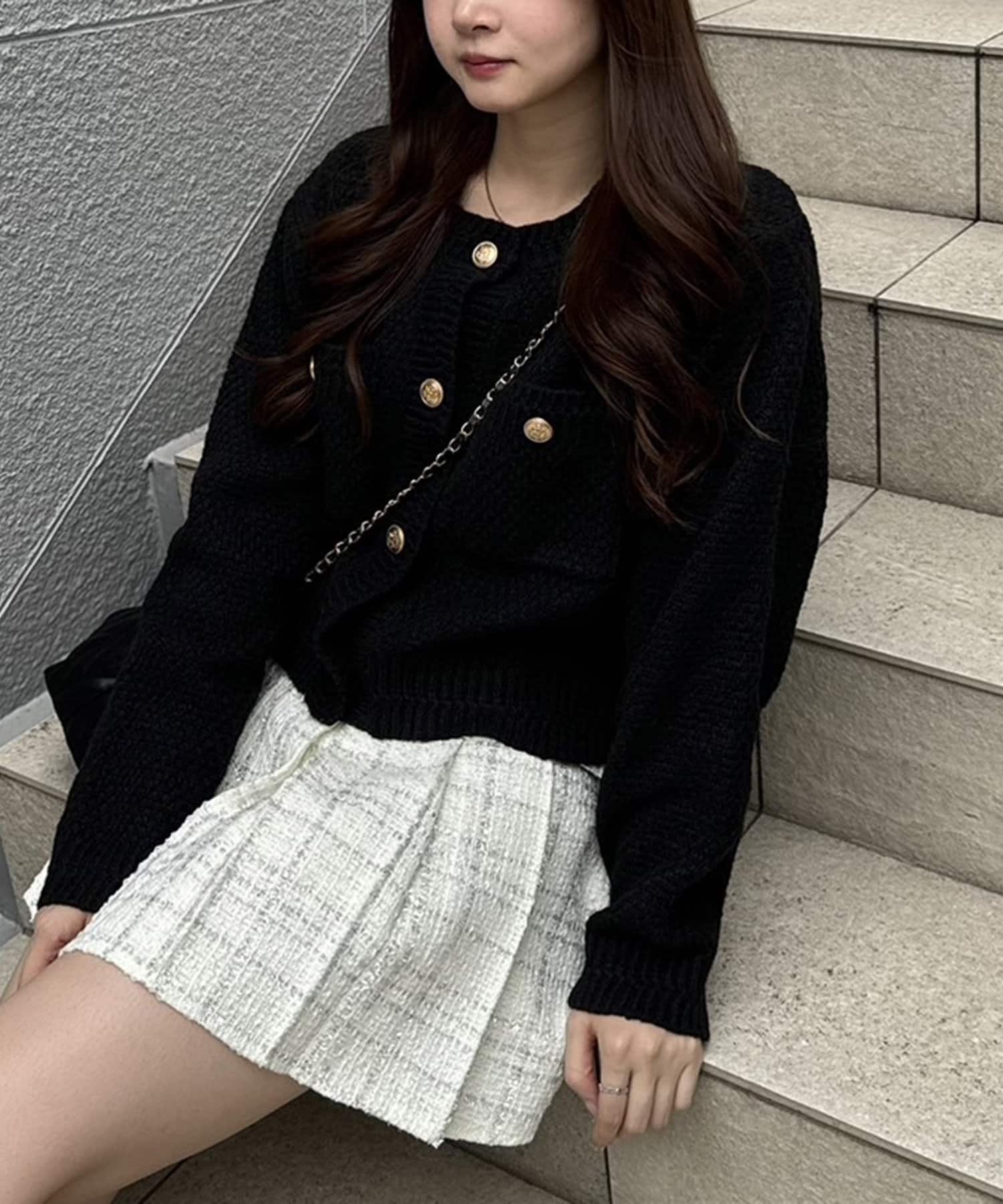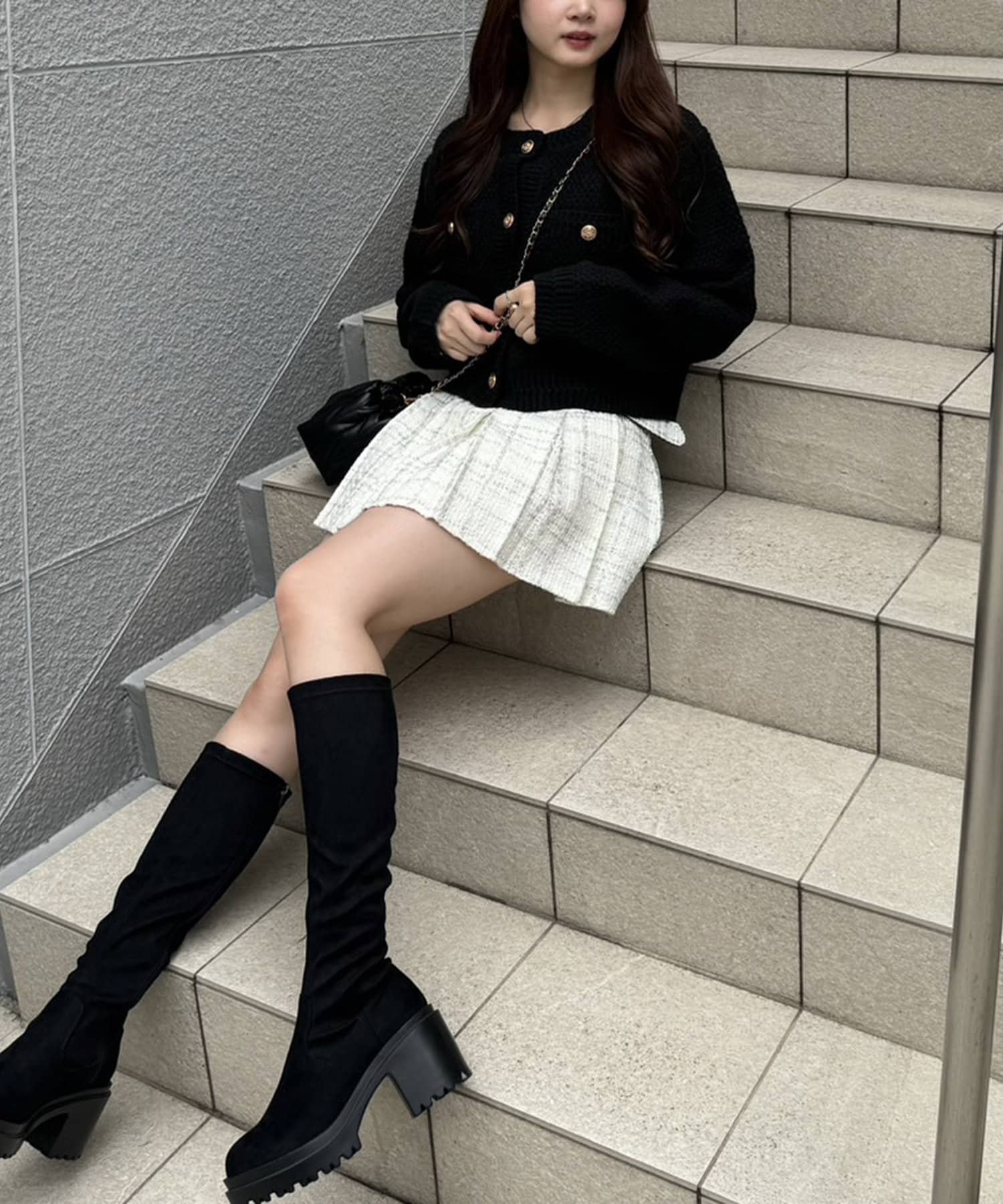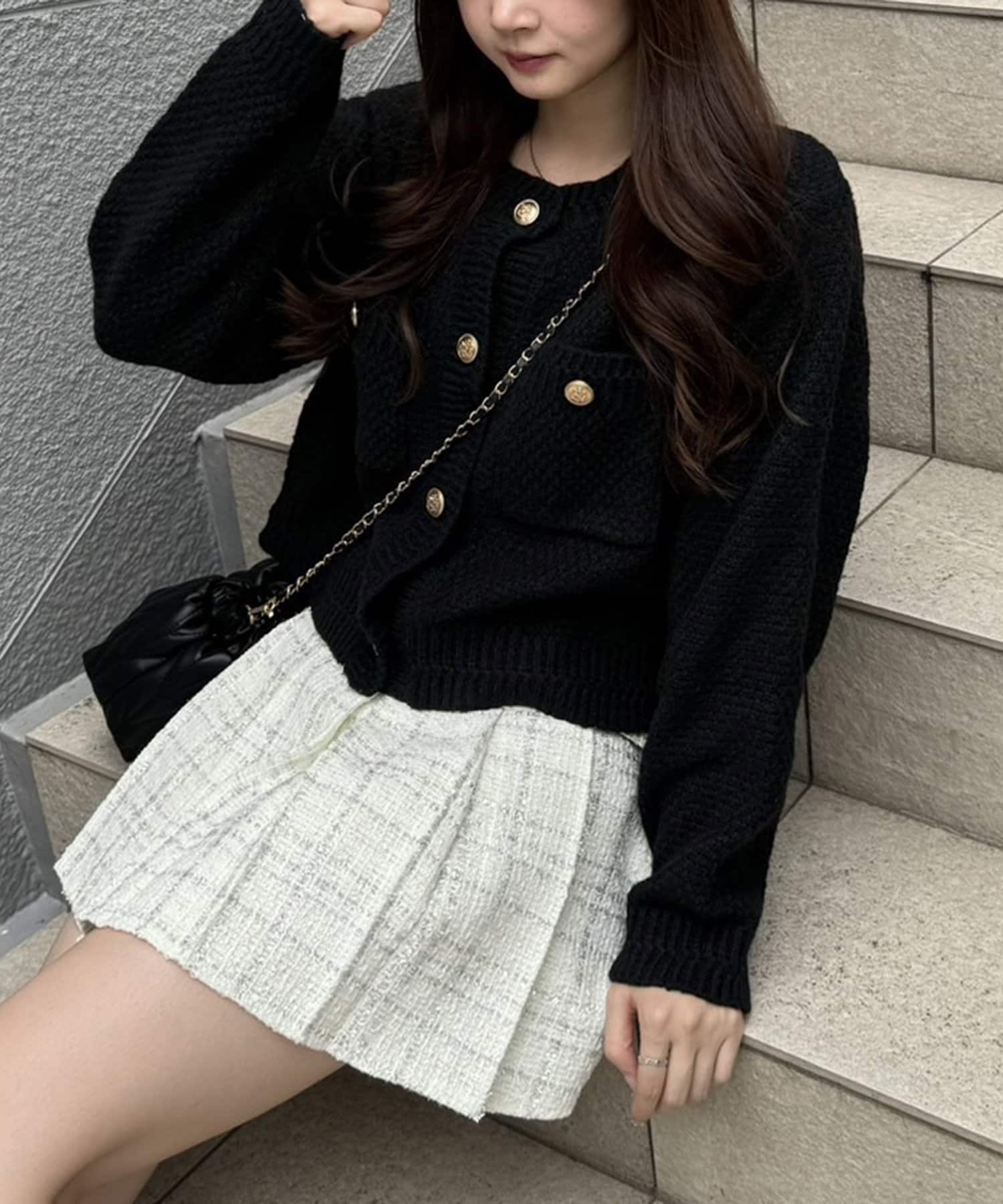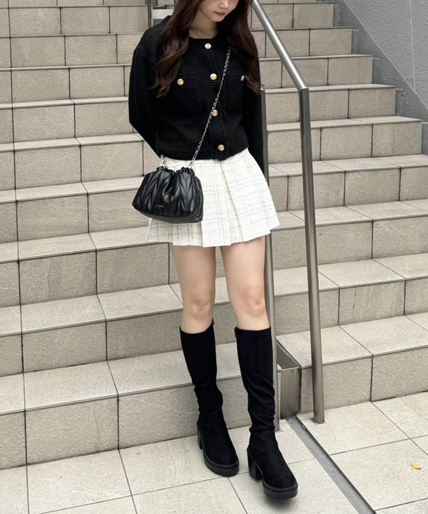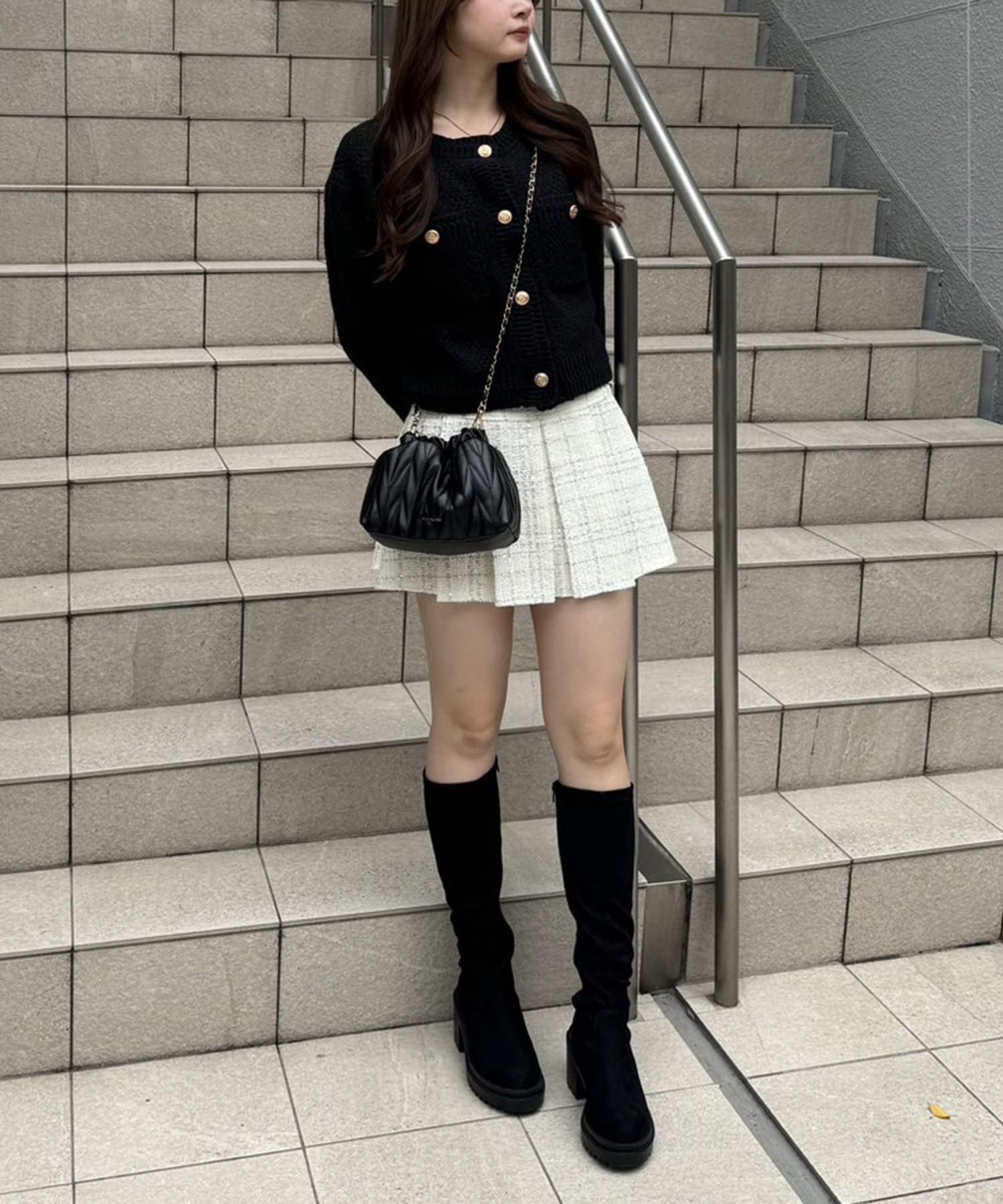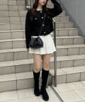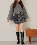 ミニスカートですが、ツイード素材で大人っぽく着れます。