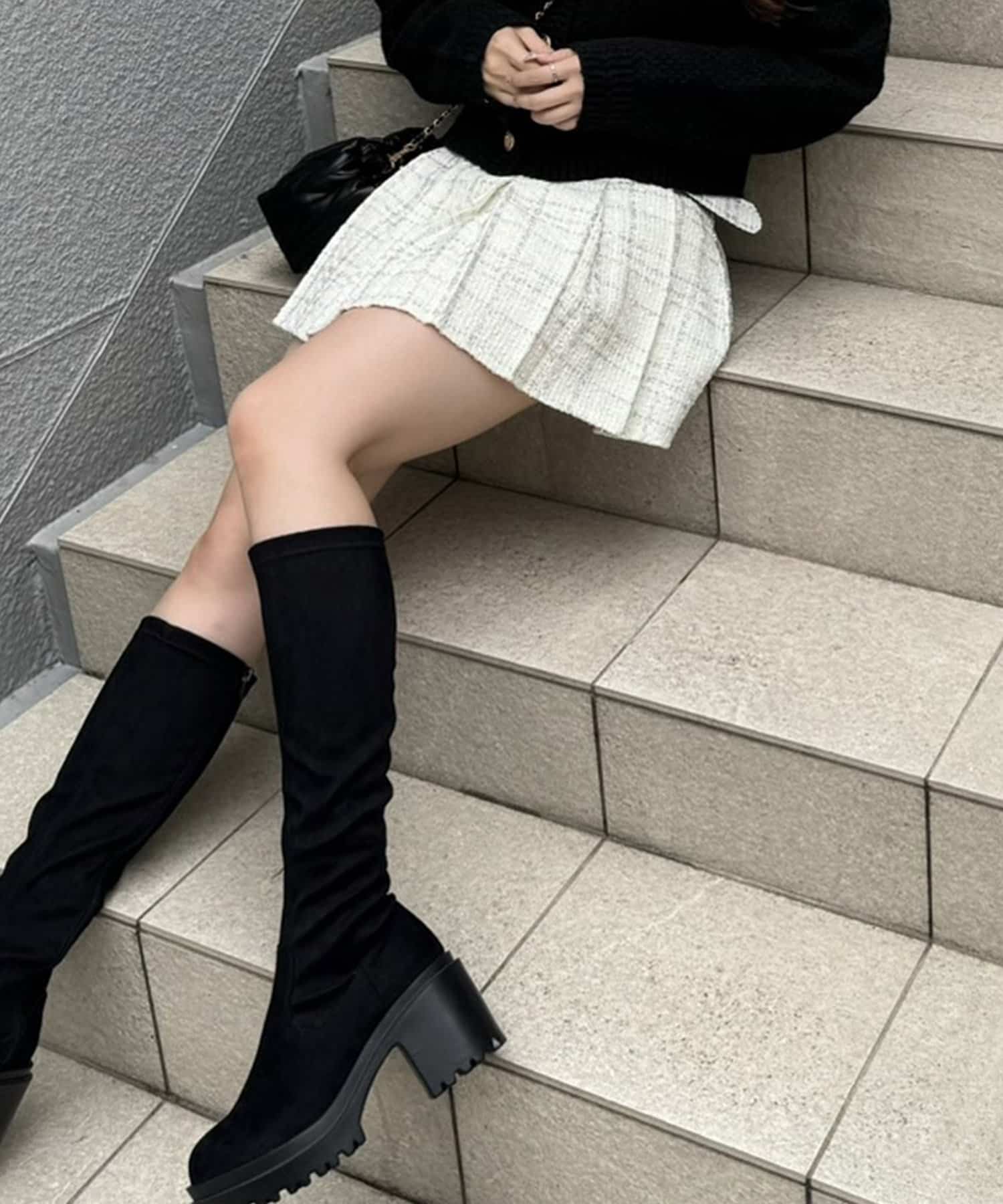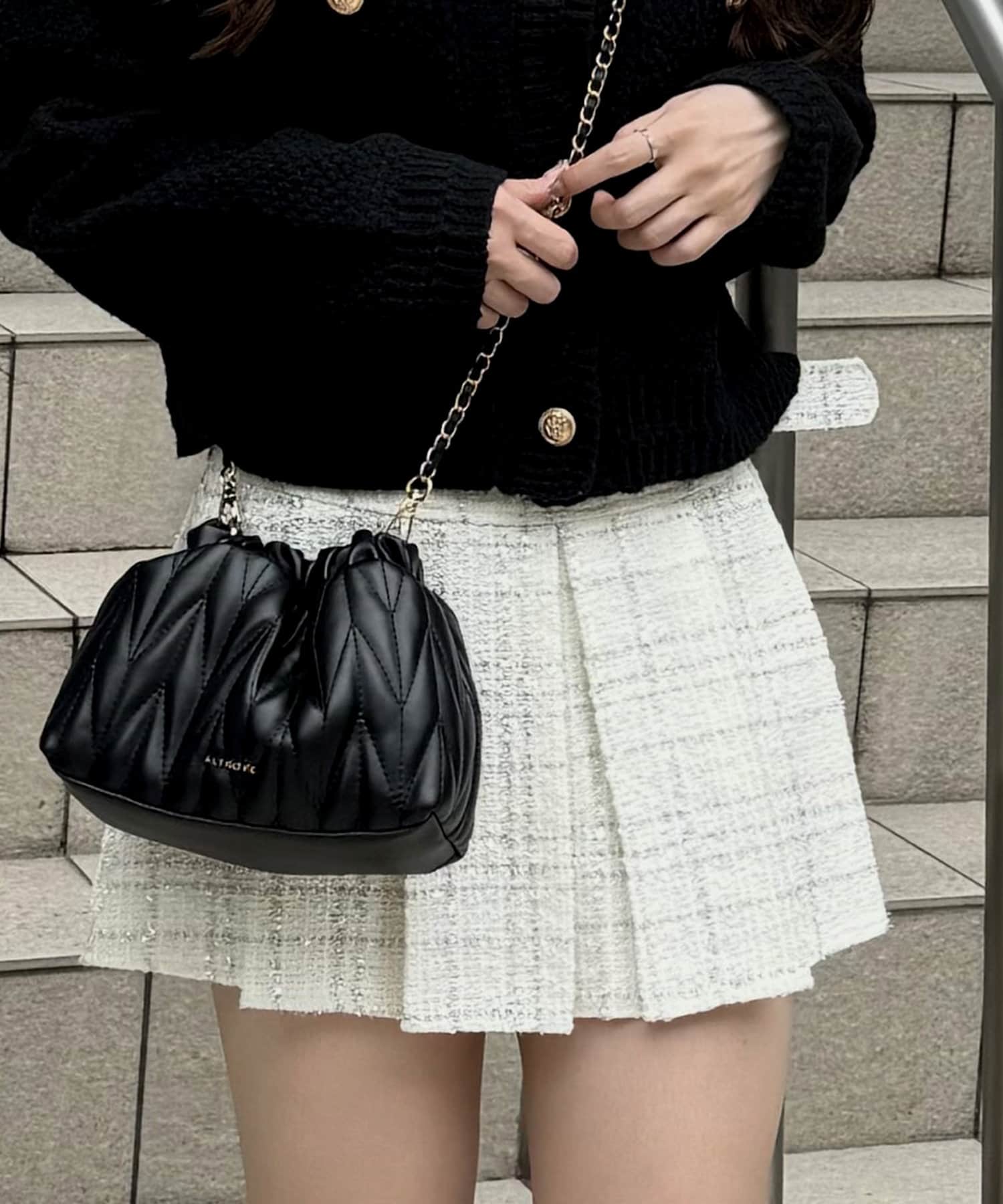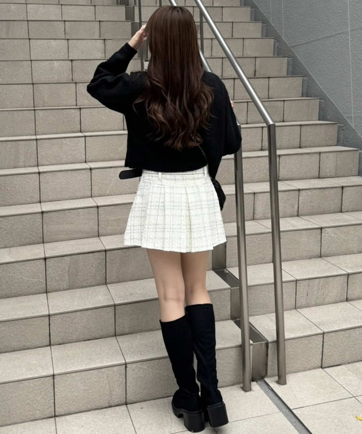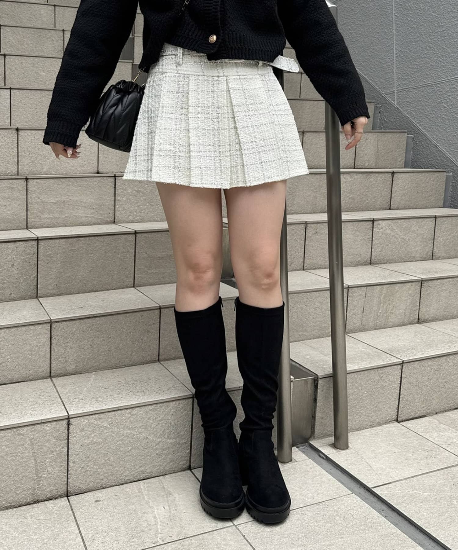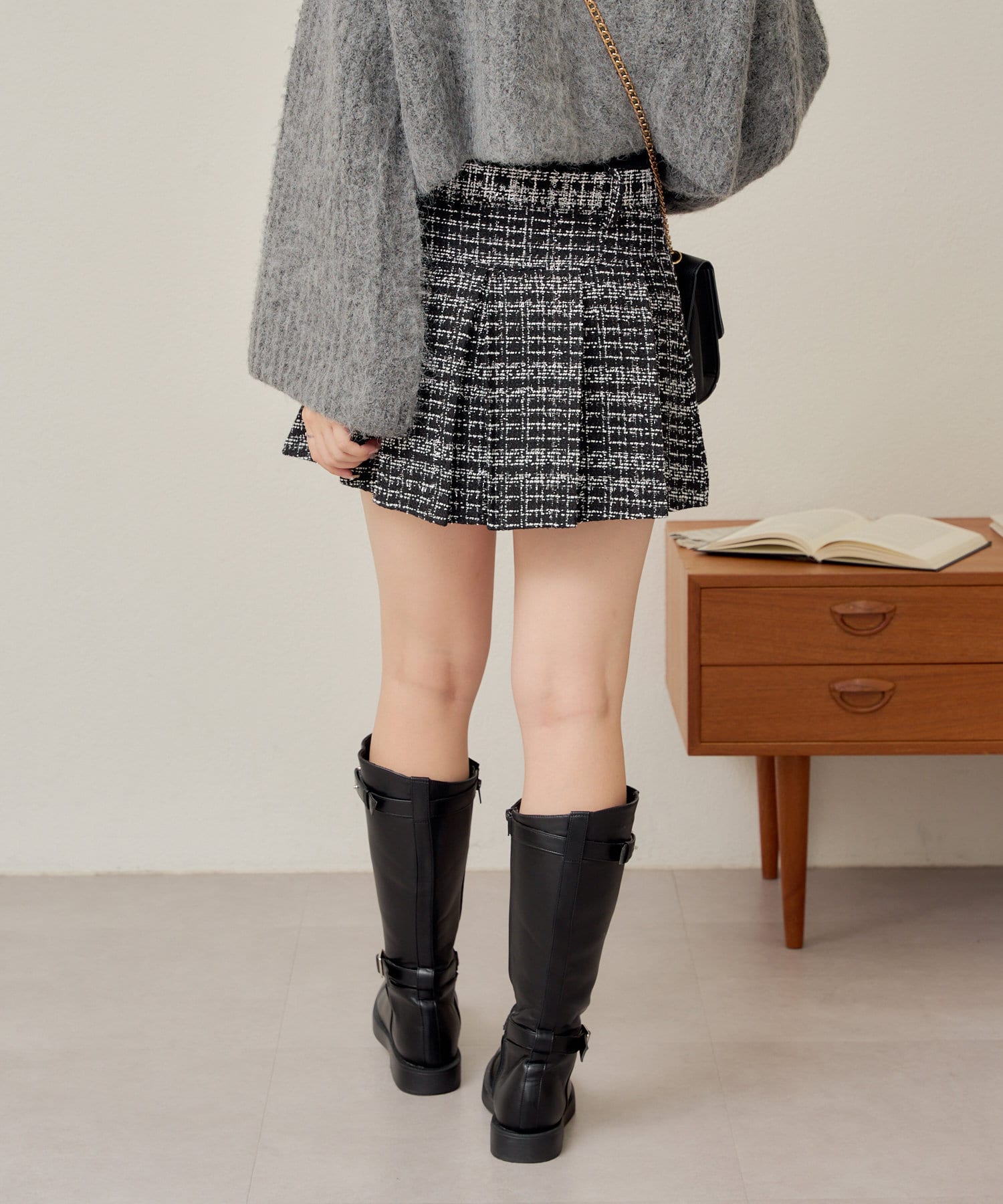 ・ラメツイード素材で華やかなコーデになるプリーツミニスカート