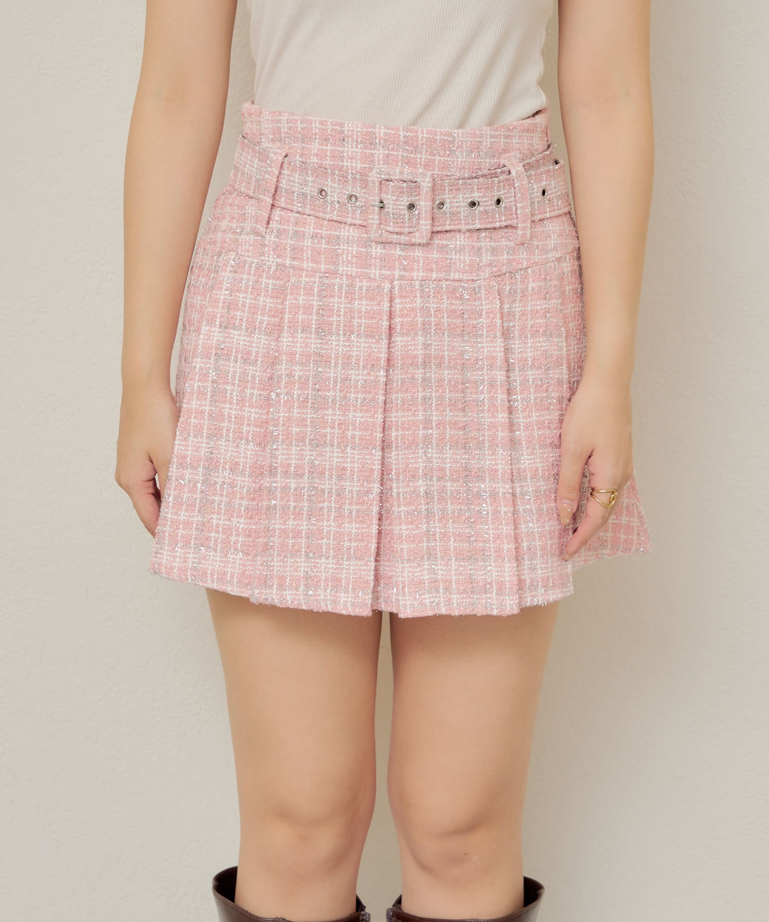 • Remind me and forever(リマインドミーアンドフォーエバー) ラメツイードベルト付スカート