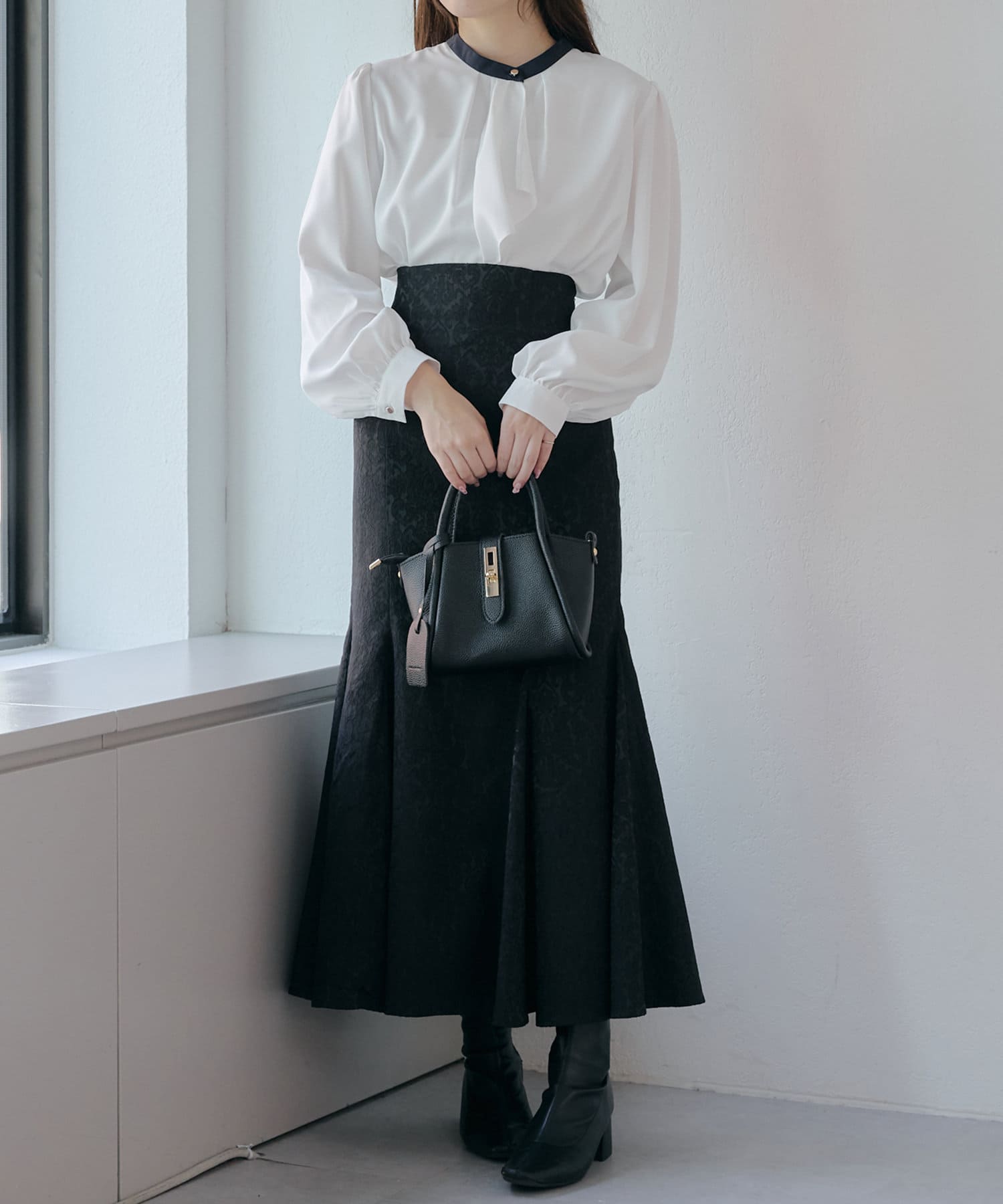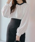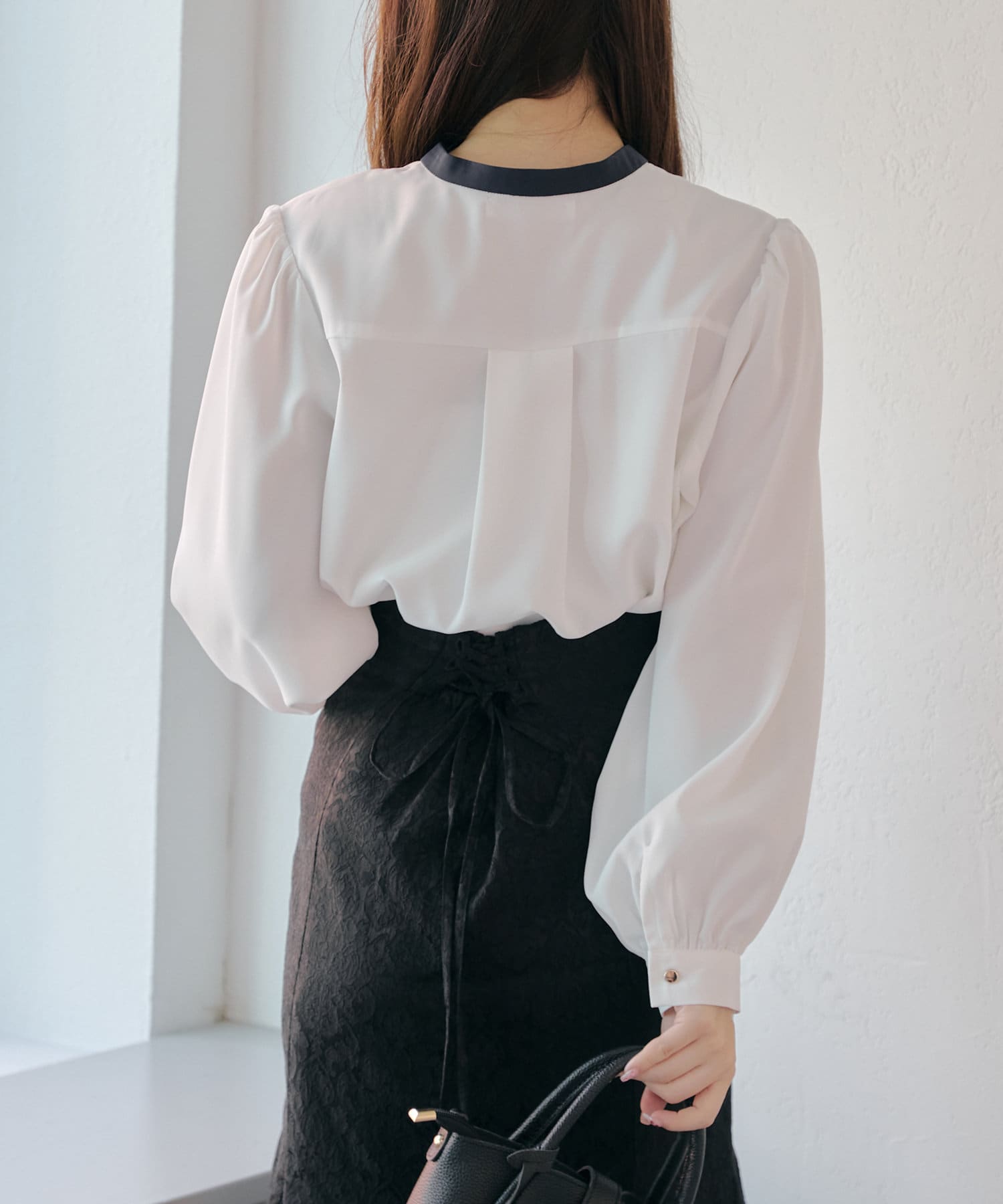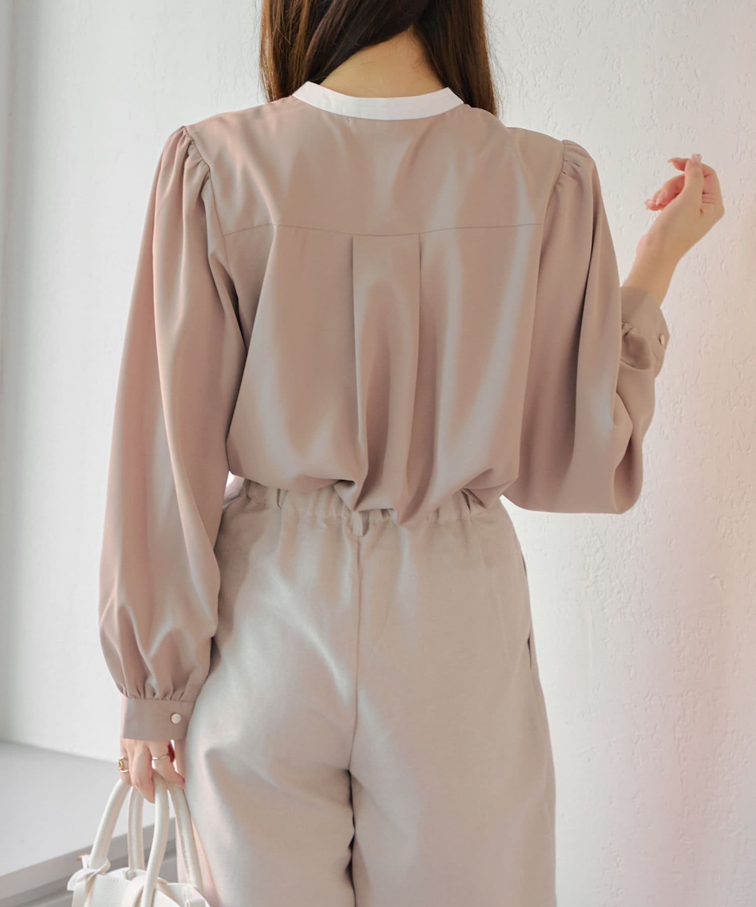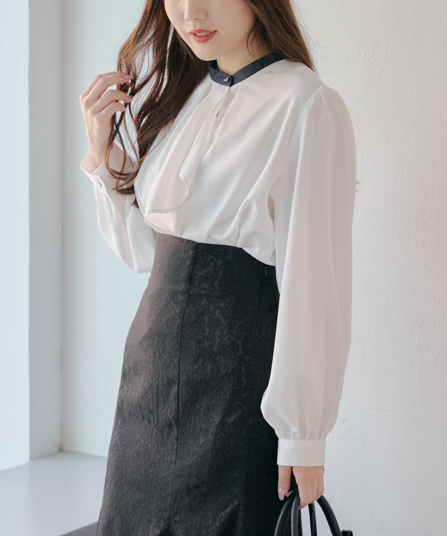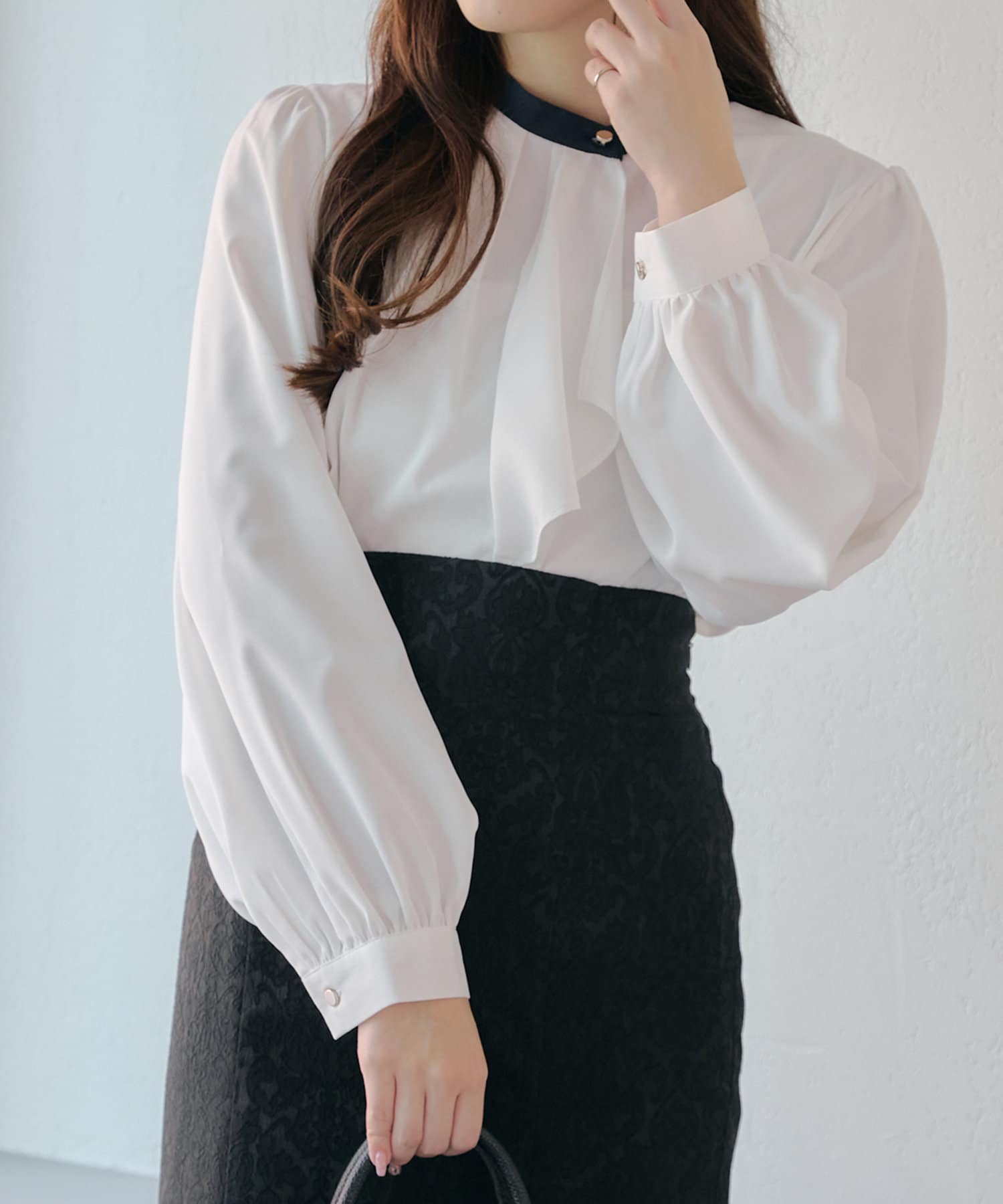 TOP > Remind me and forever > レディース > トップス > シャツ/ブラウス(ボタン) > 【WEB限定】【オフィスにも】ドレープスカーフ衿配色ブラウス