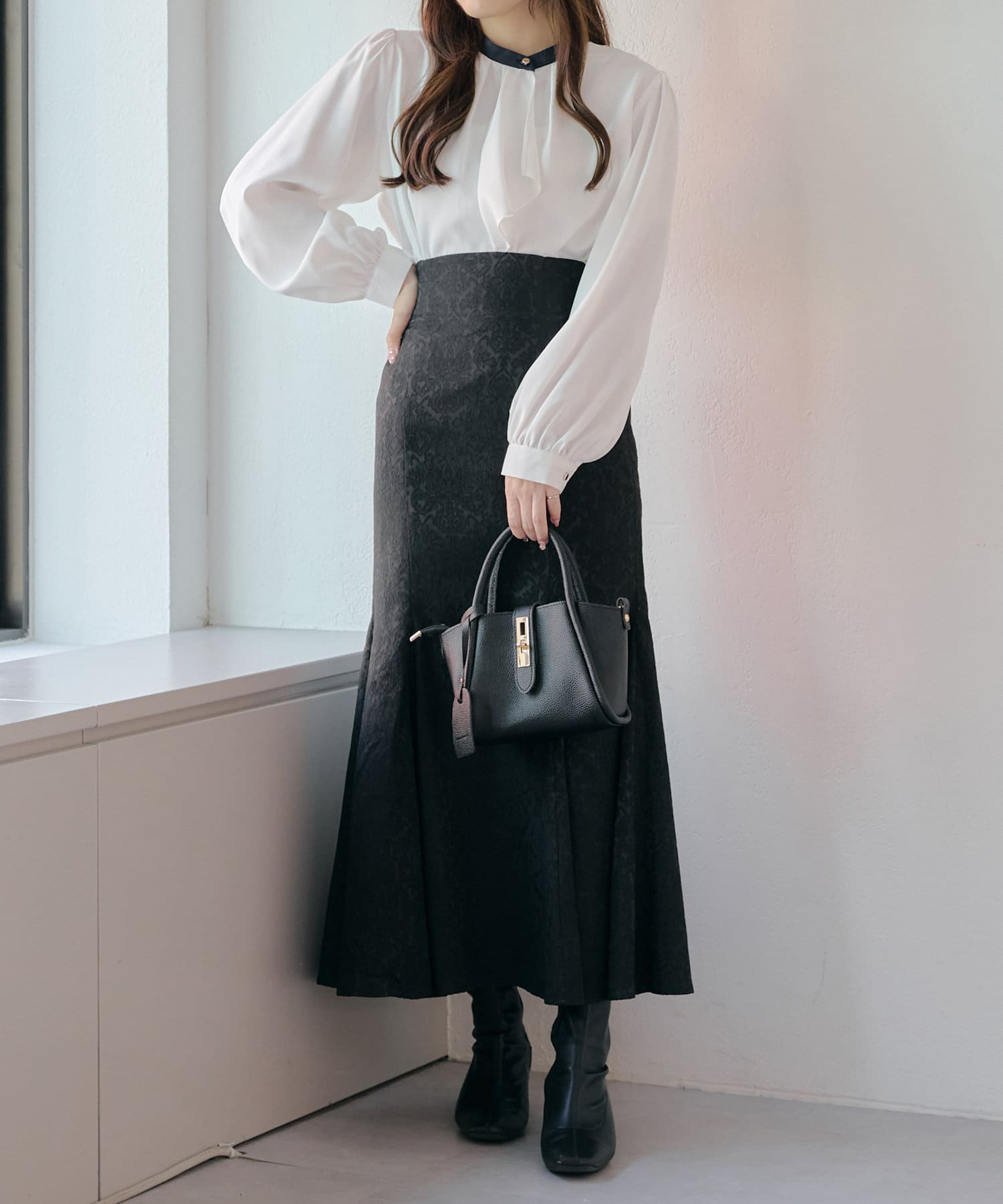 Remind me and forever(リマインドミーアンドフォーエバー) 【WEB限定】【オフィスにも】ドレープスカーフ衿配色ブラウス
