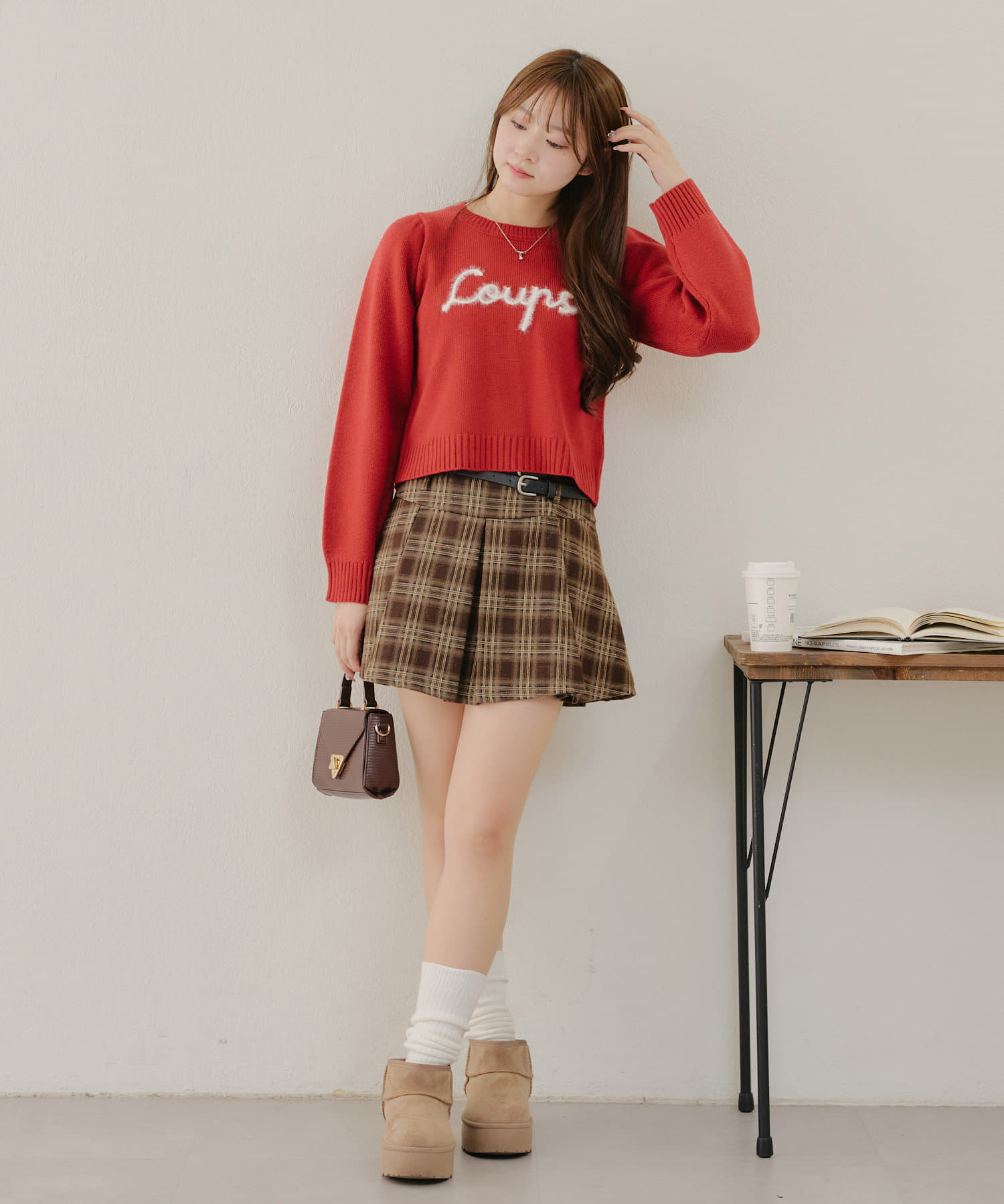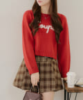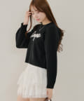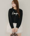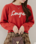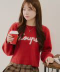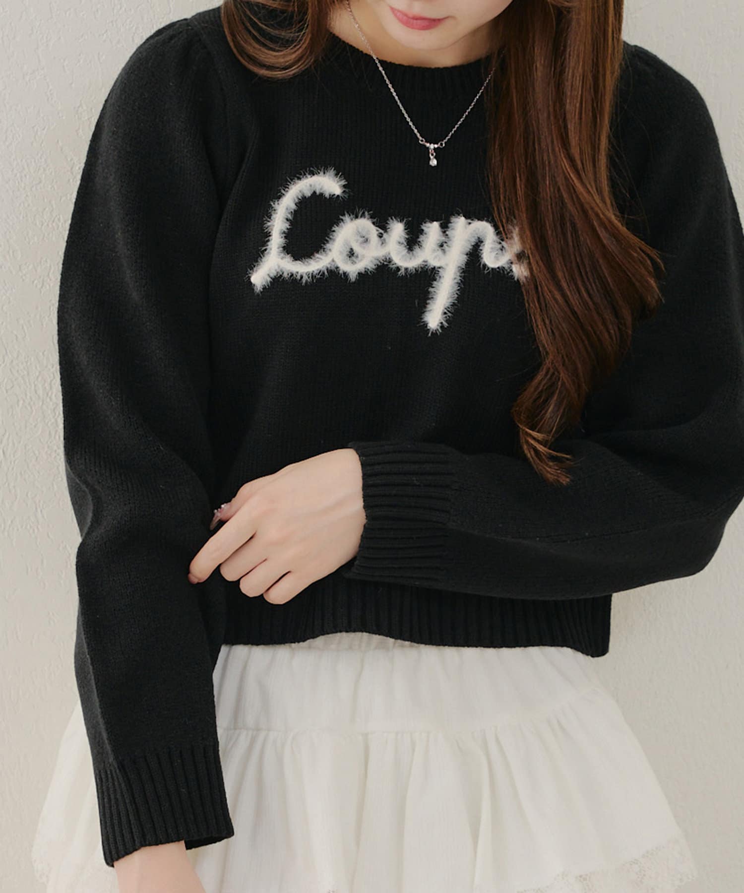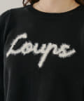 ・ふわふわな触り心地が魅力のシャギー素材のロゴと猫がデザインされたニットプルオーバー