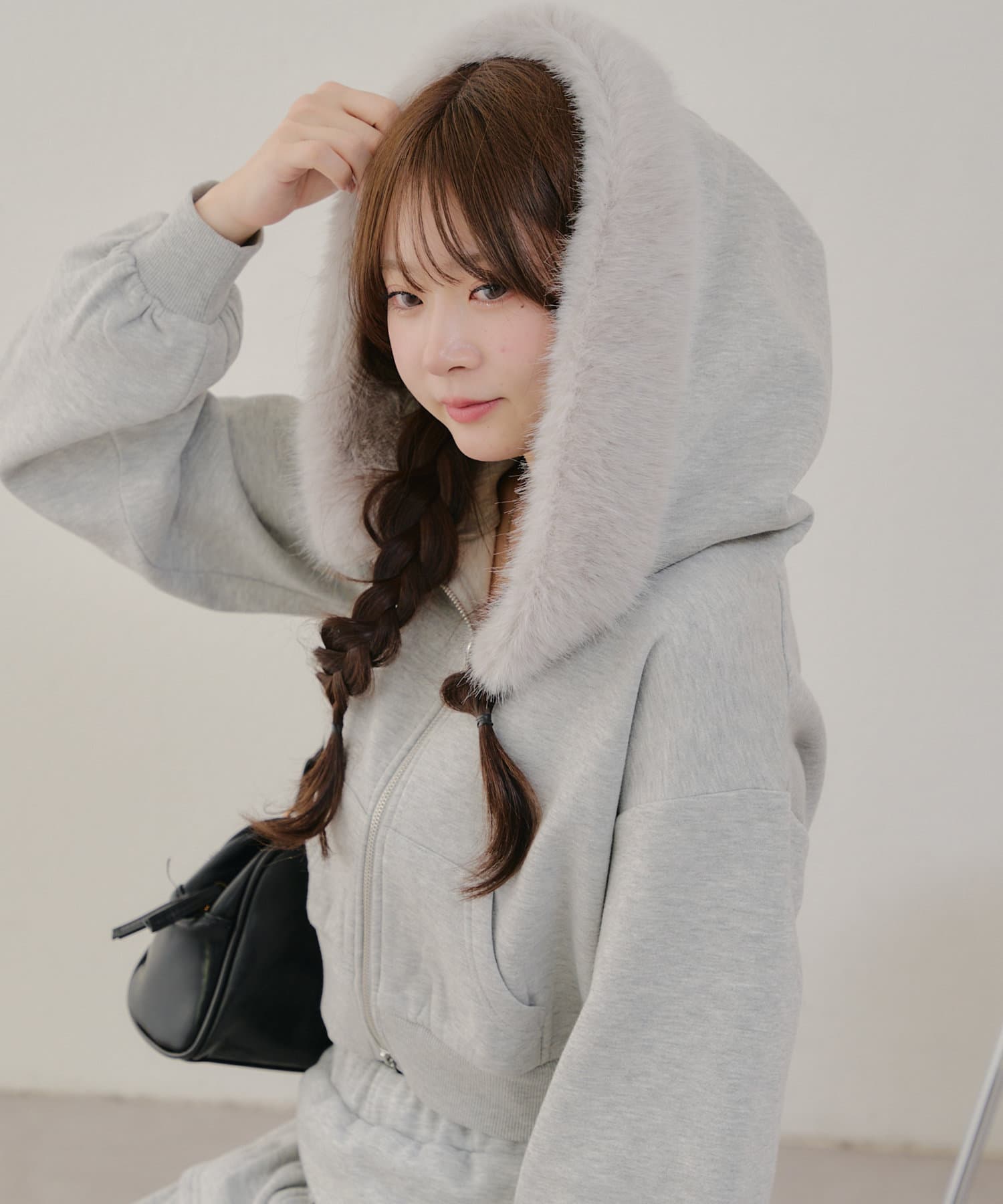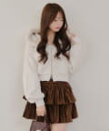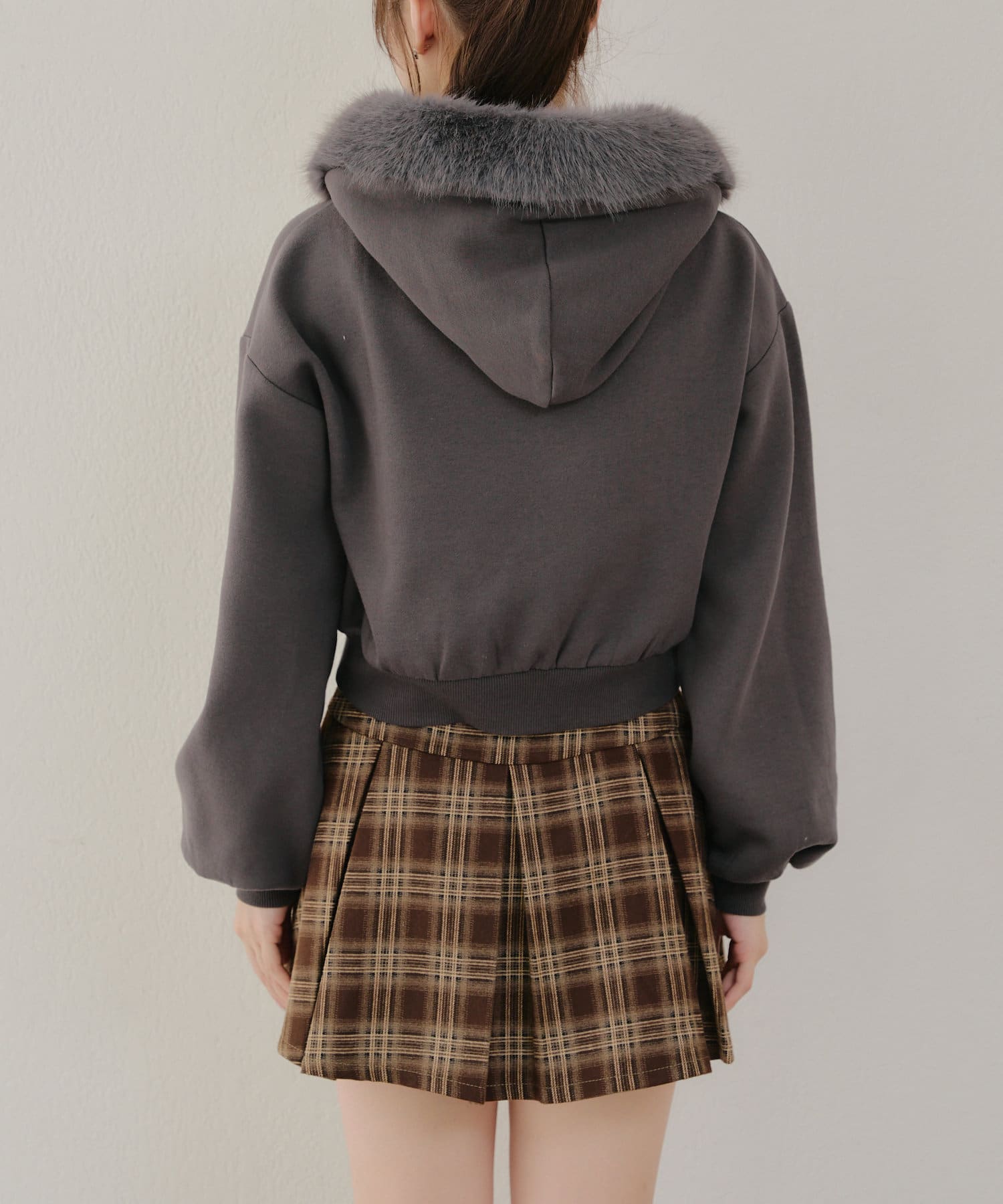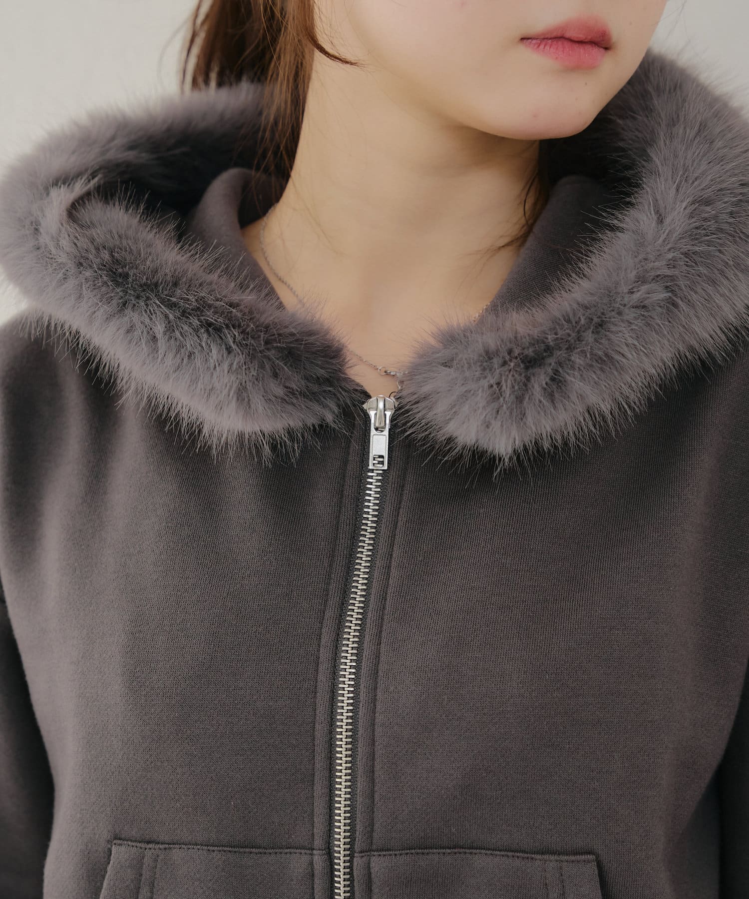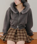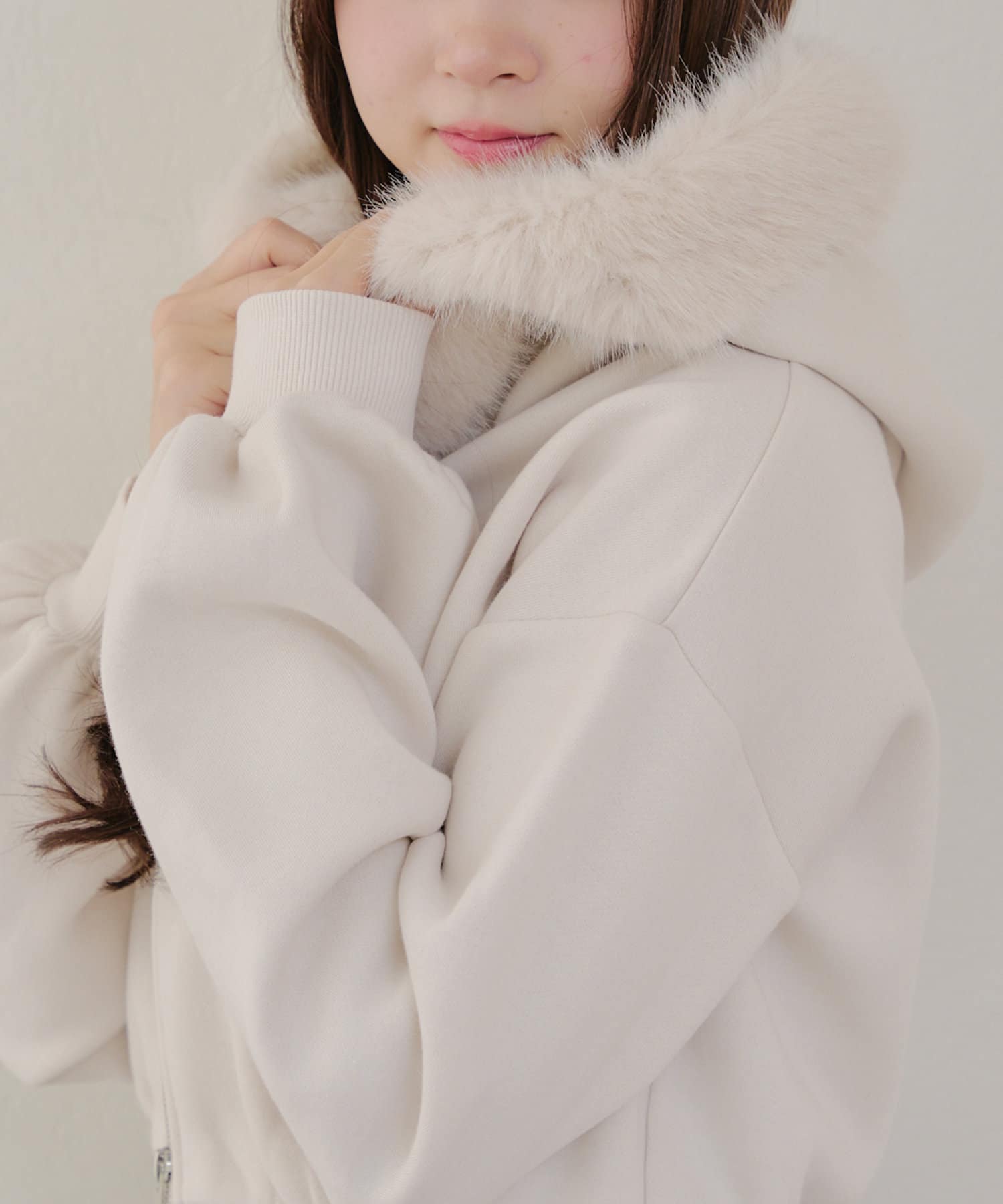 ・ふわふわのファー付きフードが可愛いパーカー。