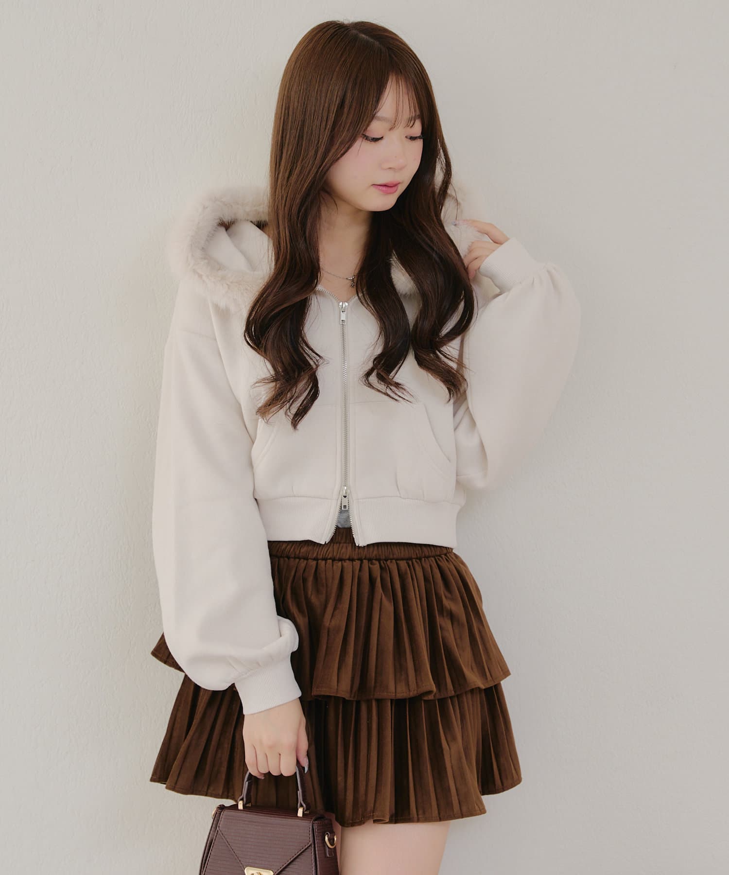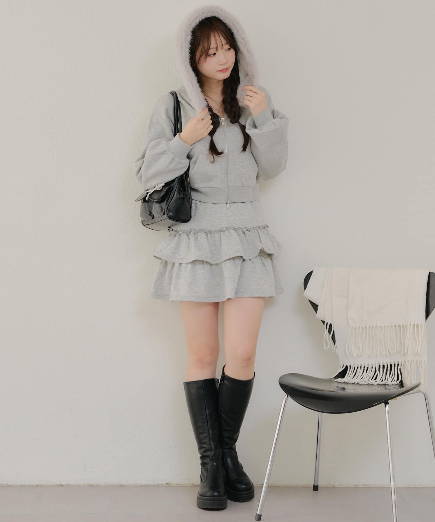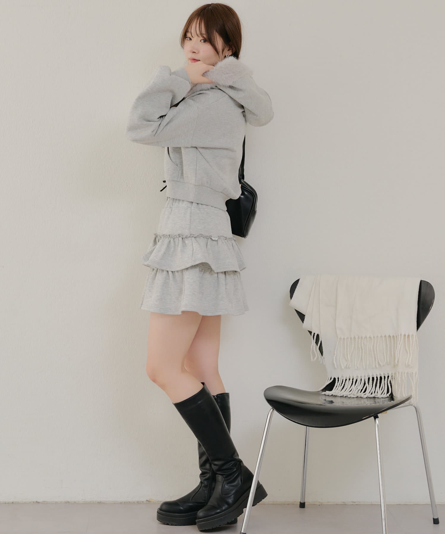 ・ミニスカートと合わせた韓国っぽガーリーなコーデが可愛い♪