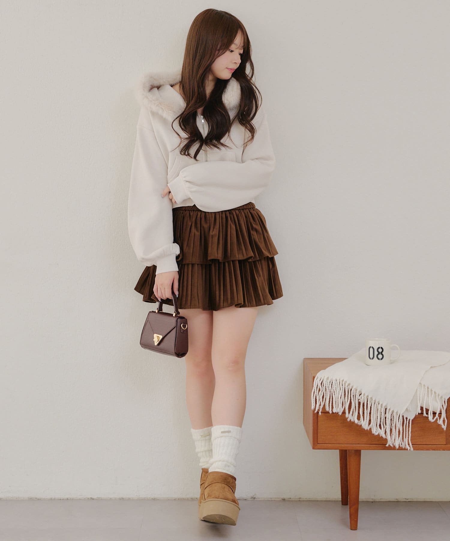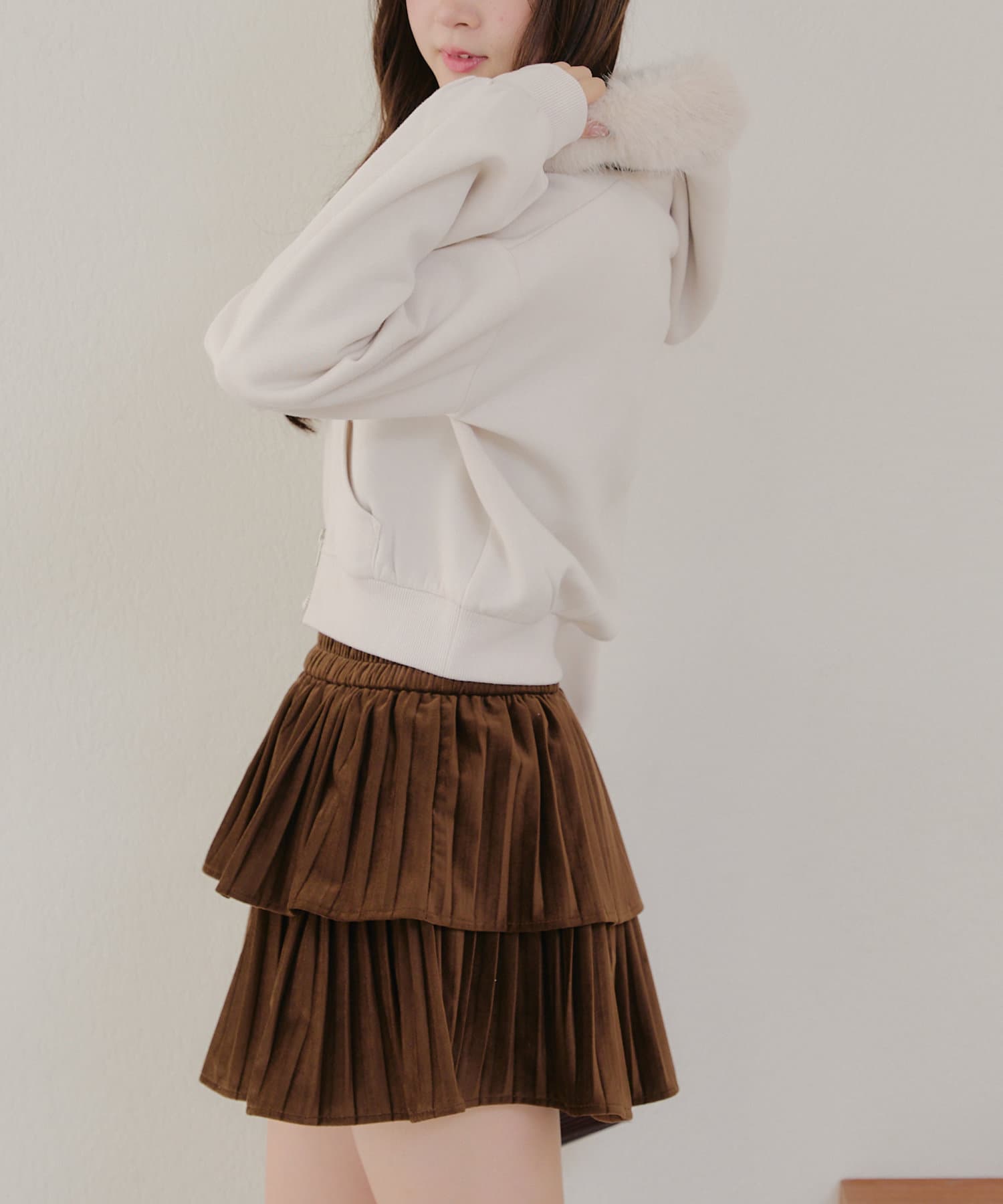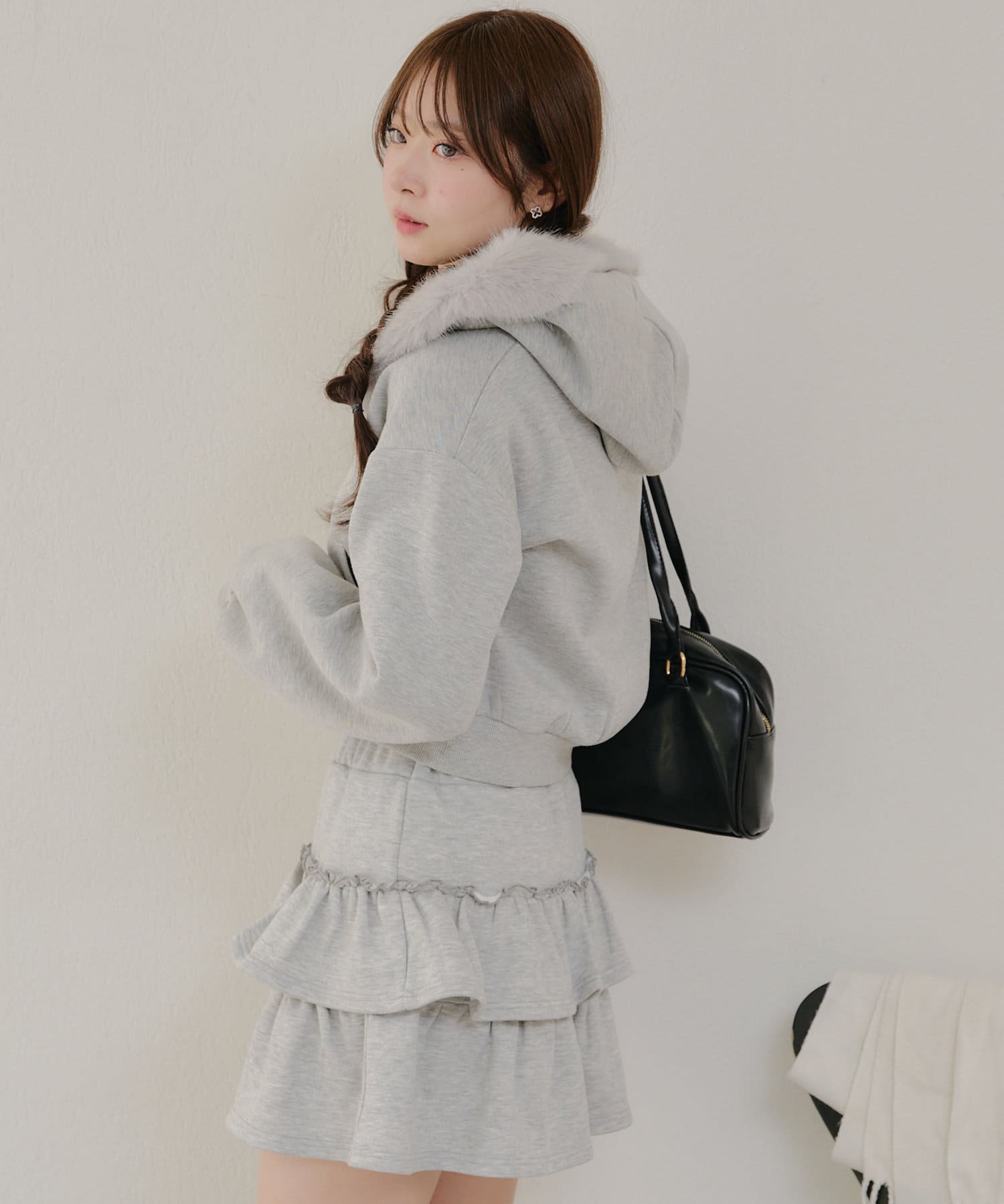 ・ミニスカートと合わせた韓国っぽガーリーなコーデが可愛い♪