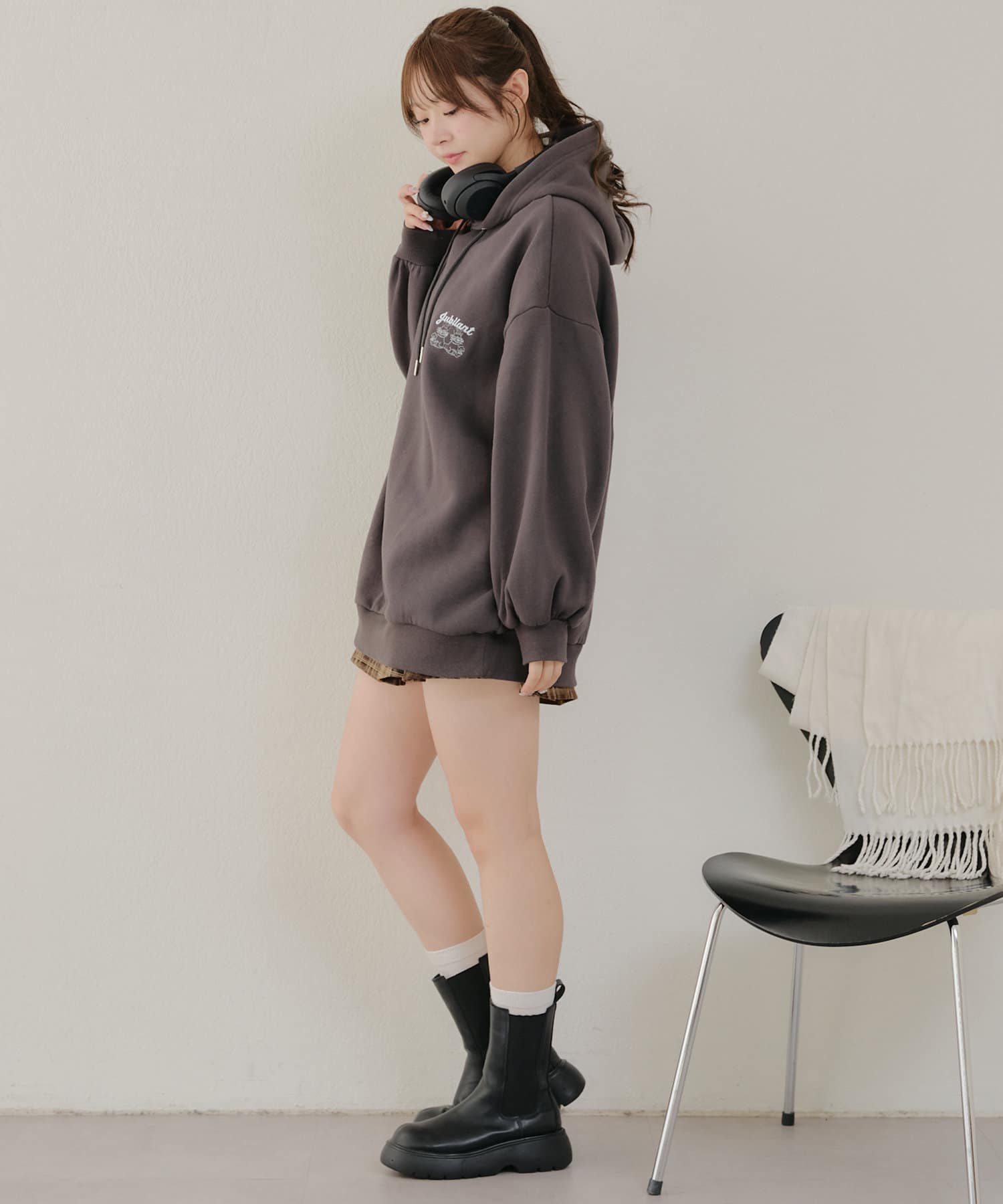 ・オーバーサイズなので低身長の方は一枚でワンピとしても着用可能です。