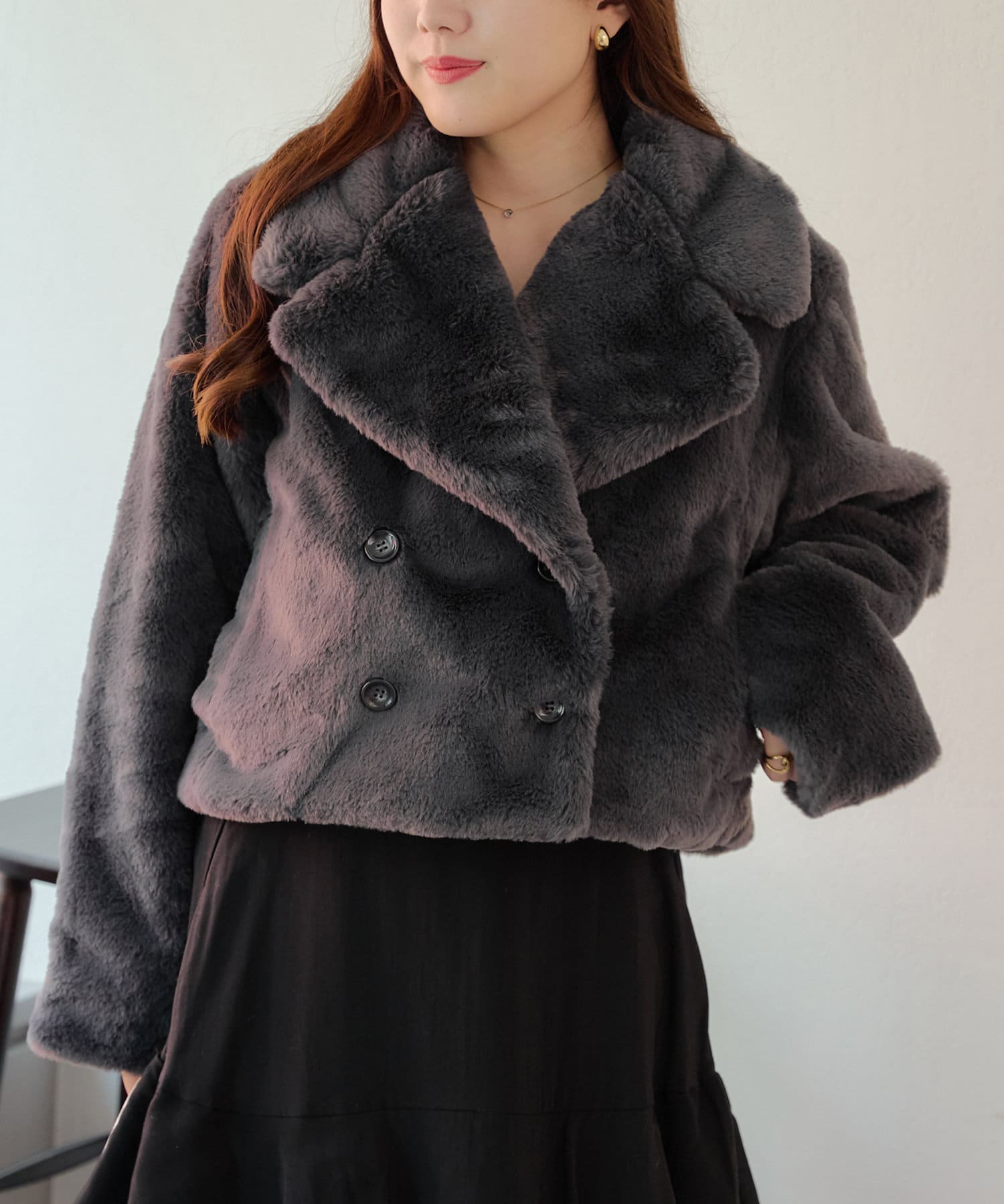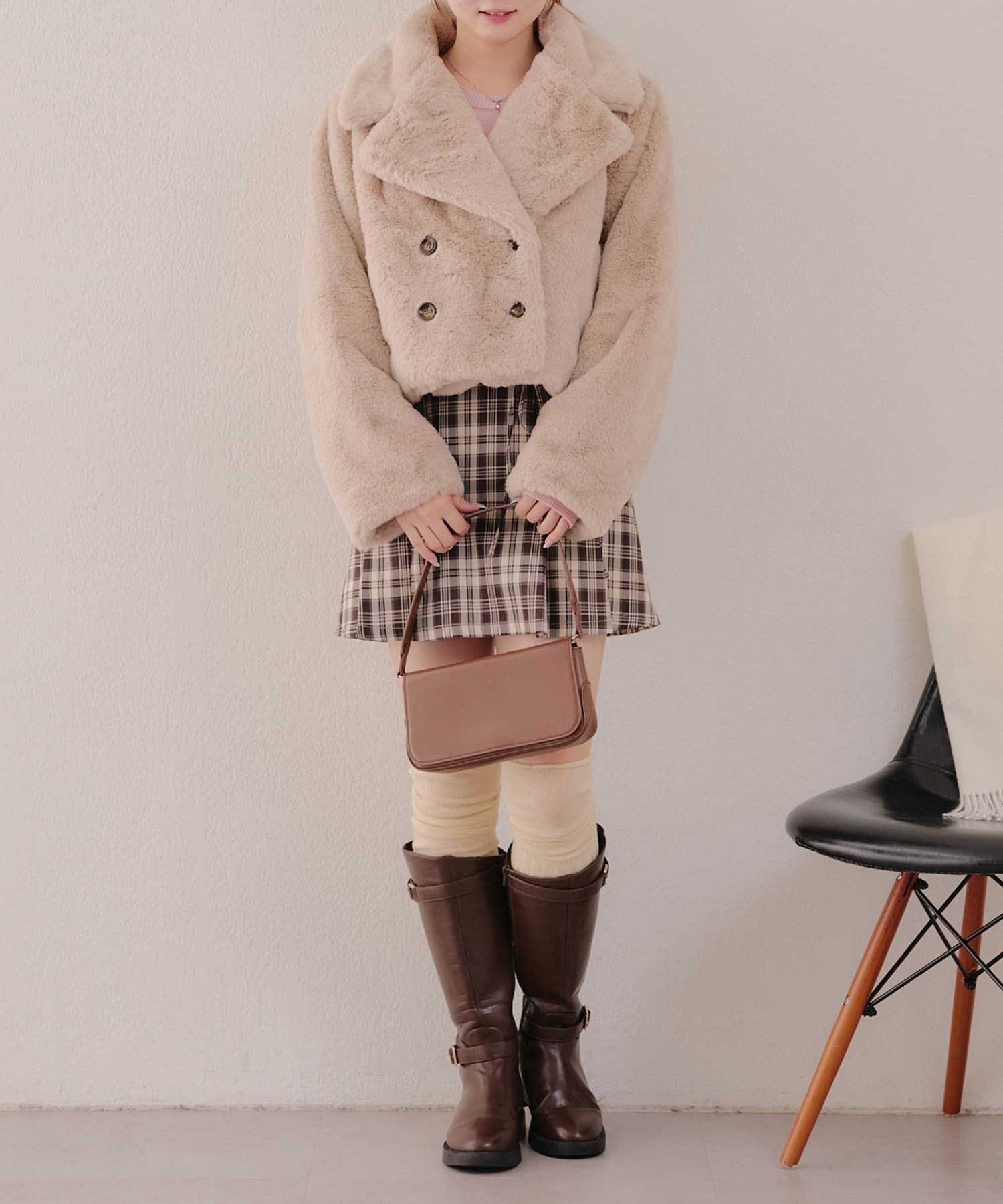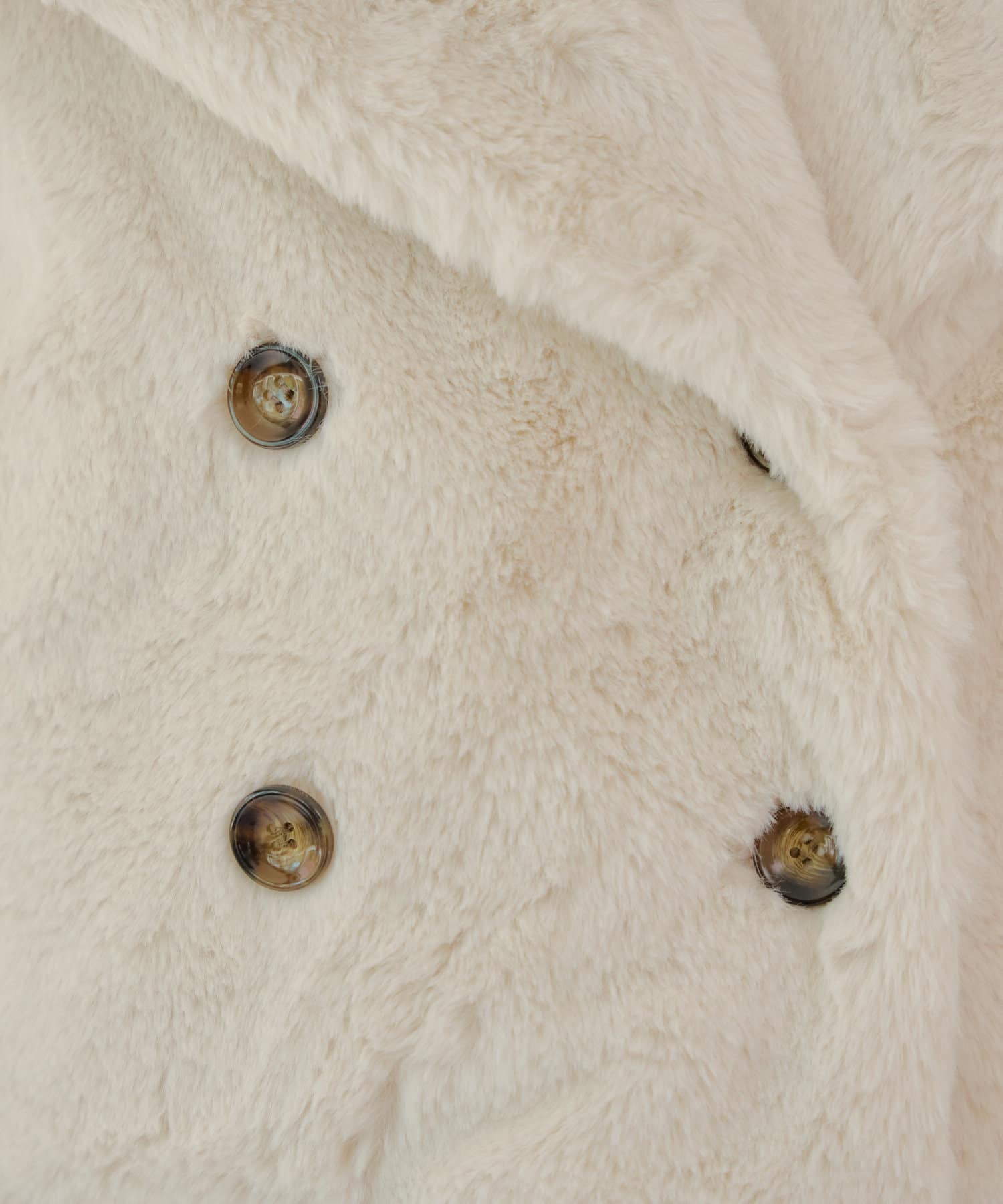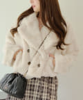 ダブルボタンで大人っぽく、ファーが女性らしさも際立ててくれるアイテムです。