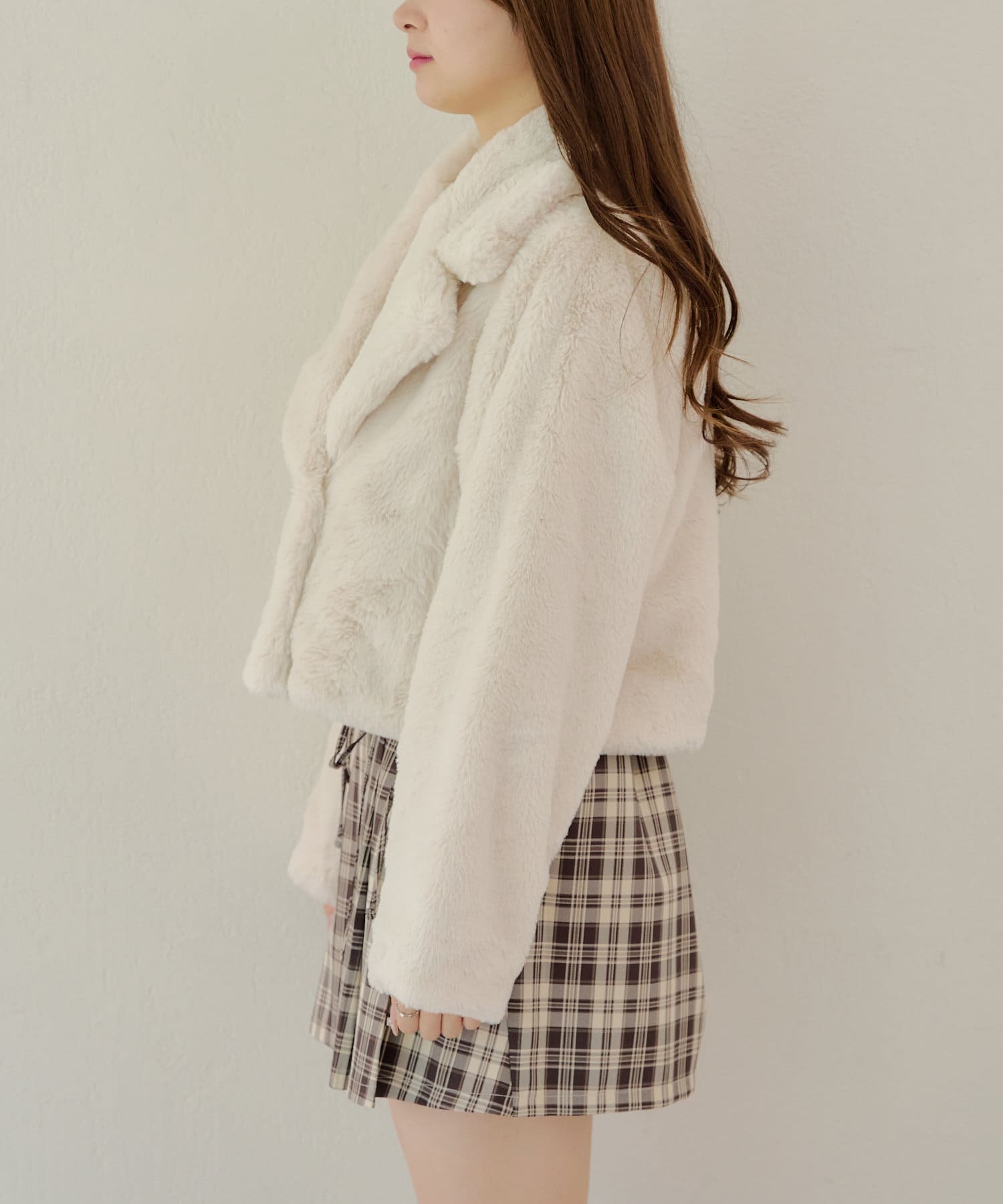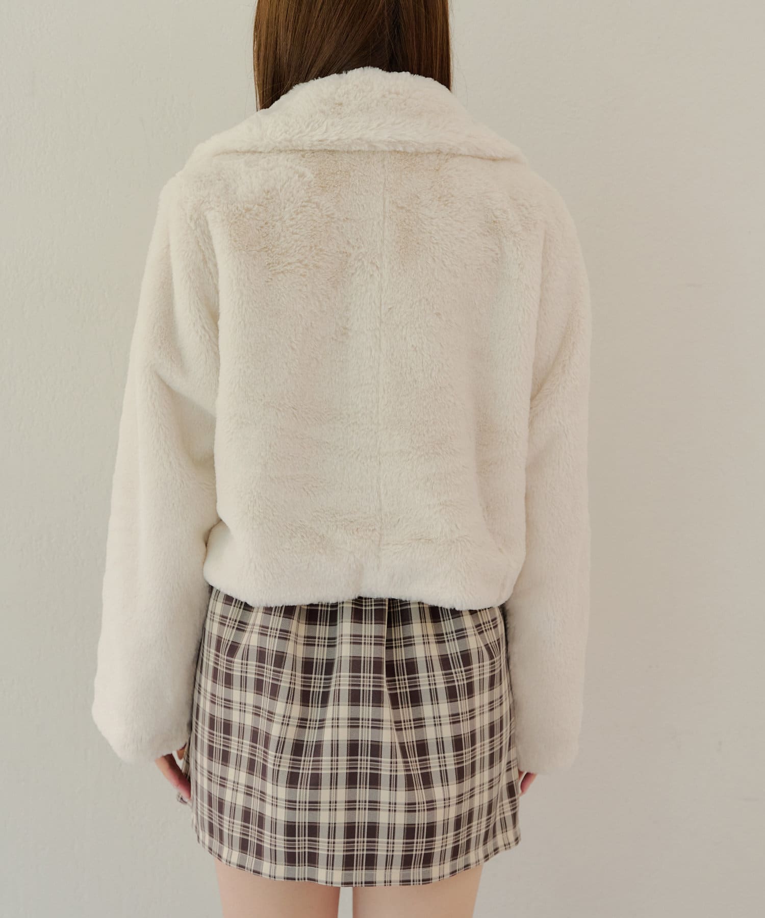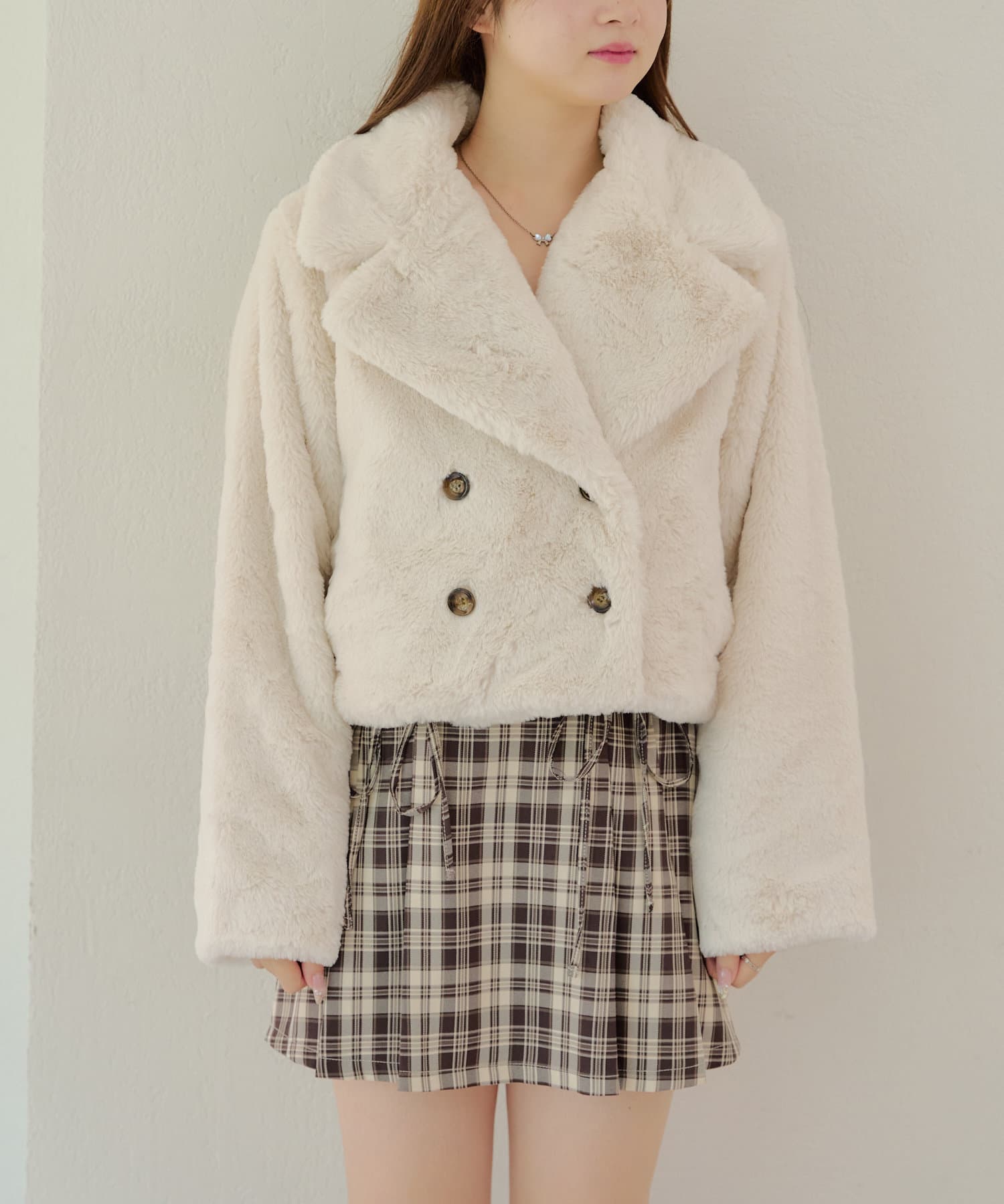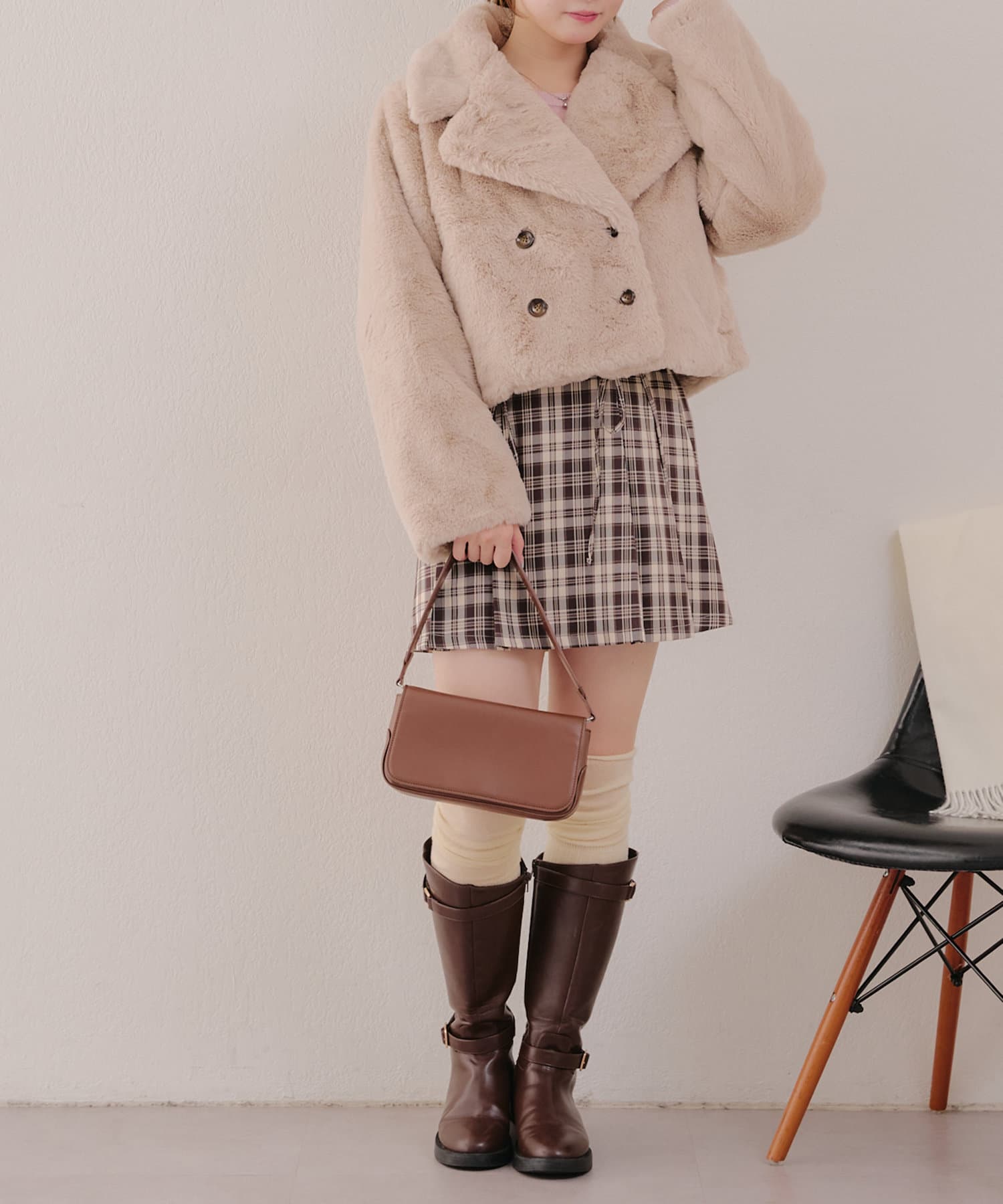ダブルボタンで大人っぽく、ファーが女性らしさも際立ててくれるアイテムです。