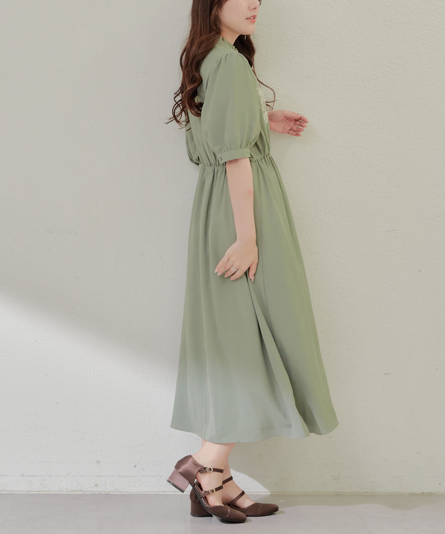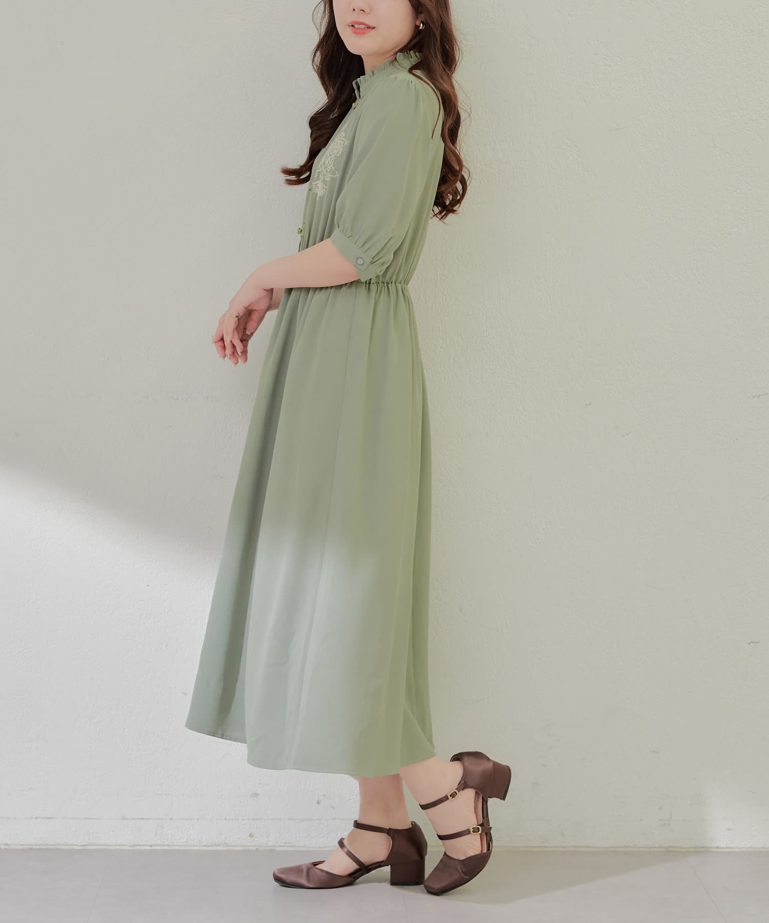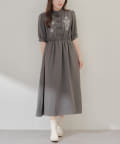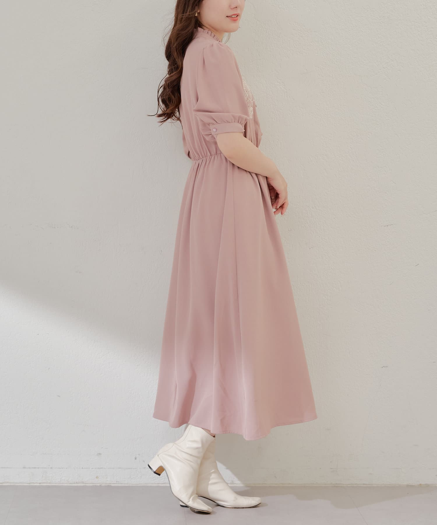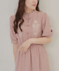 ・胸元の薔薇の刺繡が上品なアクセントに。首元のフリルまでこだわった可愛らしいデザイン