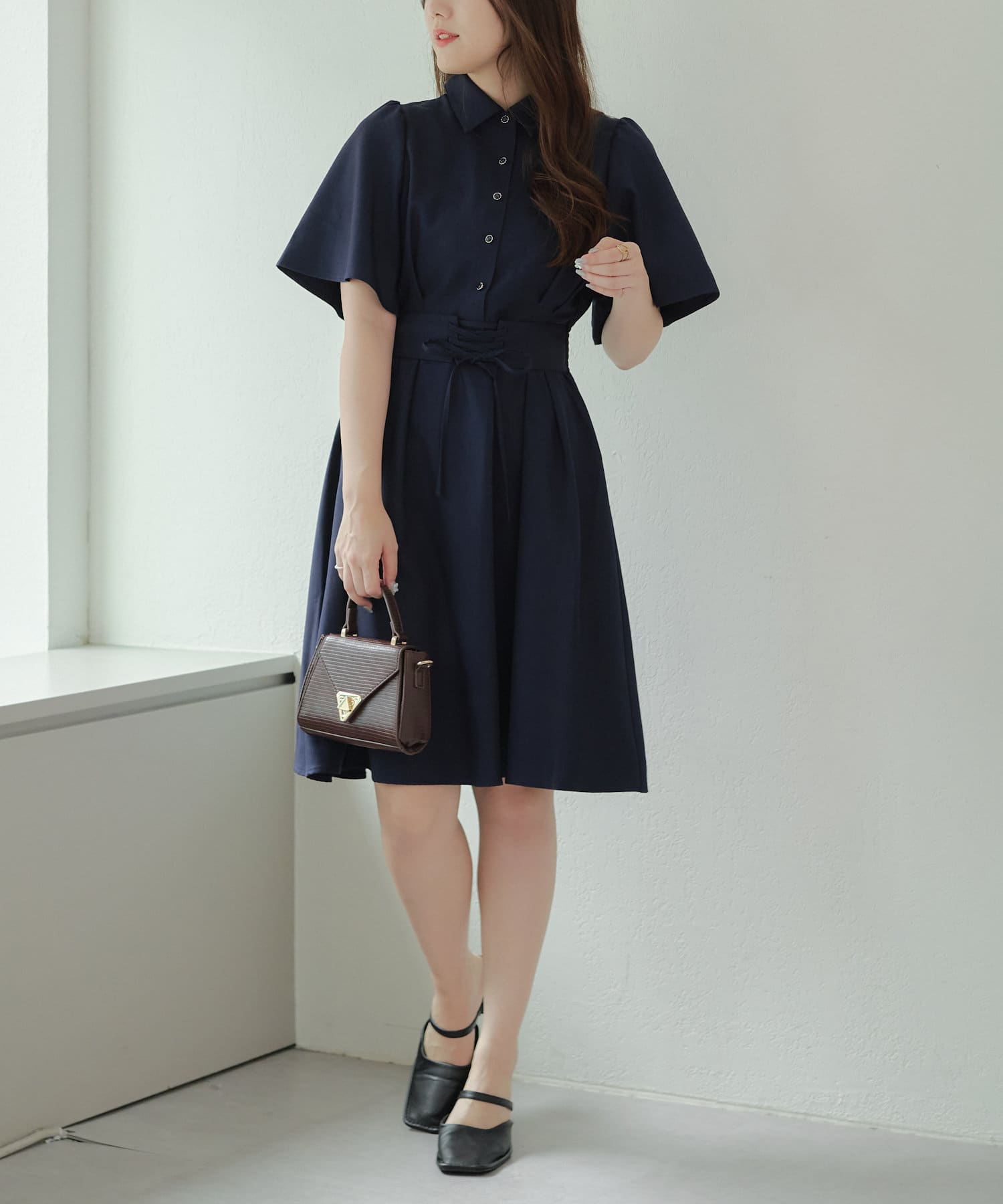 ・ふわっと広がるAラインとウエストベルトで細見えが叶います