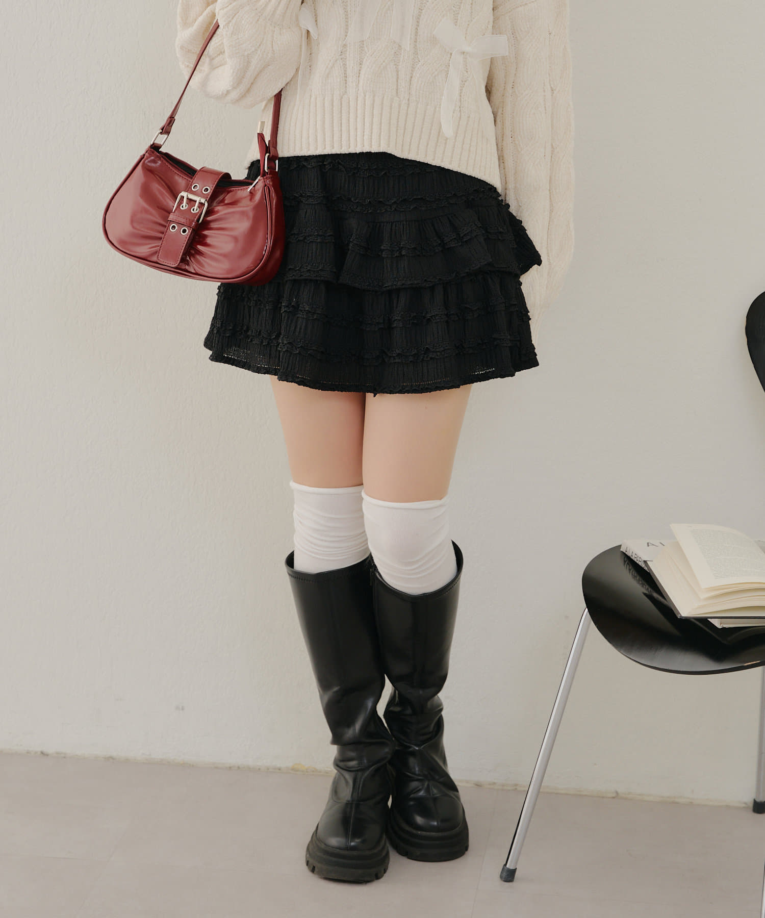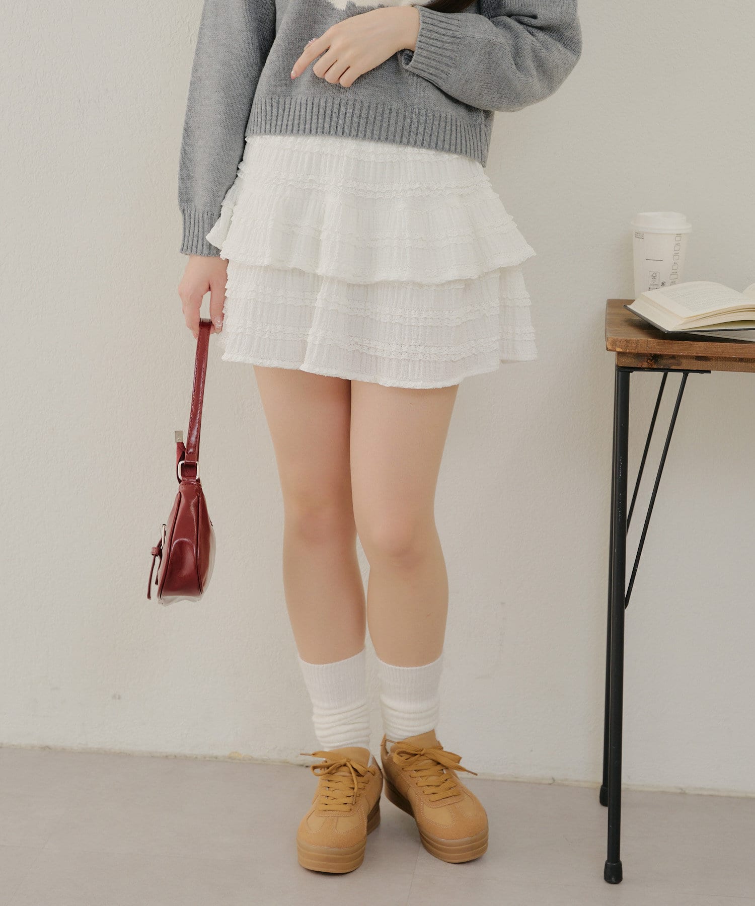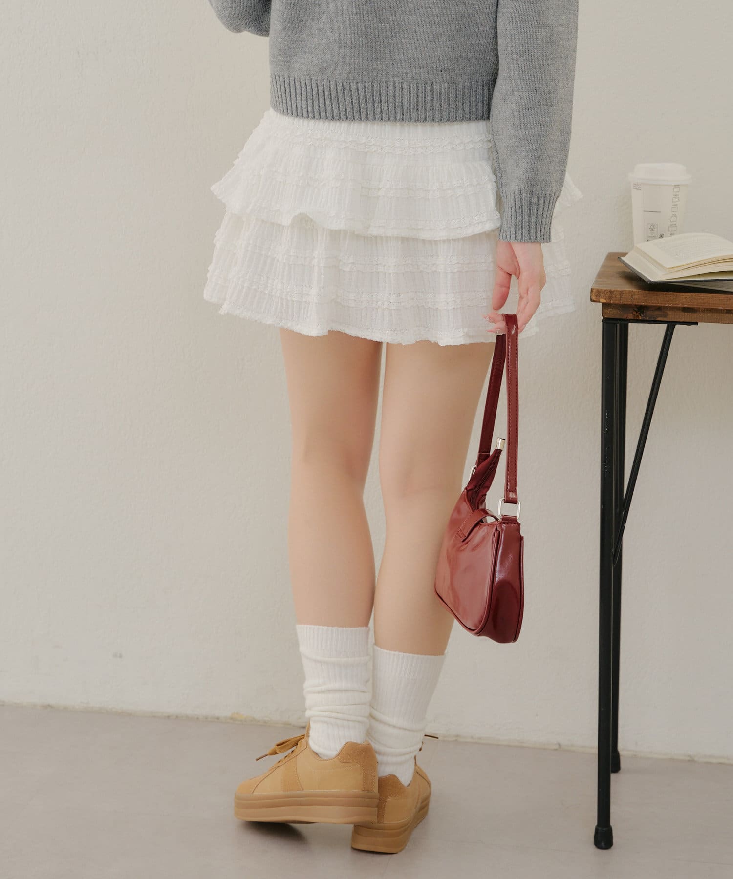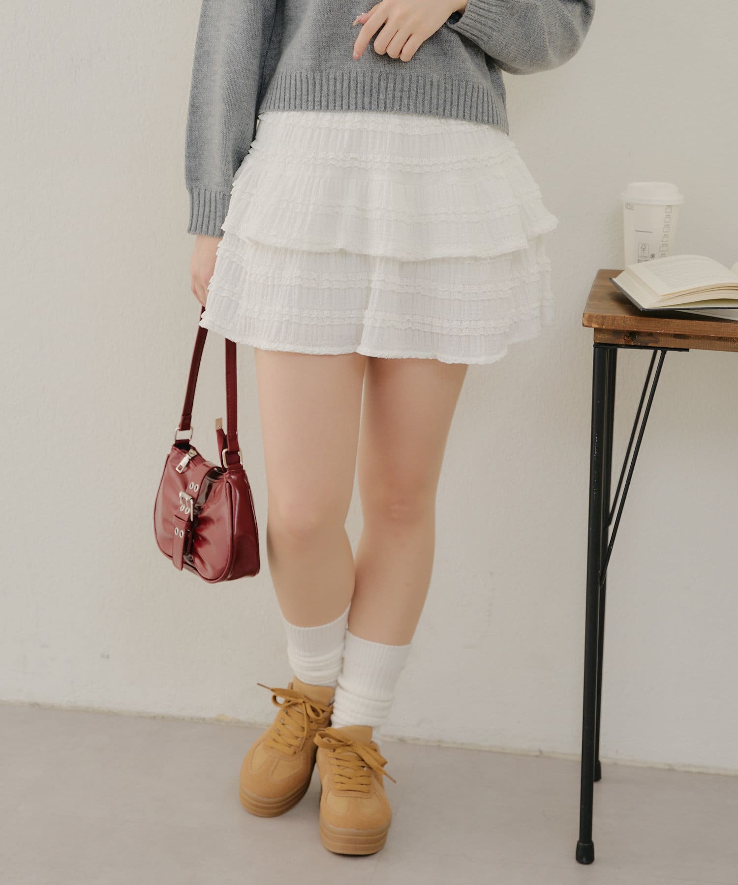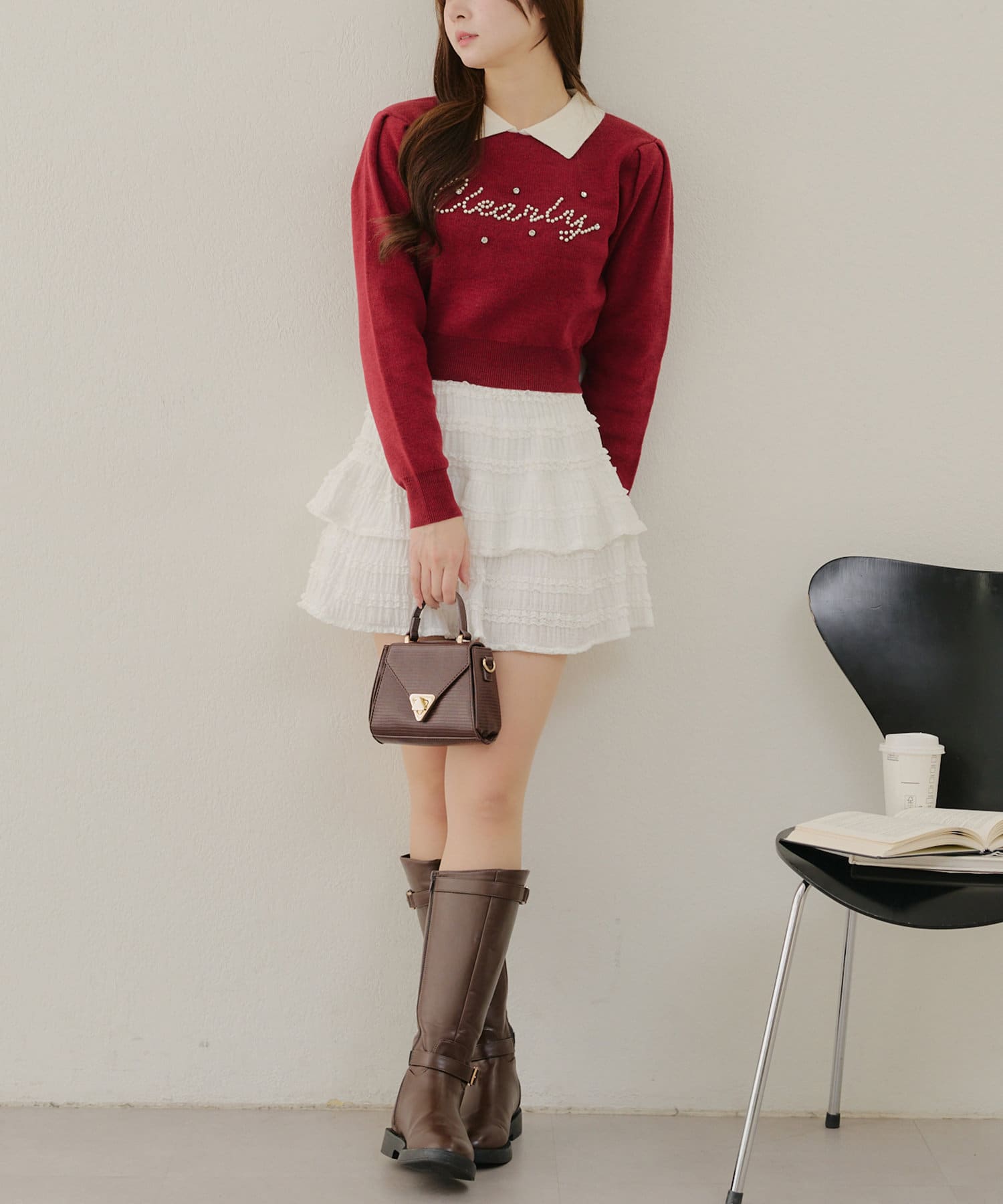 ・ニットと合わせた甘めなコーデがおすすめ♪