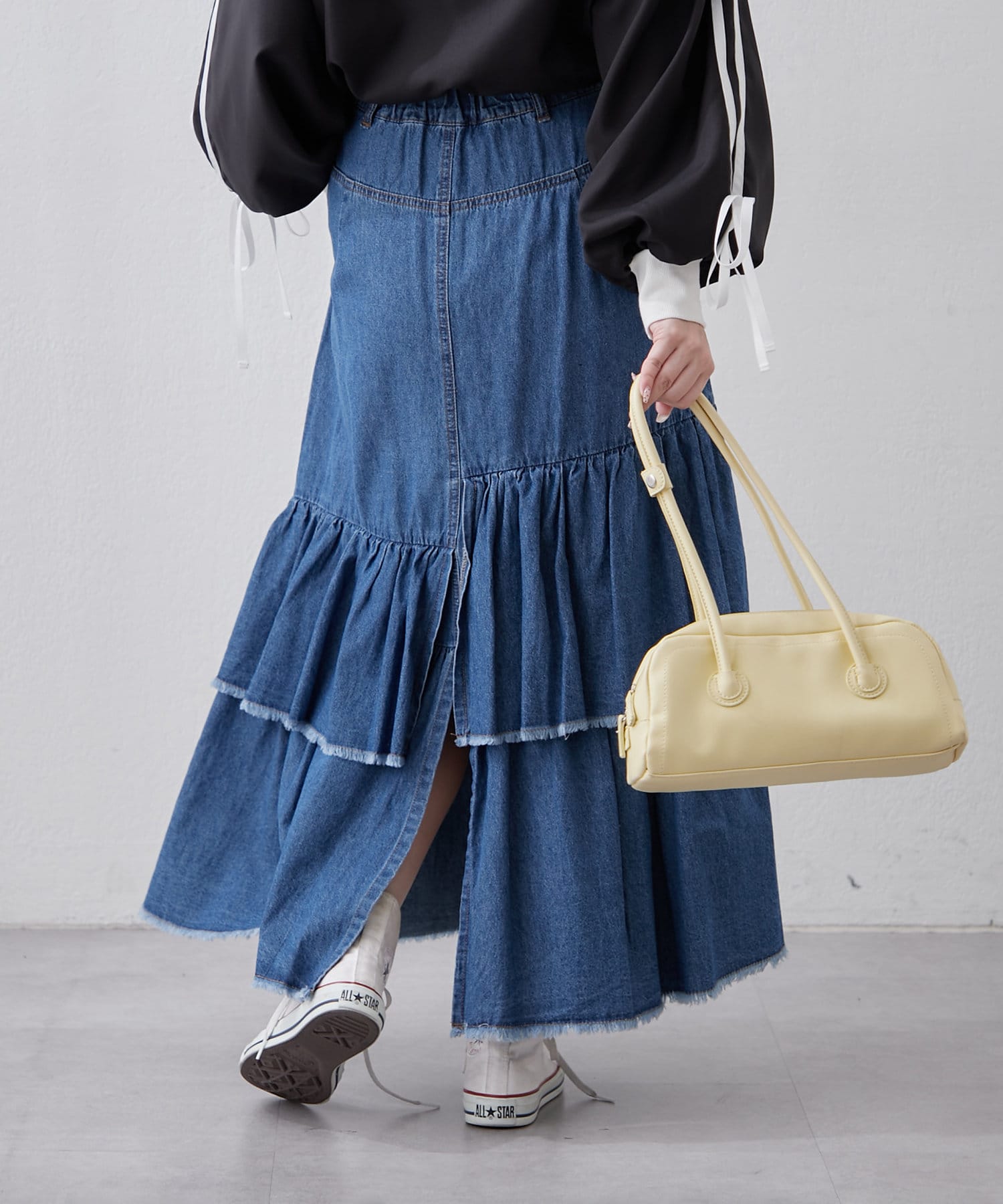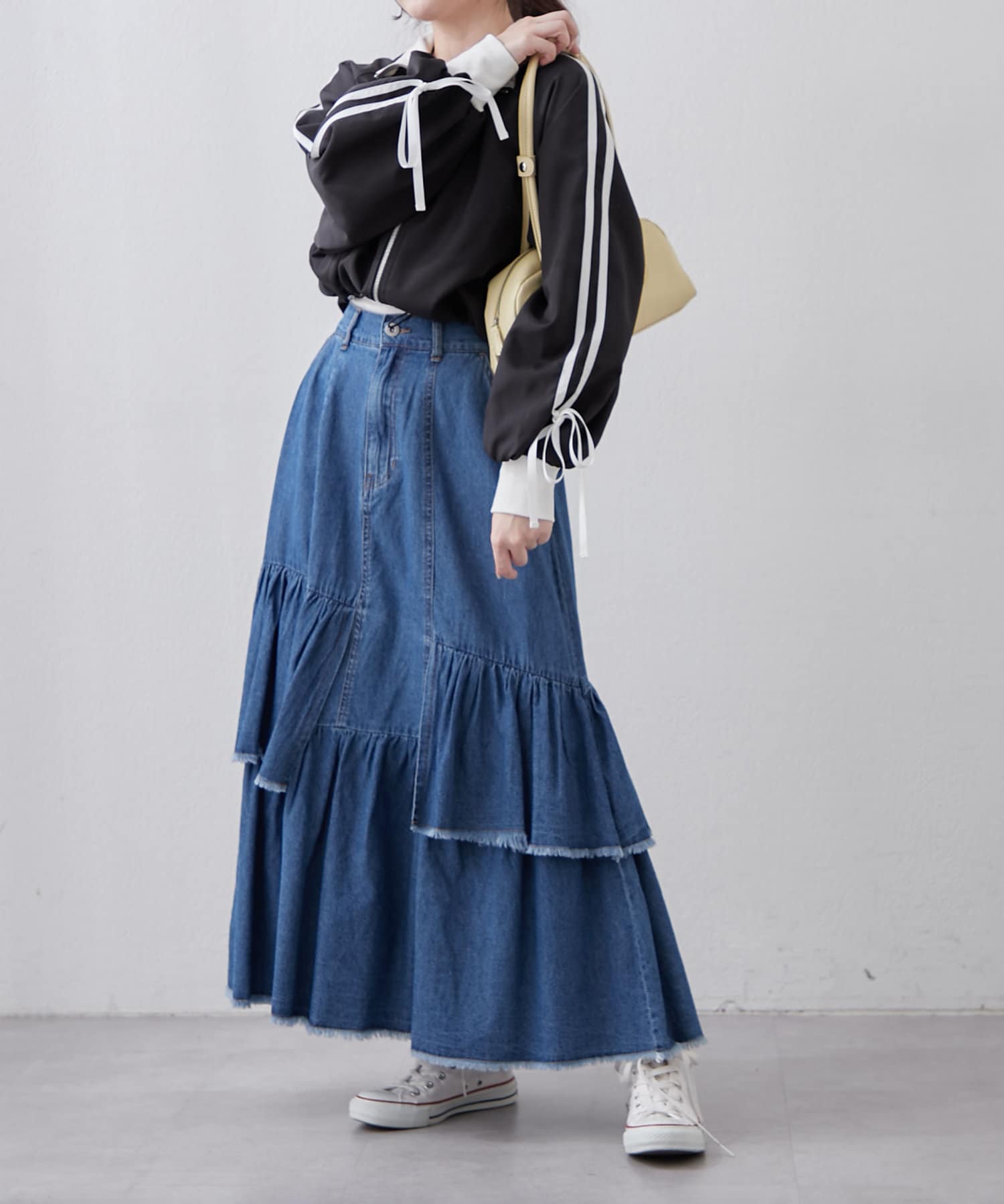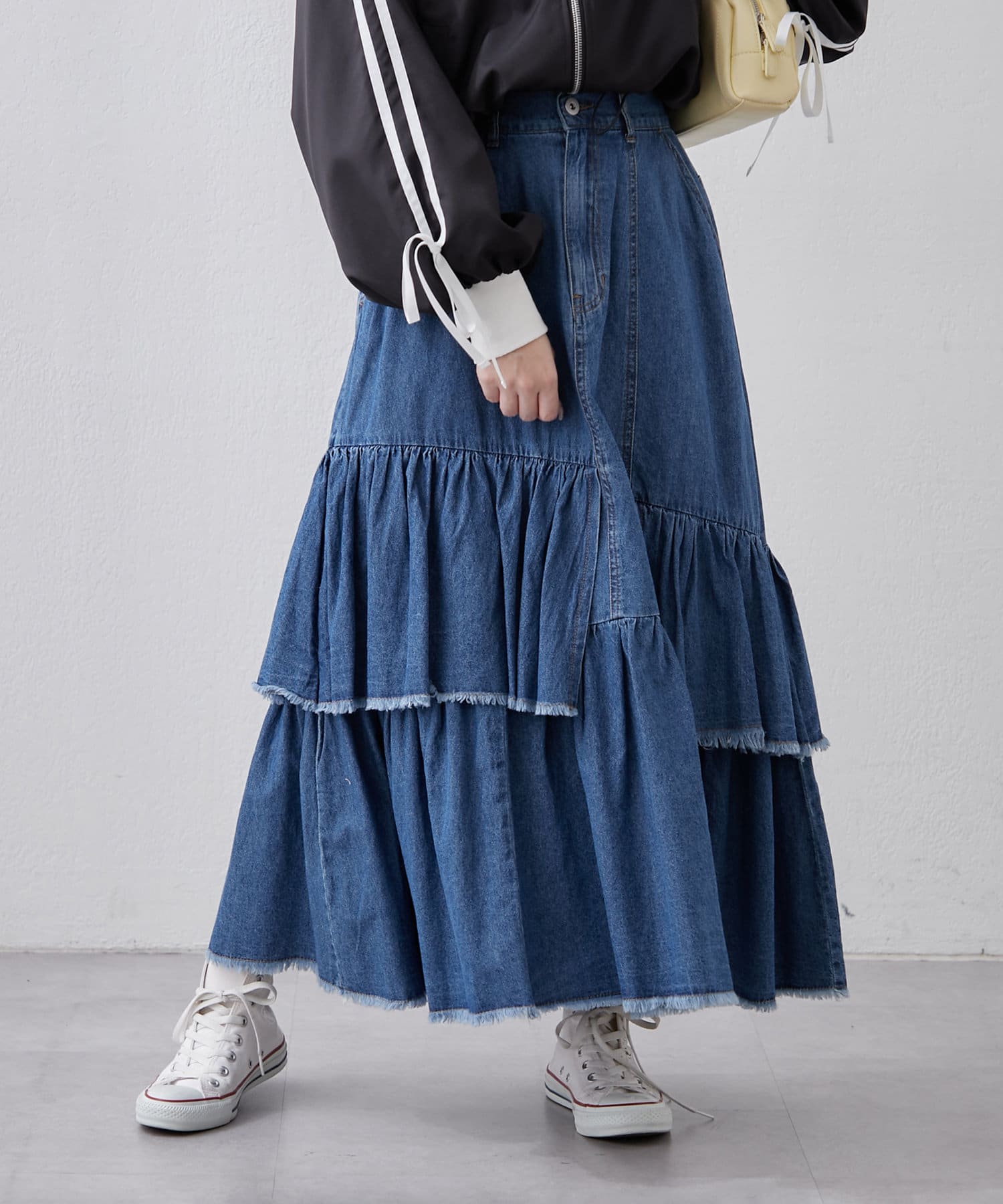 ・アシンメトリーなデザインがコーデの主役になるデニムスカート