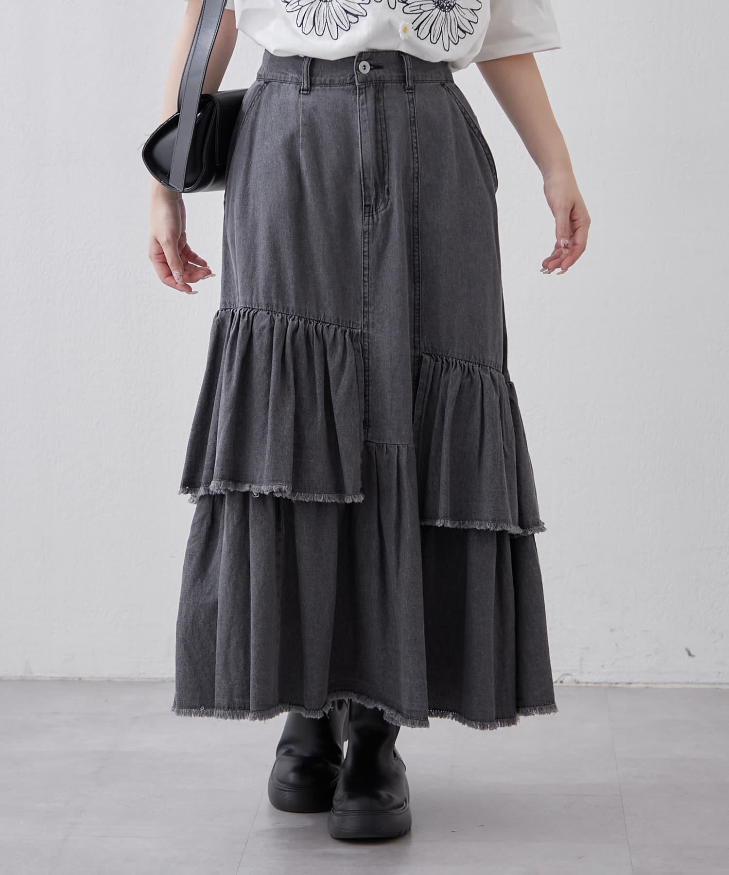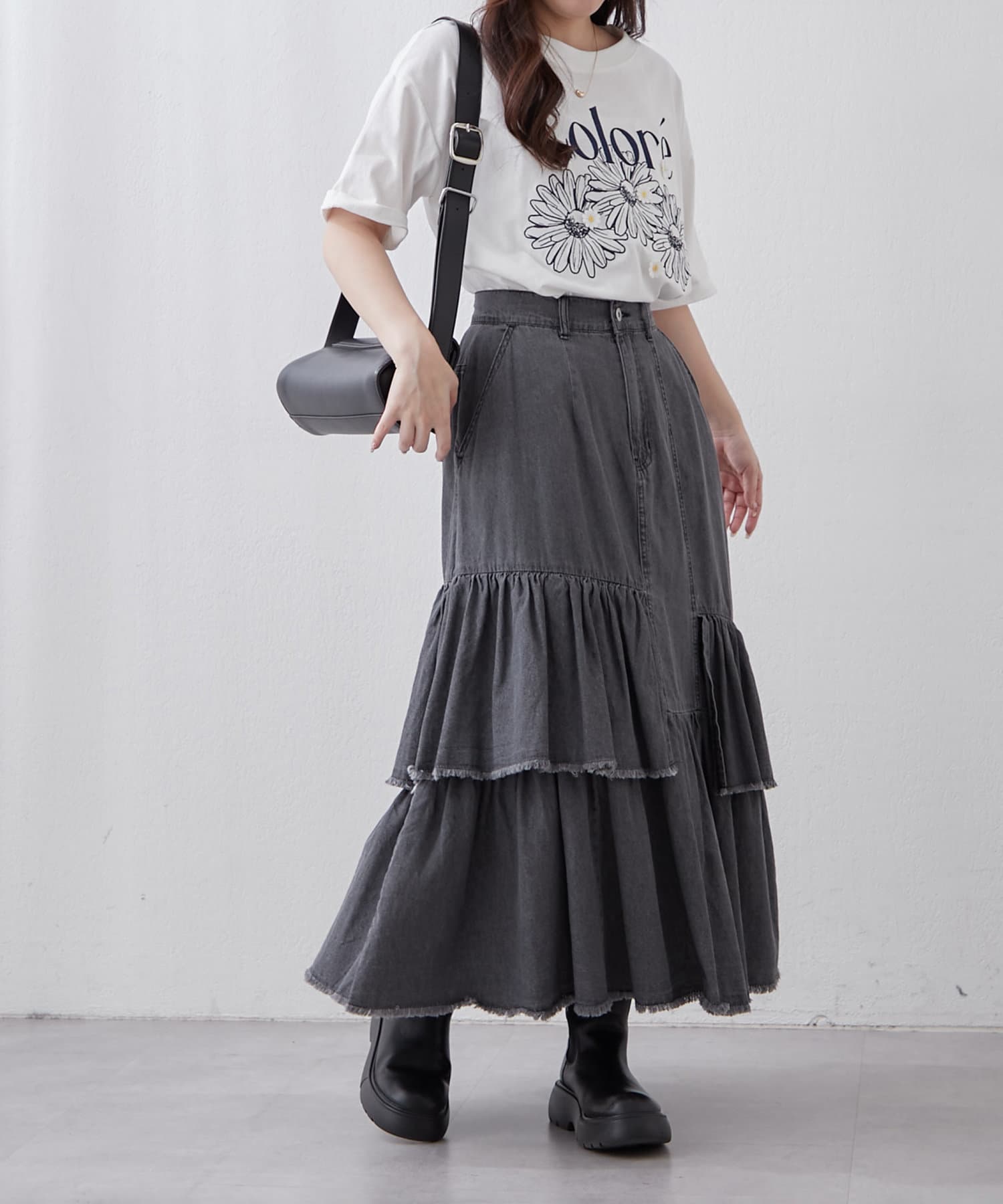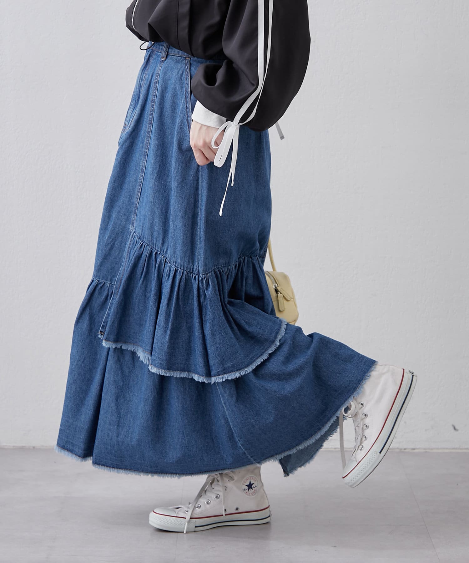 ・アシンメトリーなデザインがコーデの主役になるデニムスカート