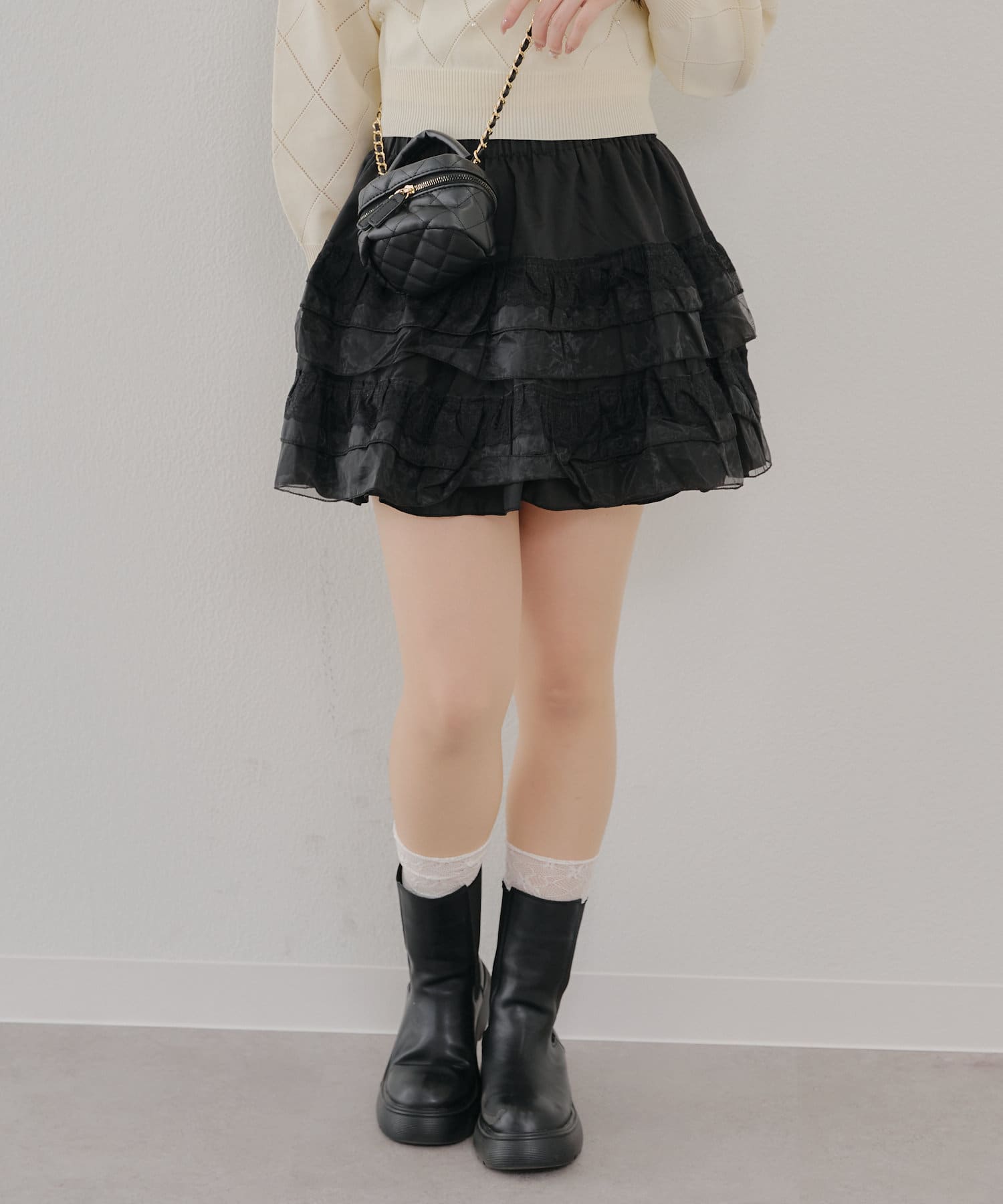 【春の新作】【OUTLET限定】レースティアードミニスカート