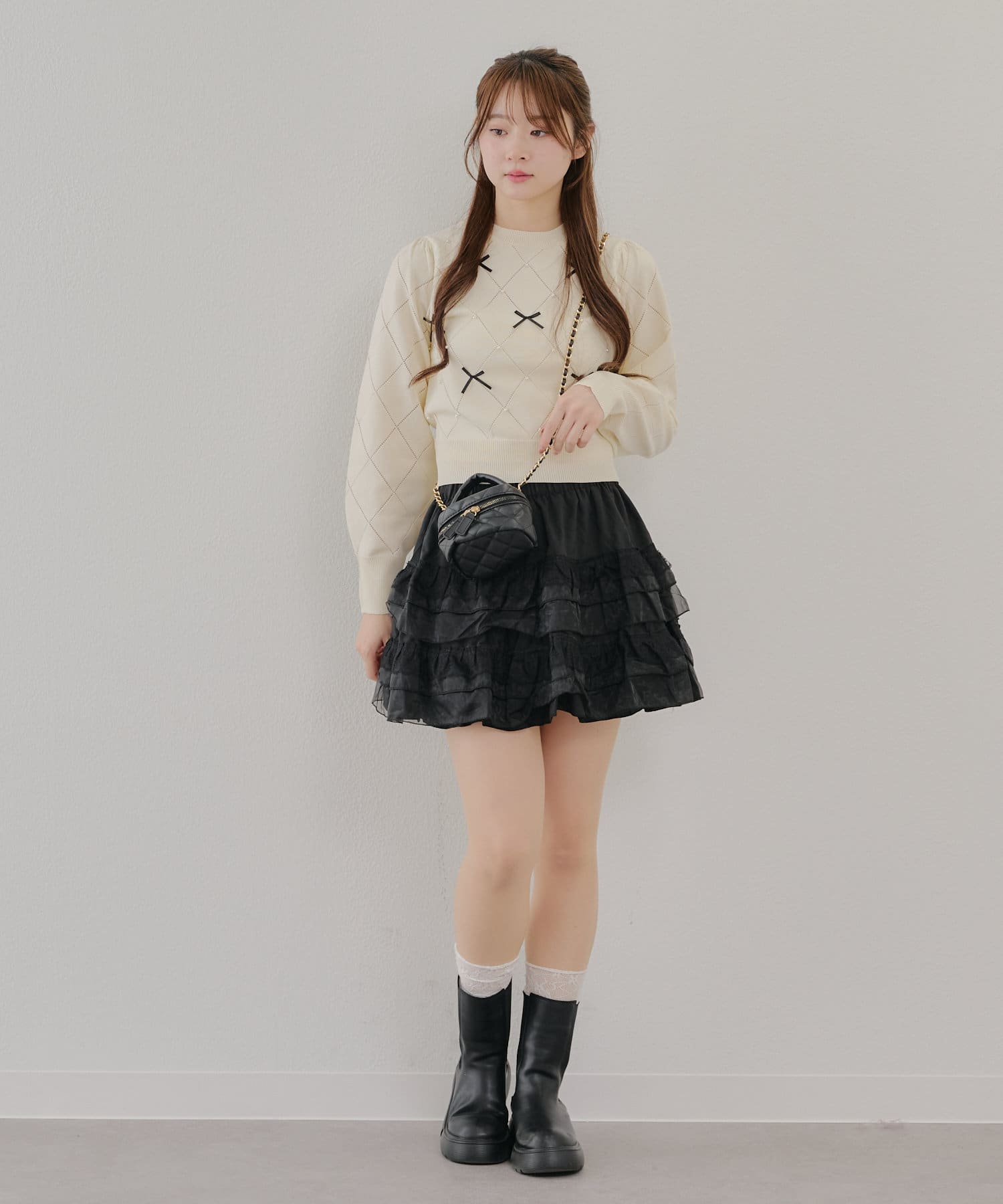 ・ミニスカートのデザインが引き立つシンプルなトップスと相性抜群
