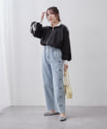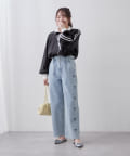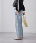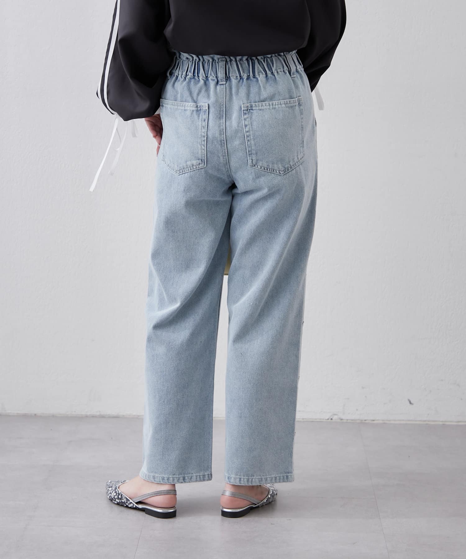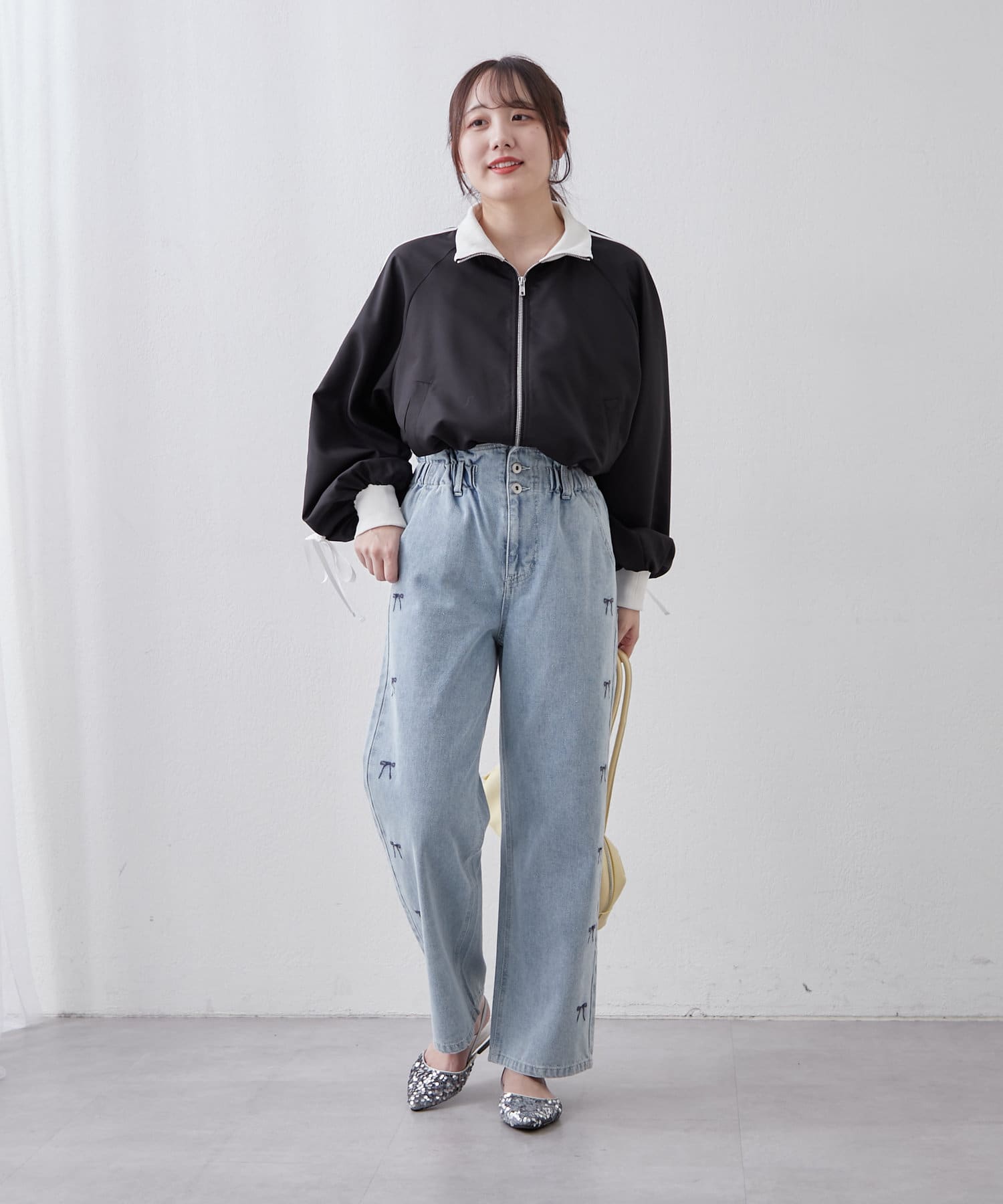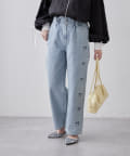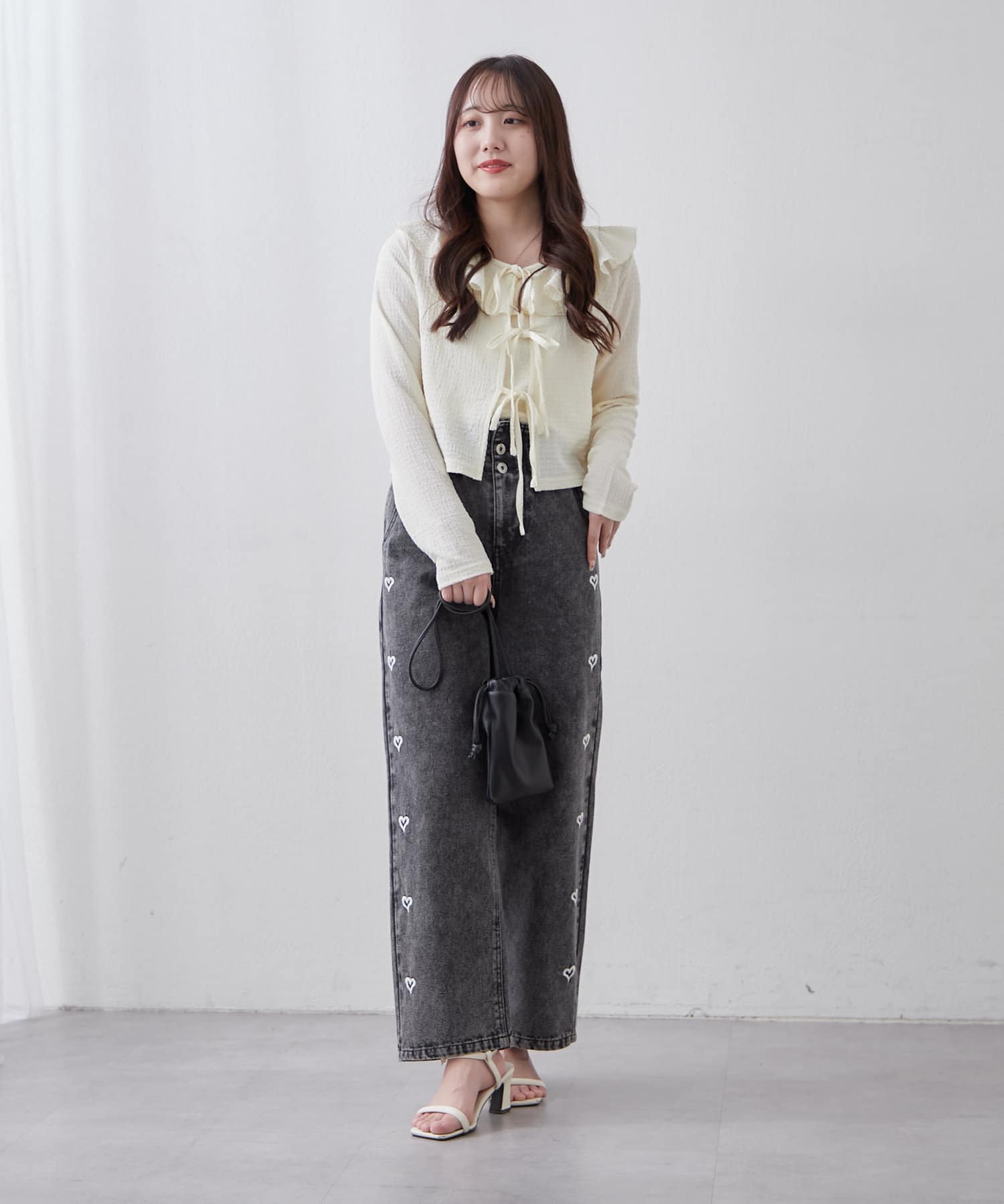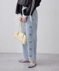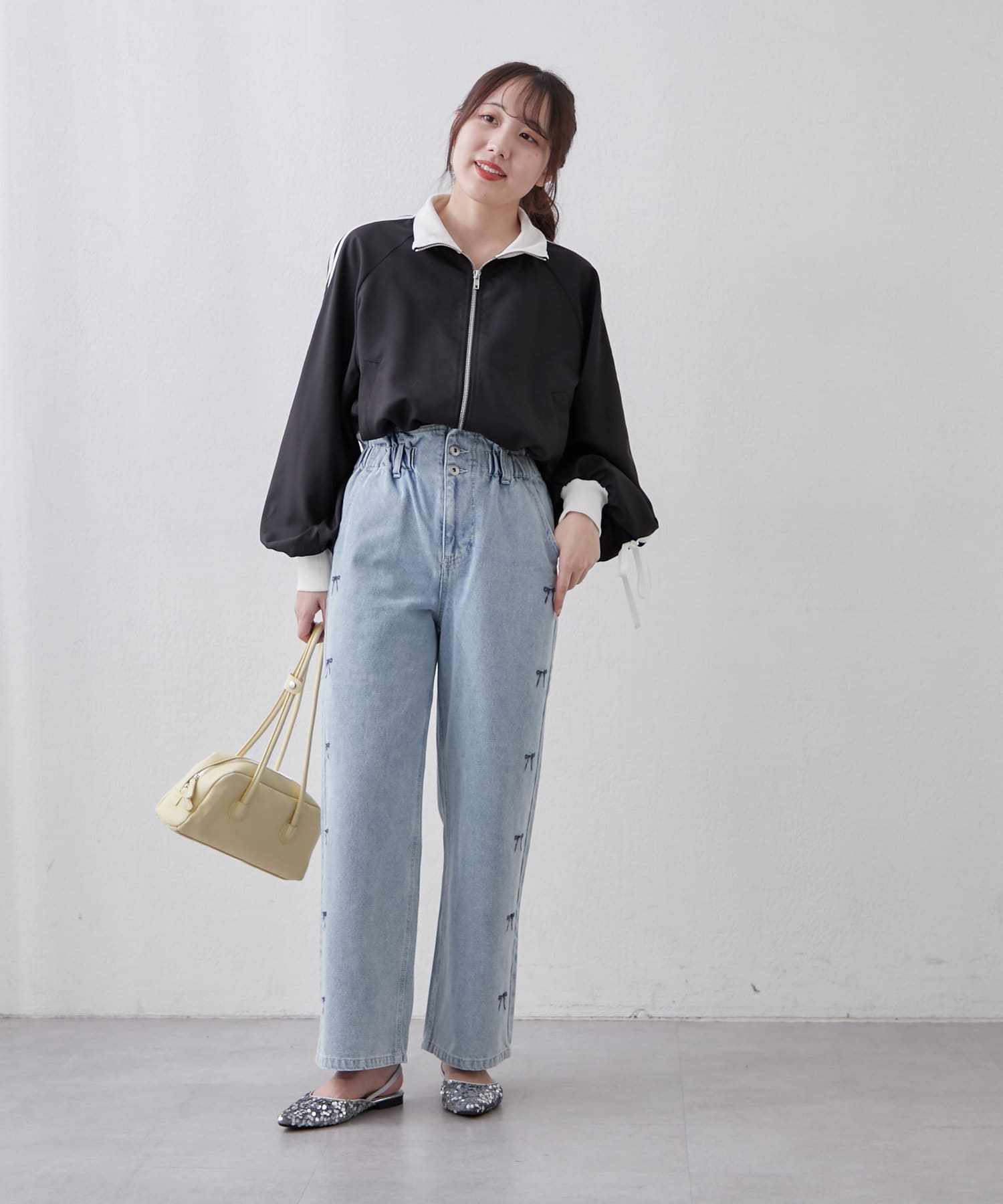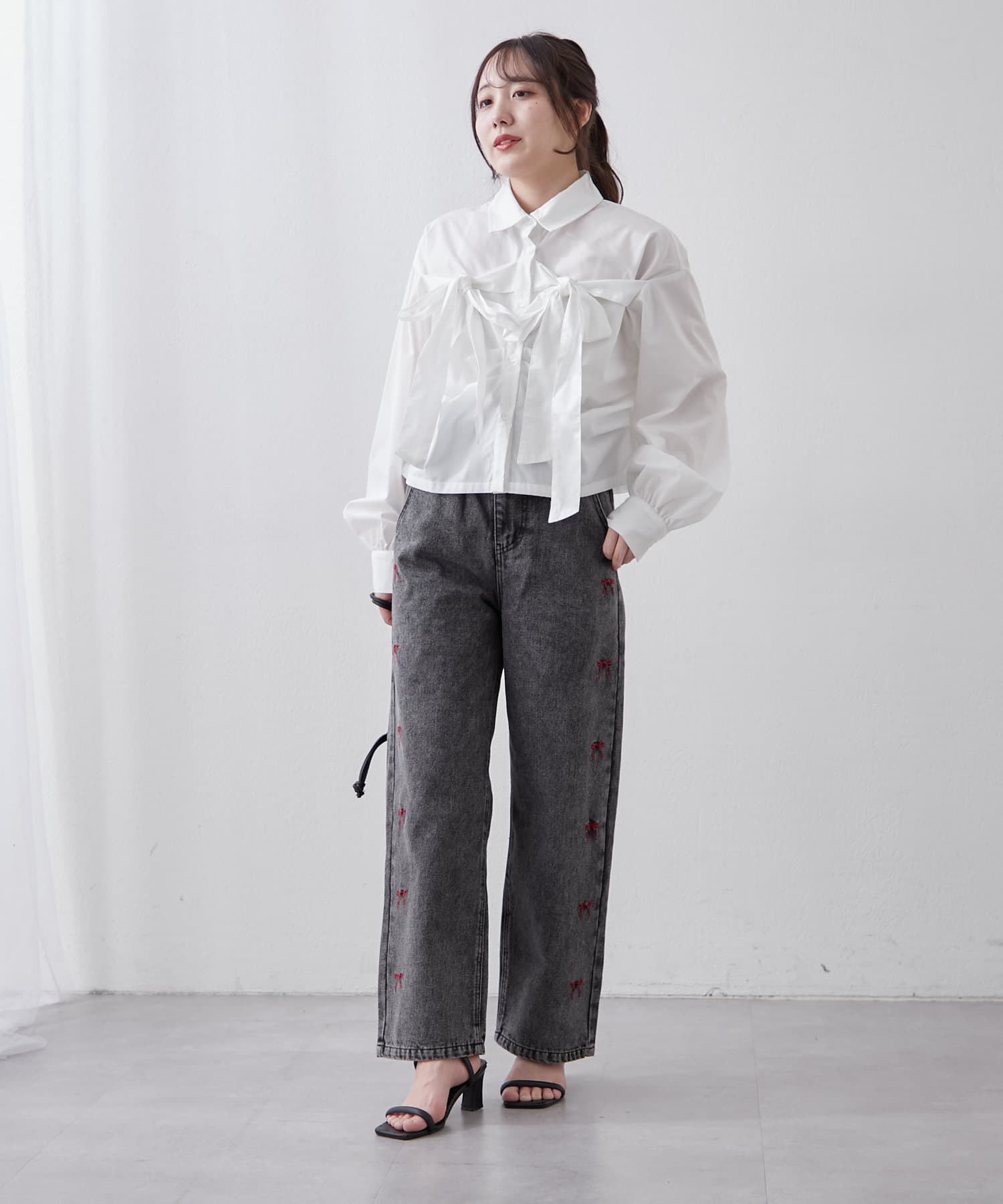 サイドにハートやリボンの刺繍が施されたデザインデニム。