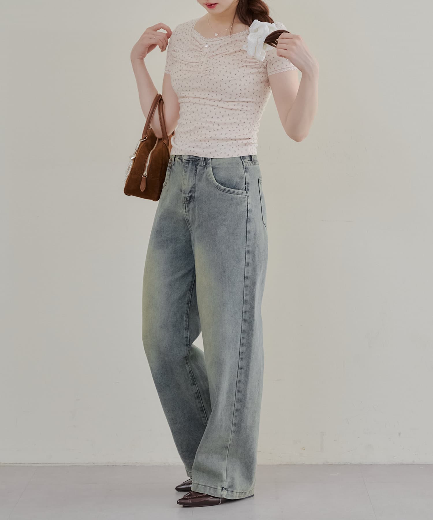 ・ヒップ周りやウエストは優しくフィットし、絶妙なルーズシルエットに仕上げたデニムパンツ。