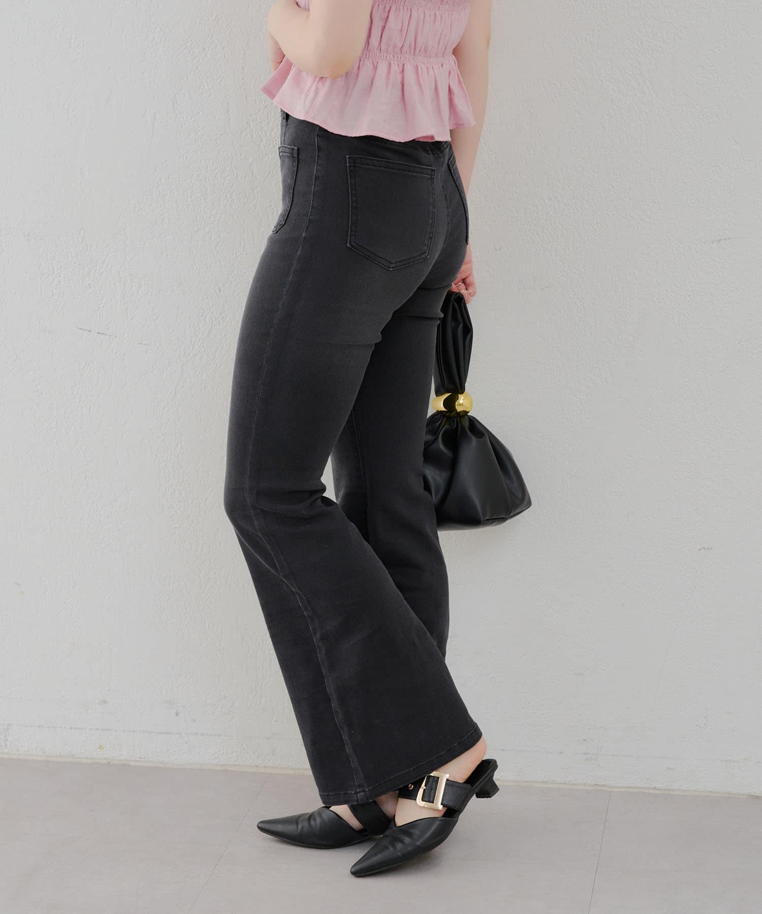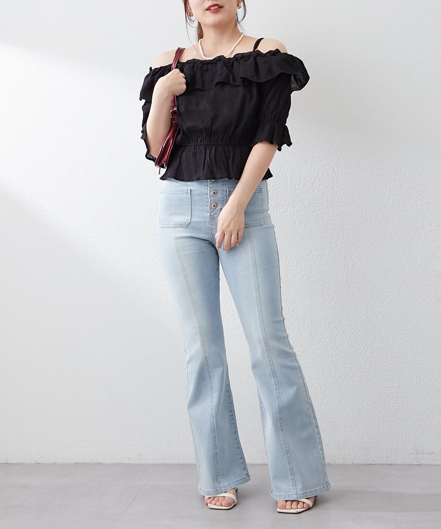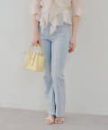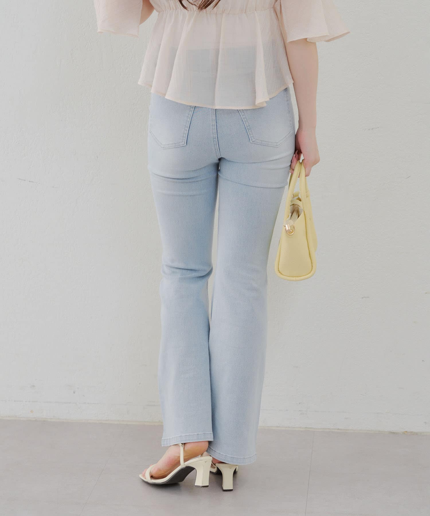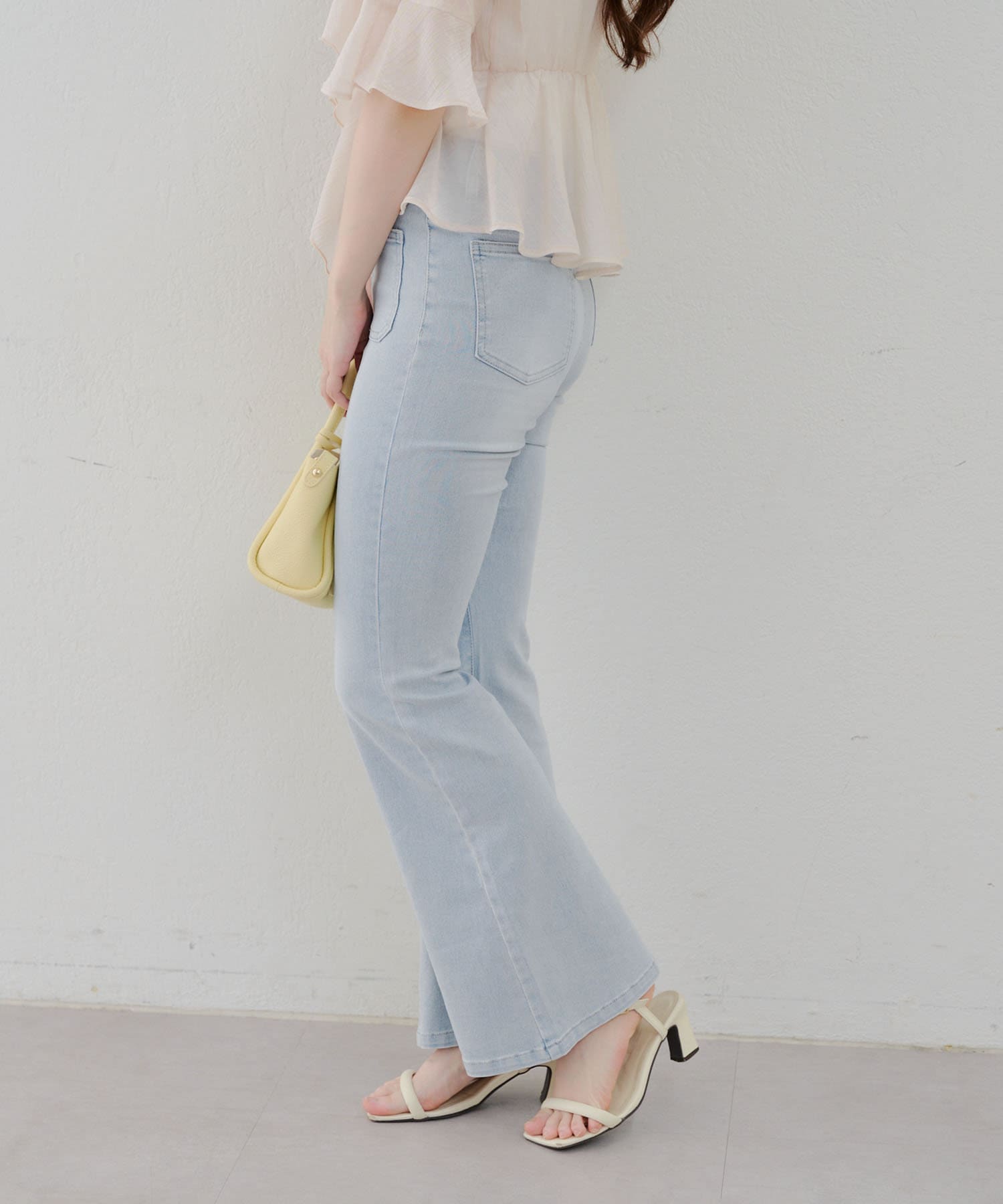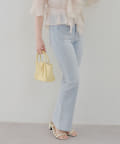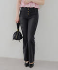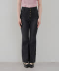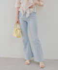 ・脚を長く見せる、ハイウエストデニムパンツ。さらにフレアラインで美脚見え!