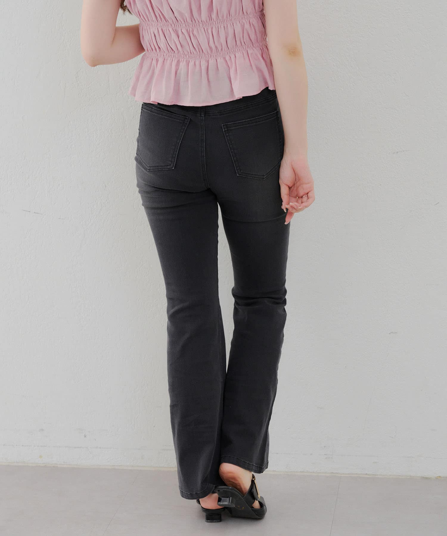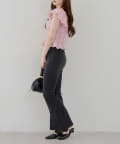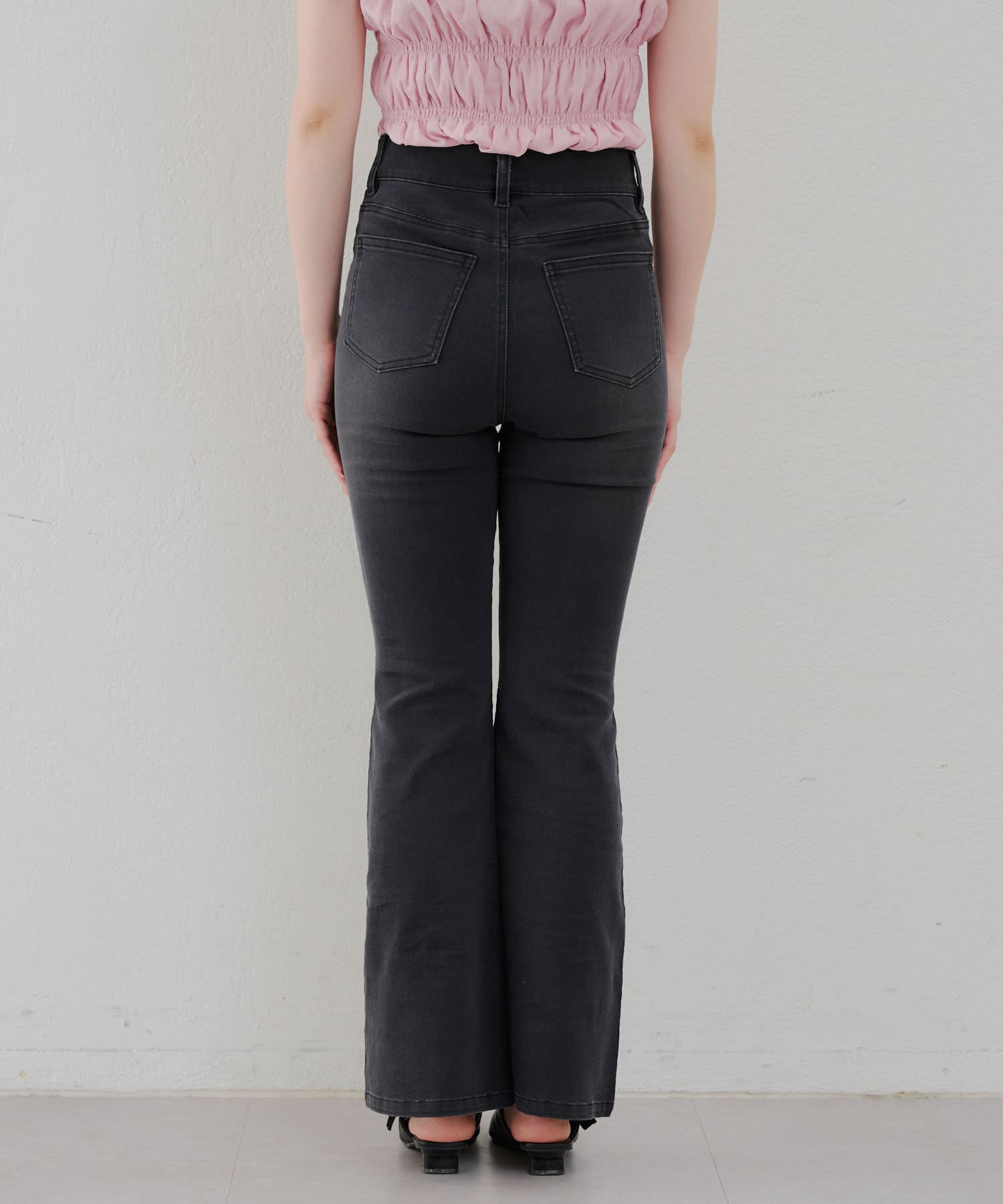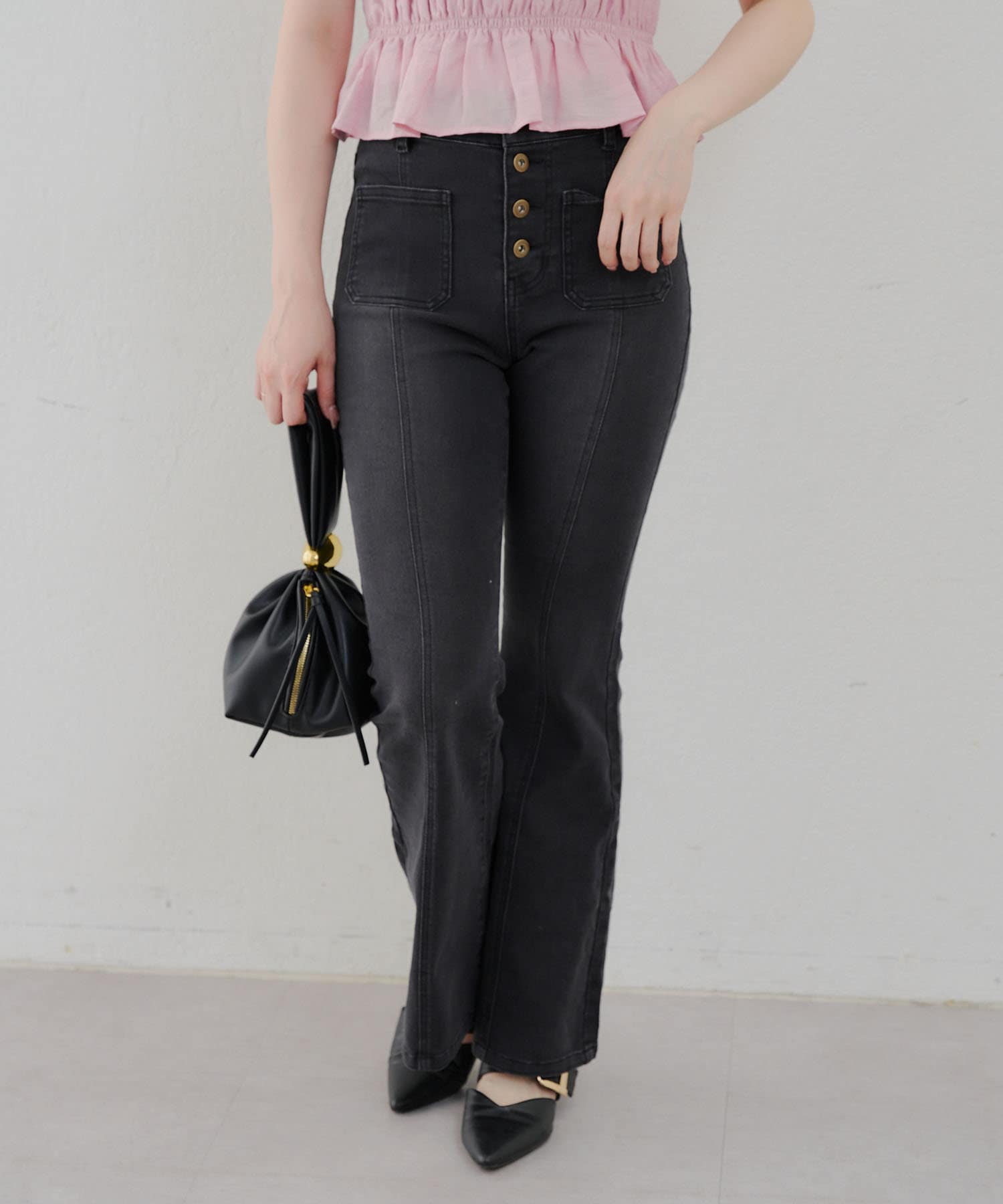 ・脚を長く見せる、ハイウエストデニムパンツ。さらにフレアラインで美脚見え!