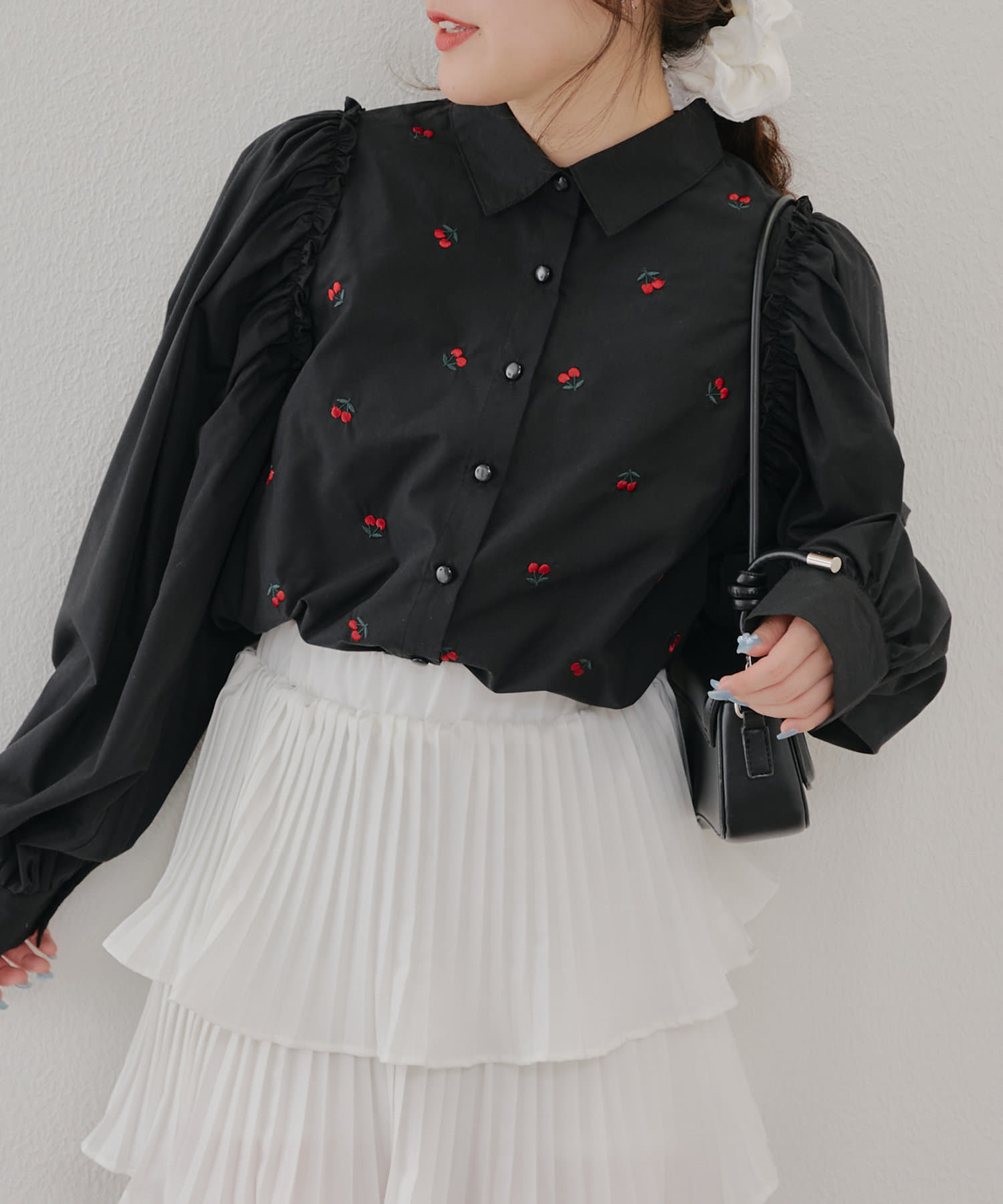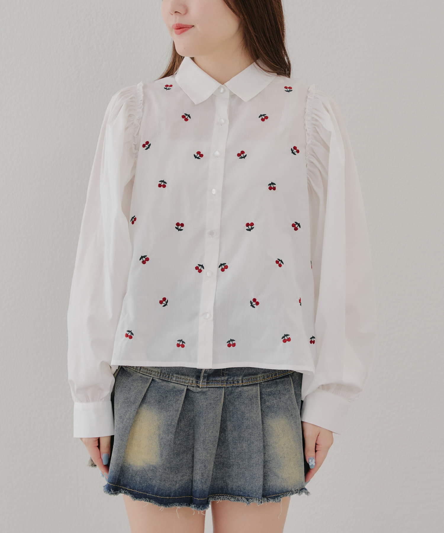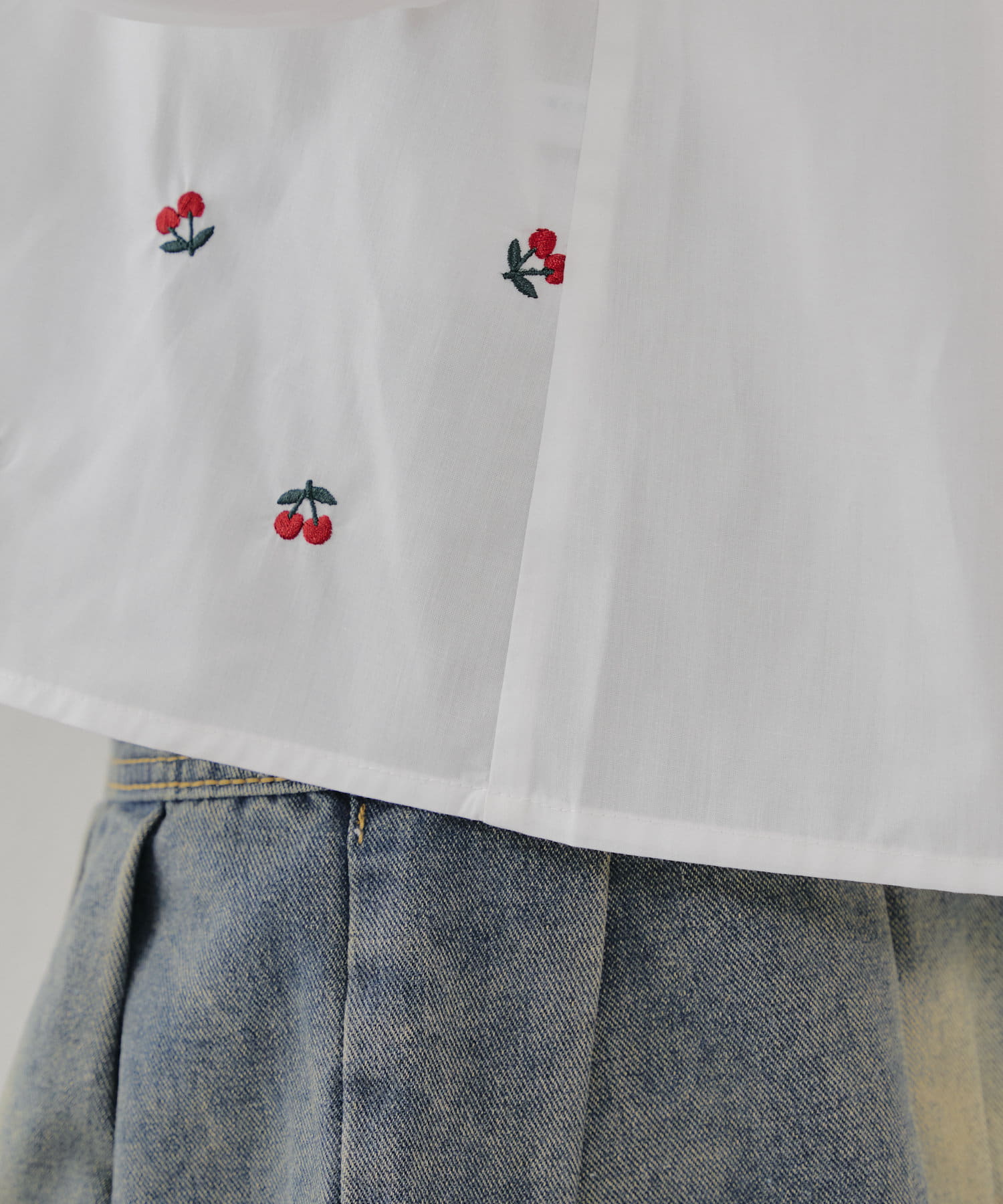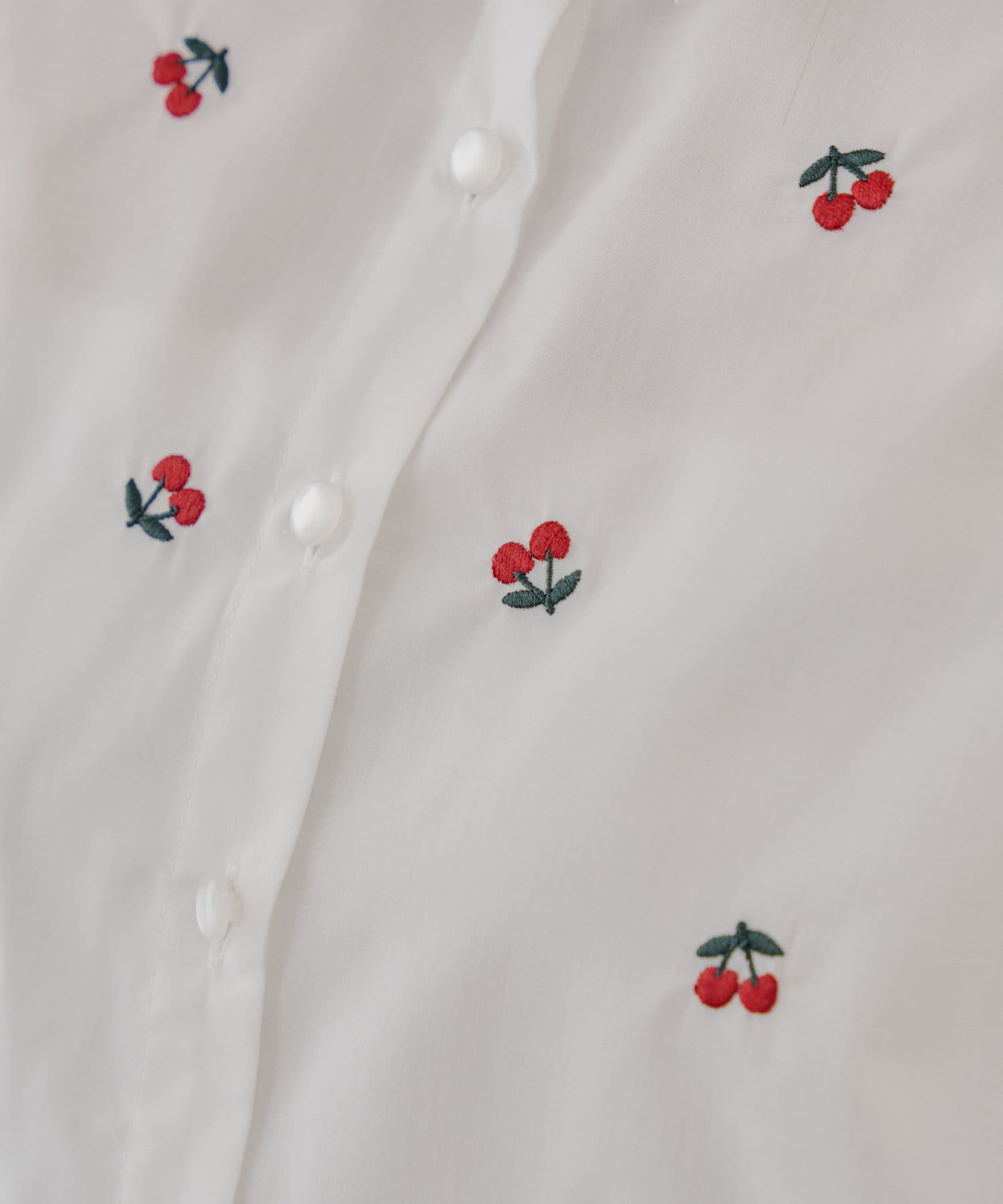 ・チェリーモチーフの刺繍が可愛いブラウス。