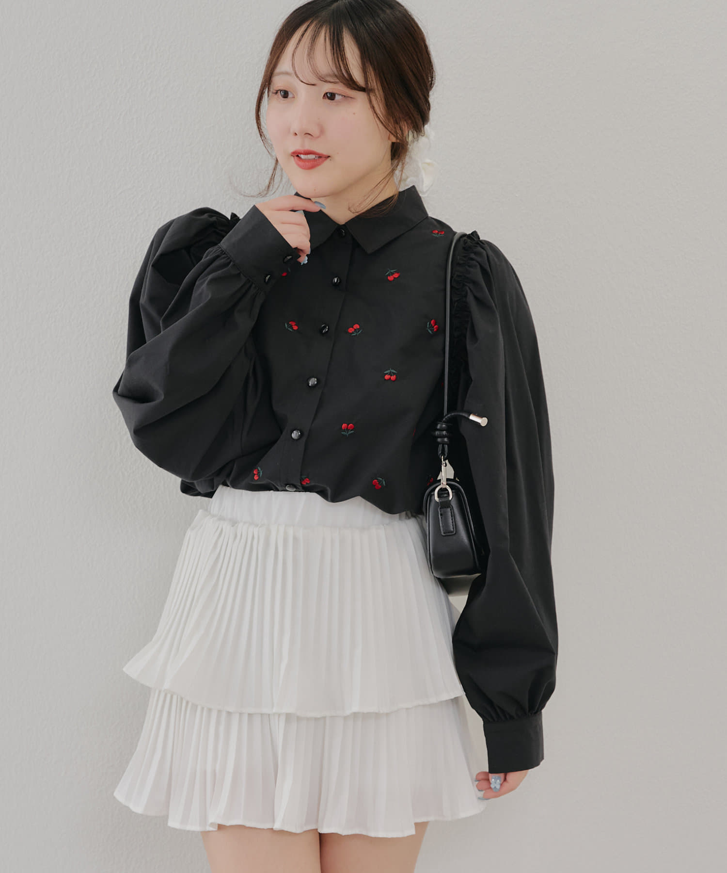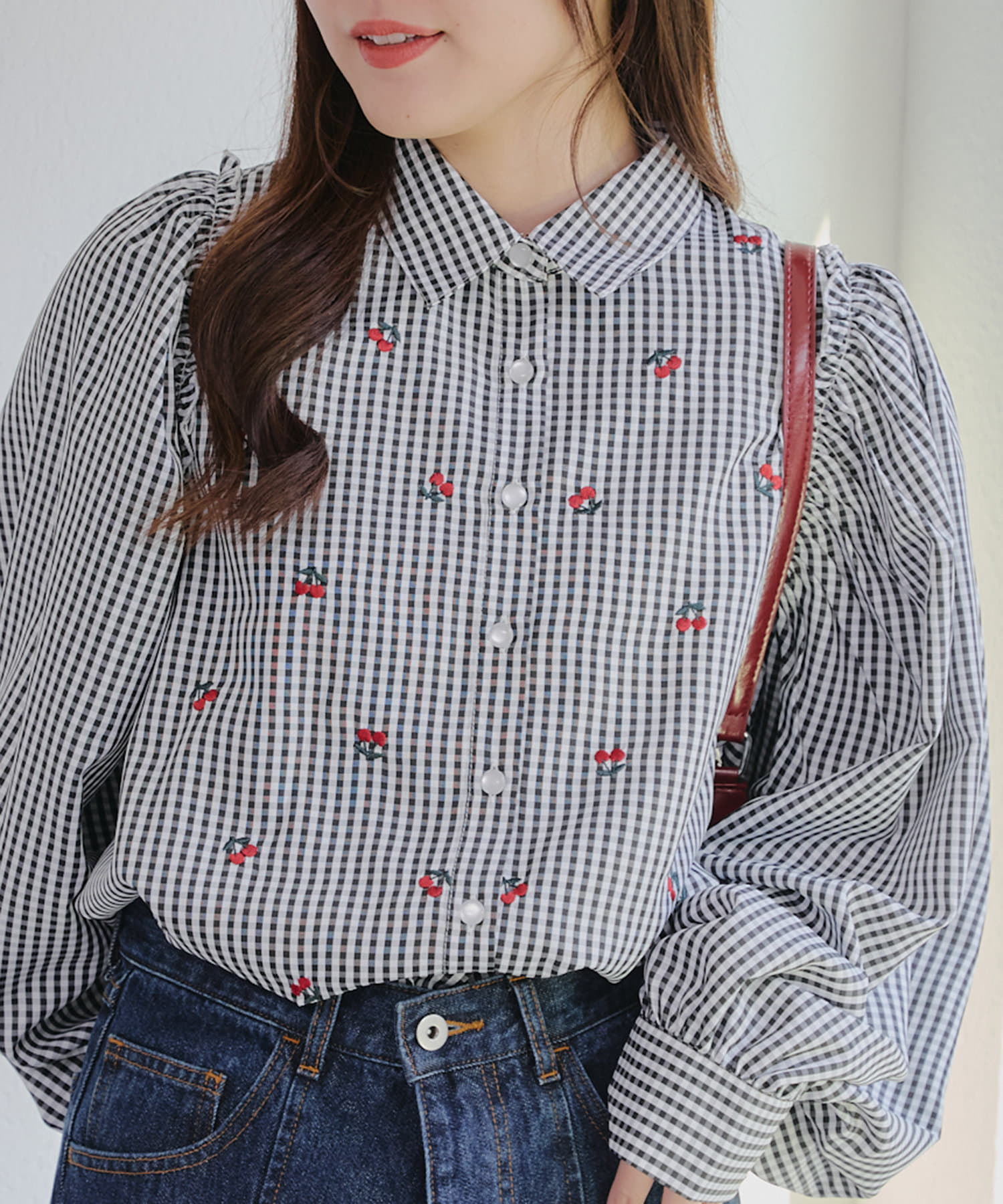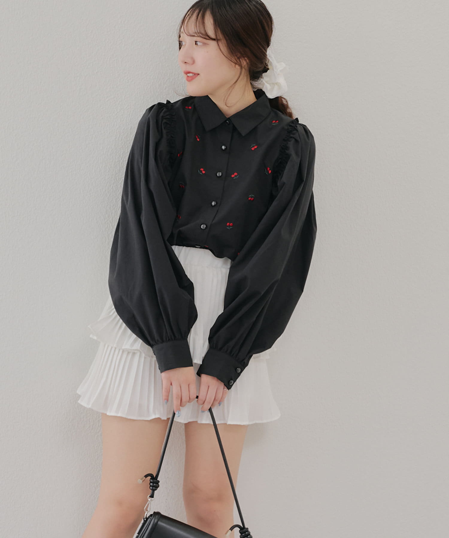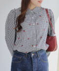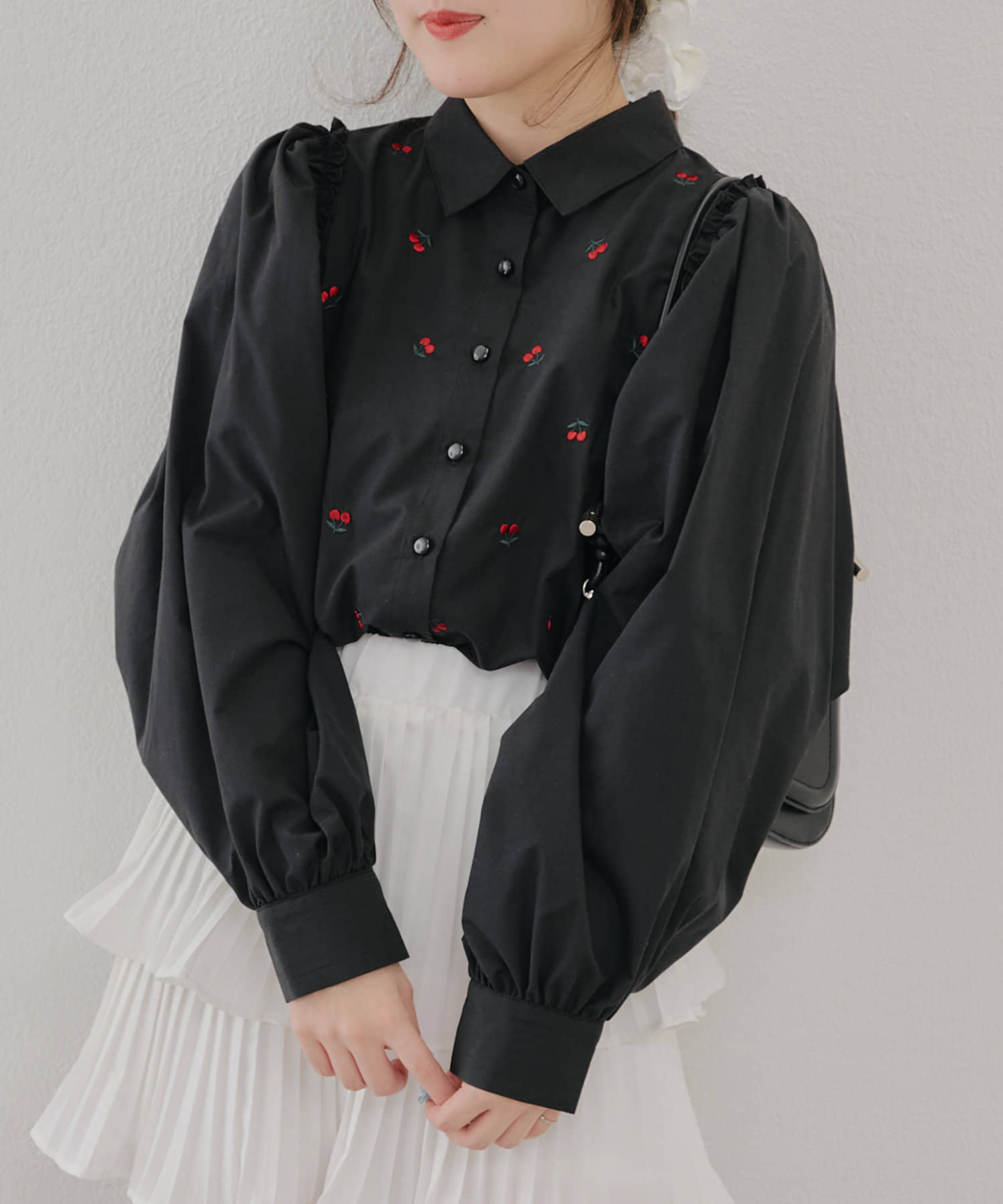 ・チェリーモチーフの刺繍が可愛いブラウス。
