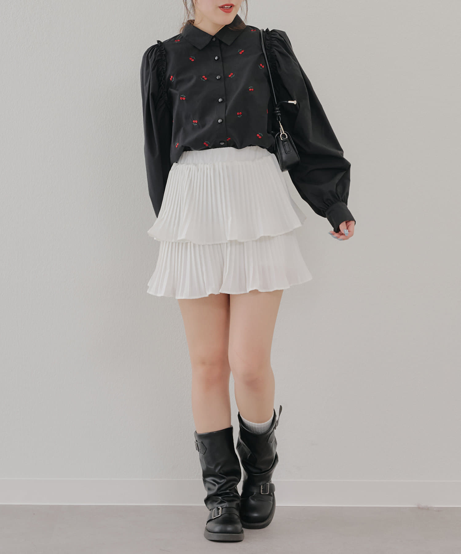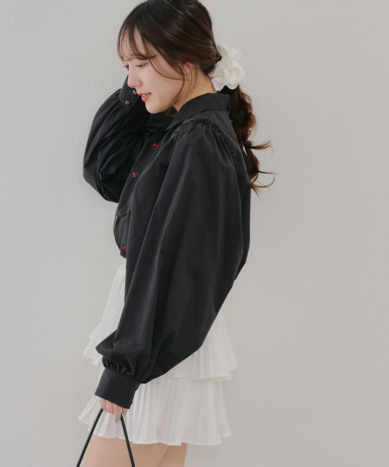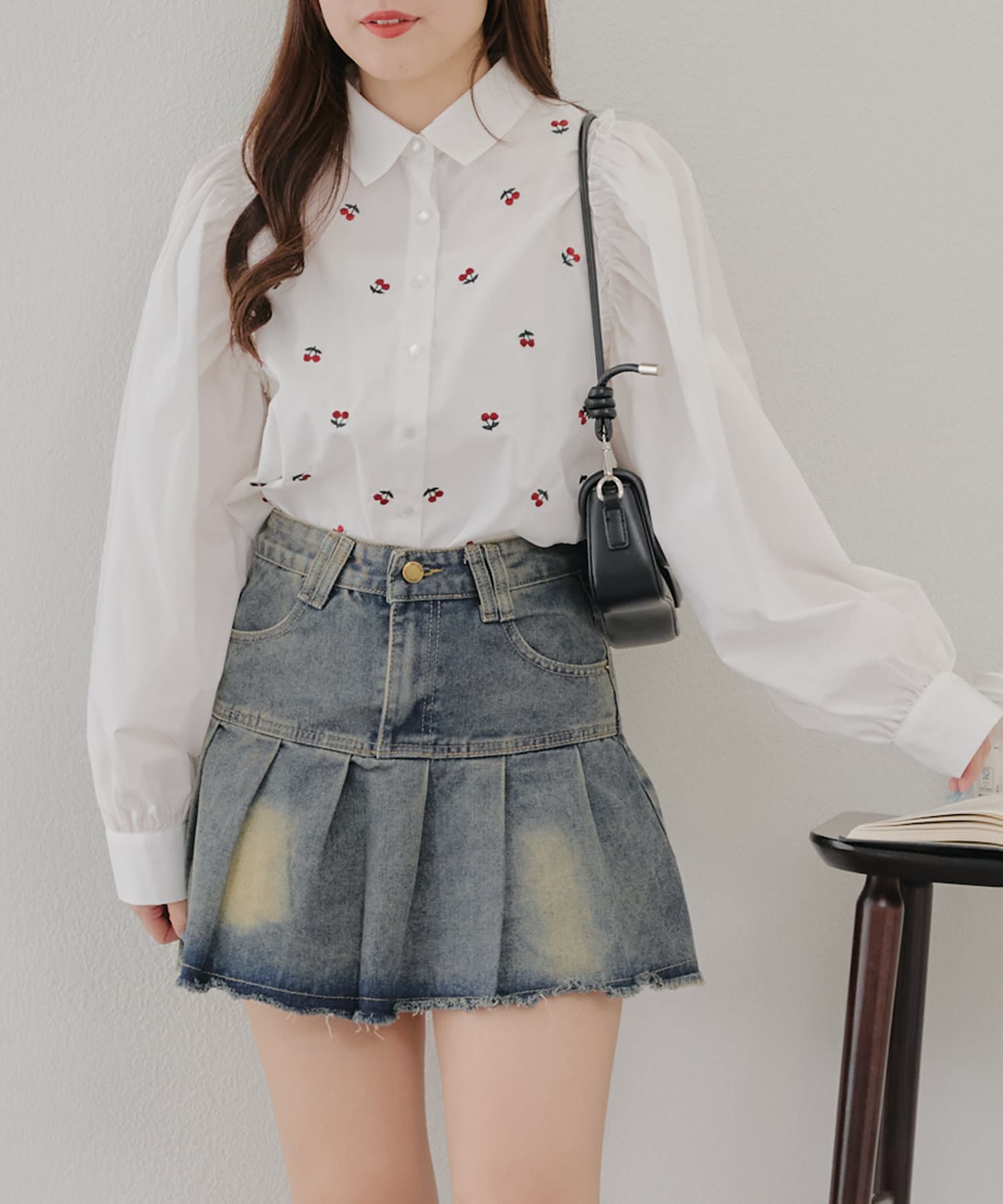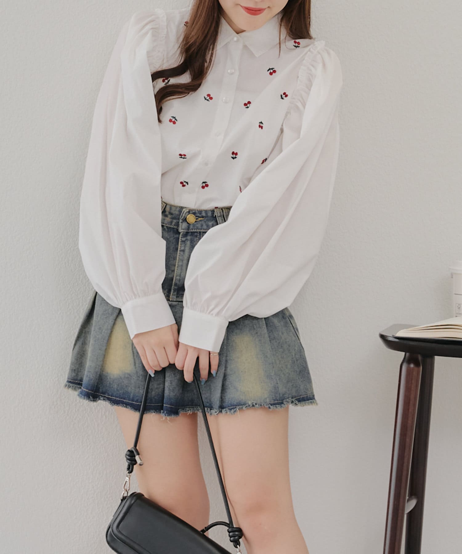 ・チェリーモチーフの刺繍が可愛いブラウス。