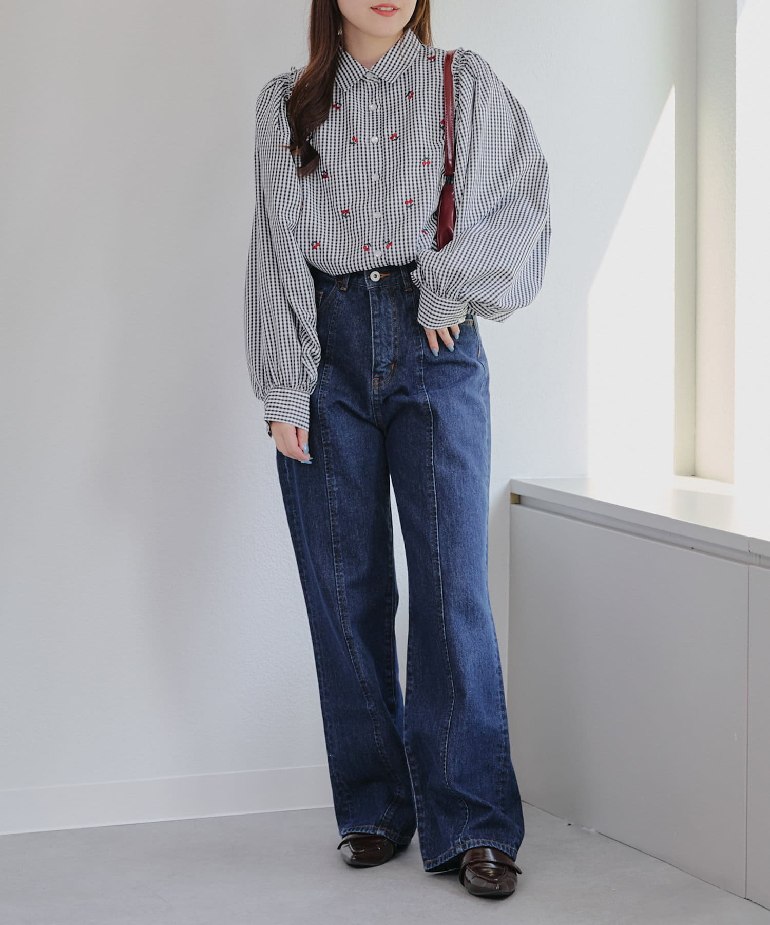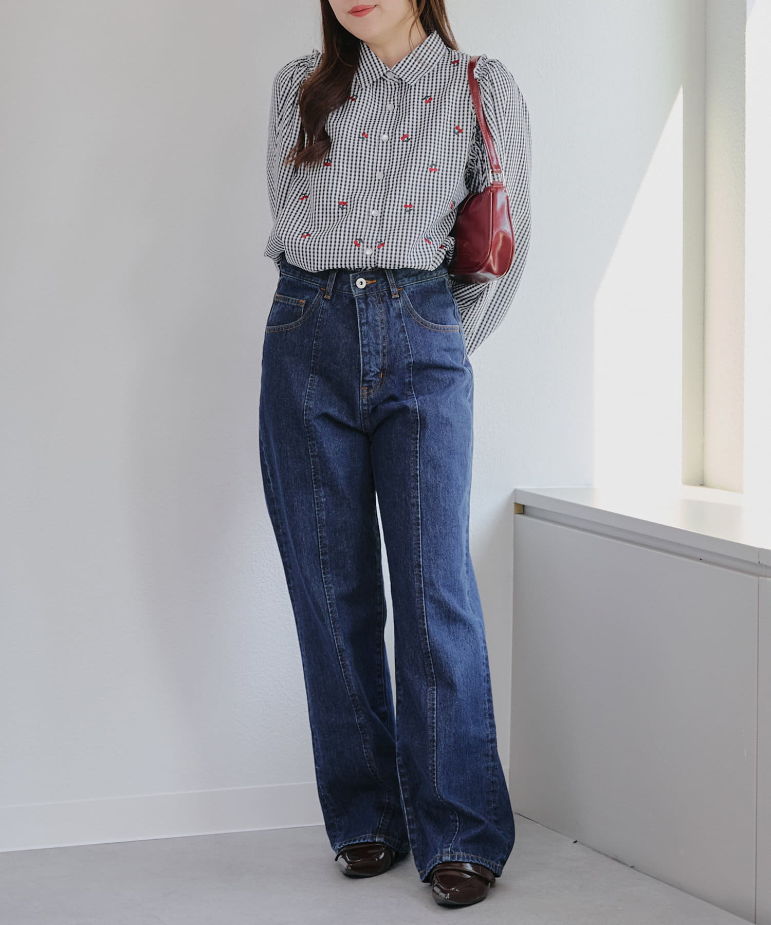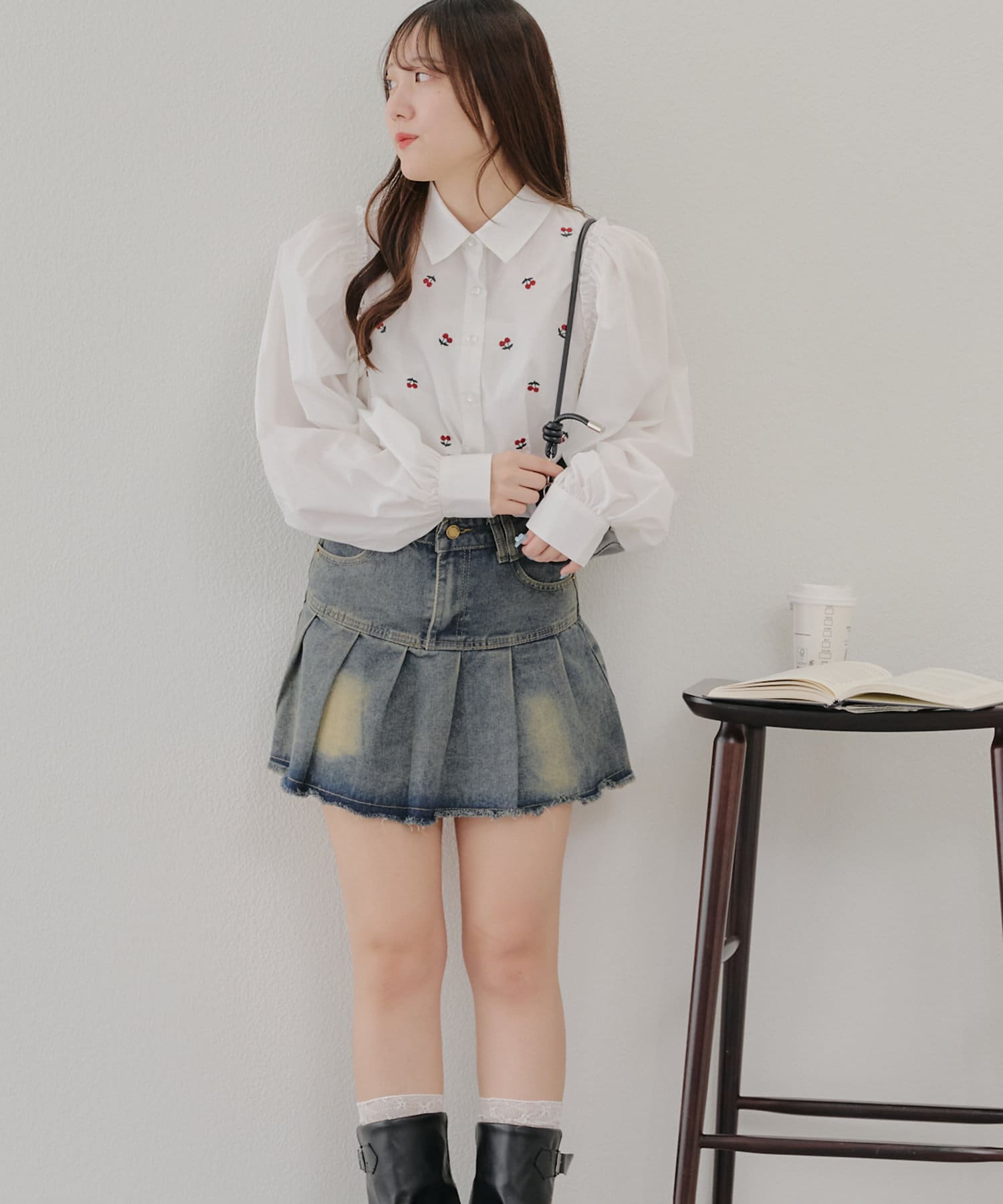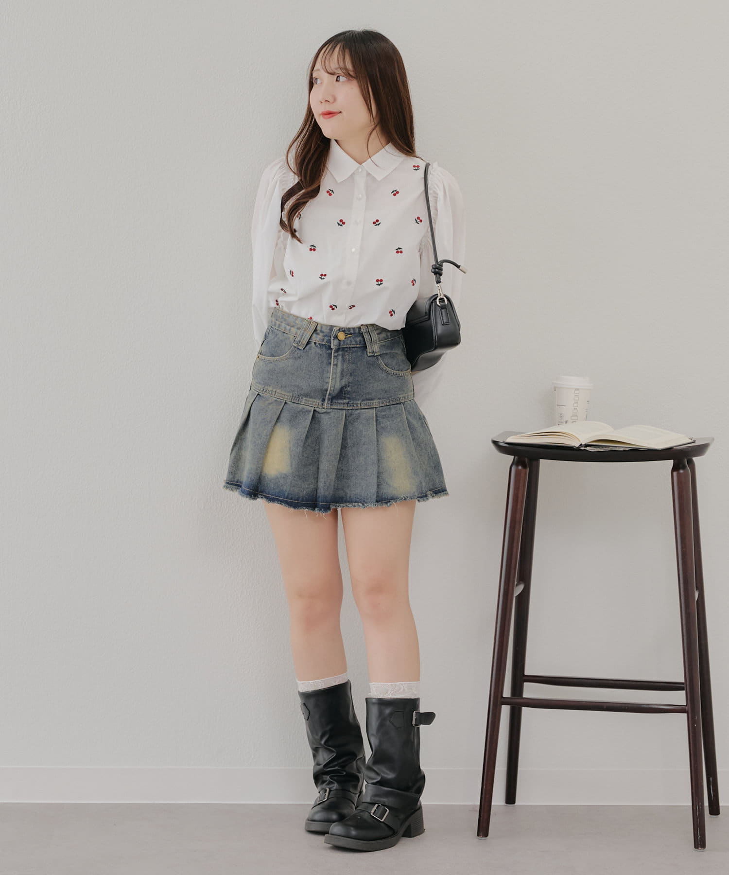 ・チェリーモチーフの刺繍が可愛いブラウス。