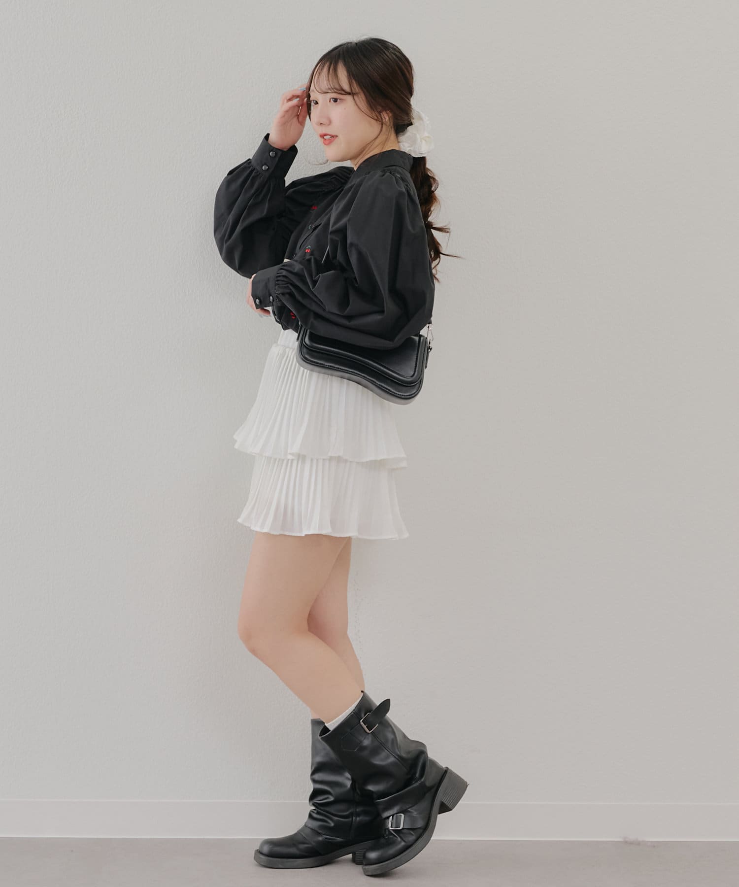 ・フリルのミニスカートを履いて甘めなスタイリングも◎