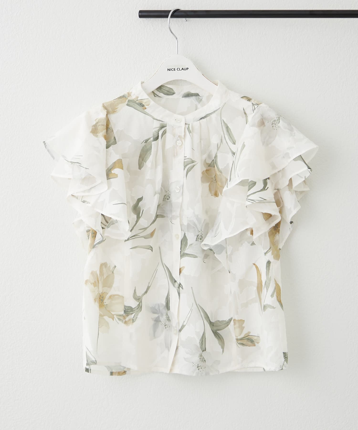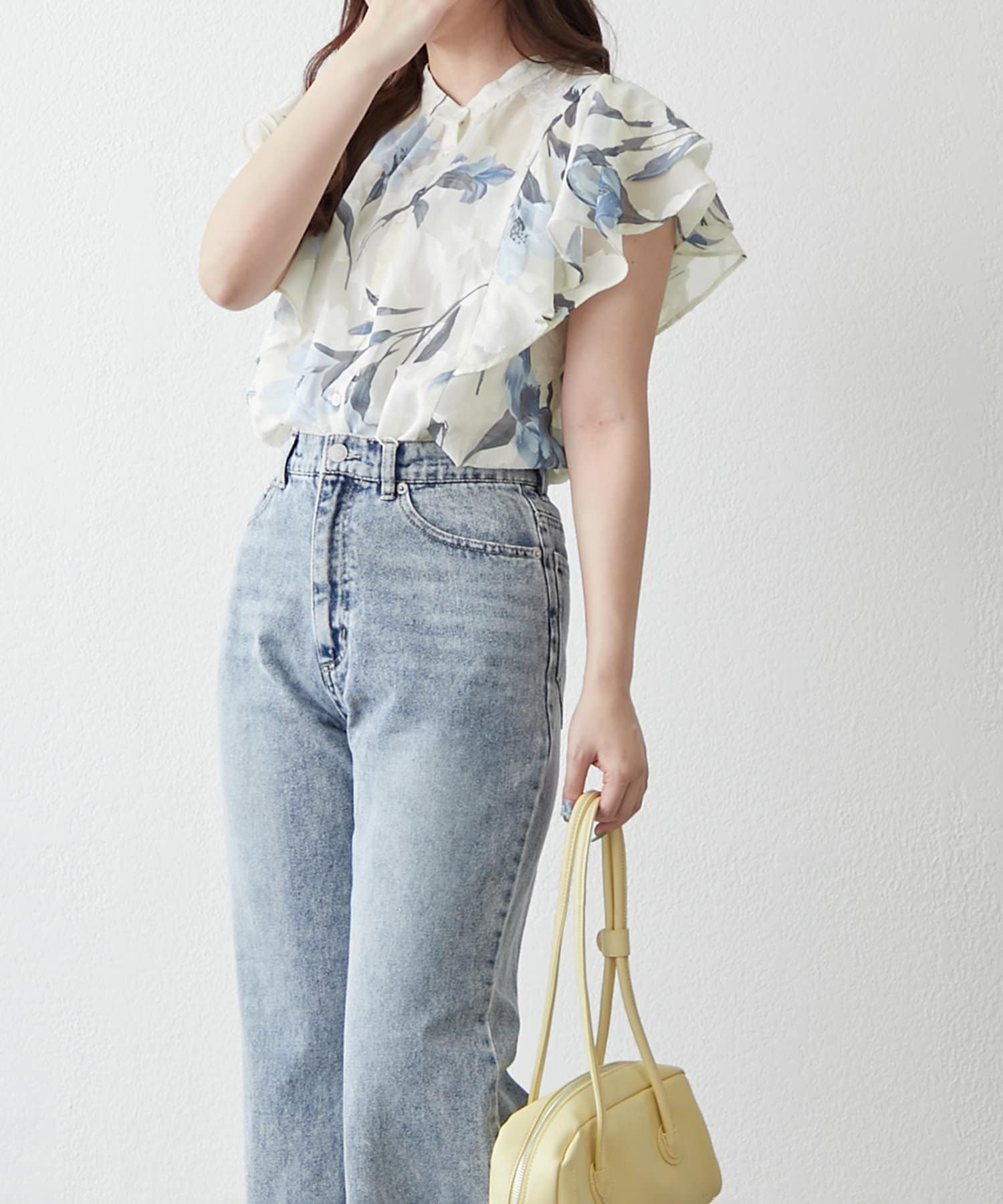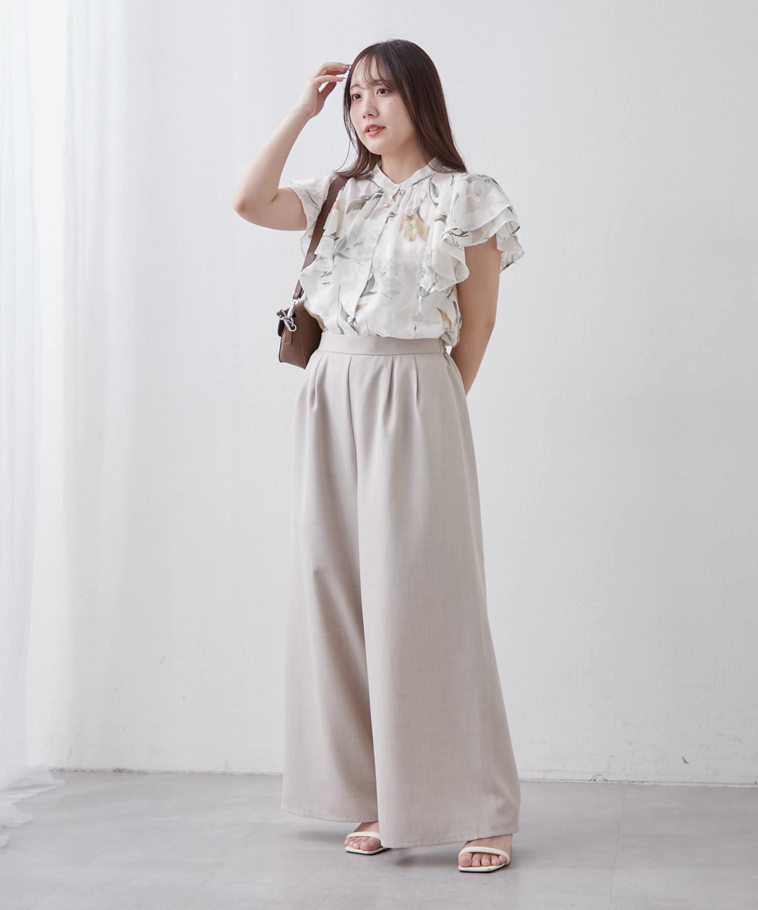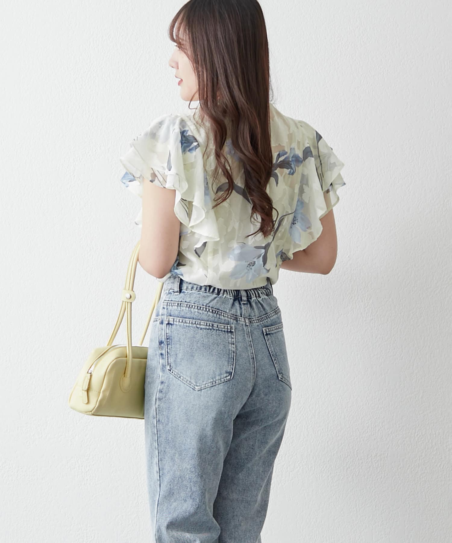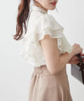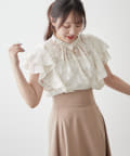 ・ふんわりとしたフリル袖が女性らしい印象に。