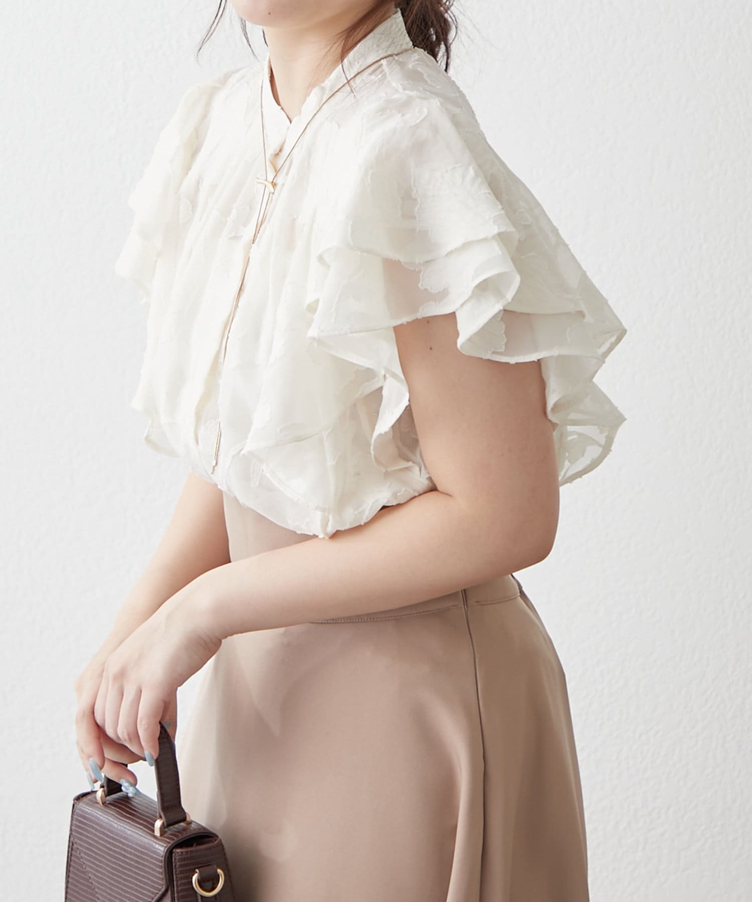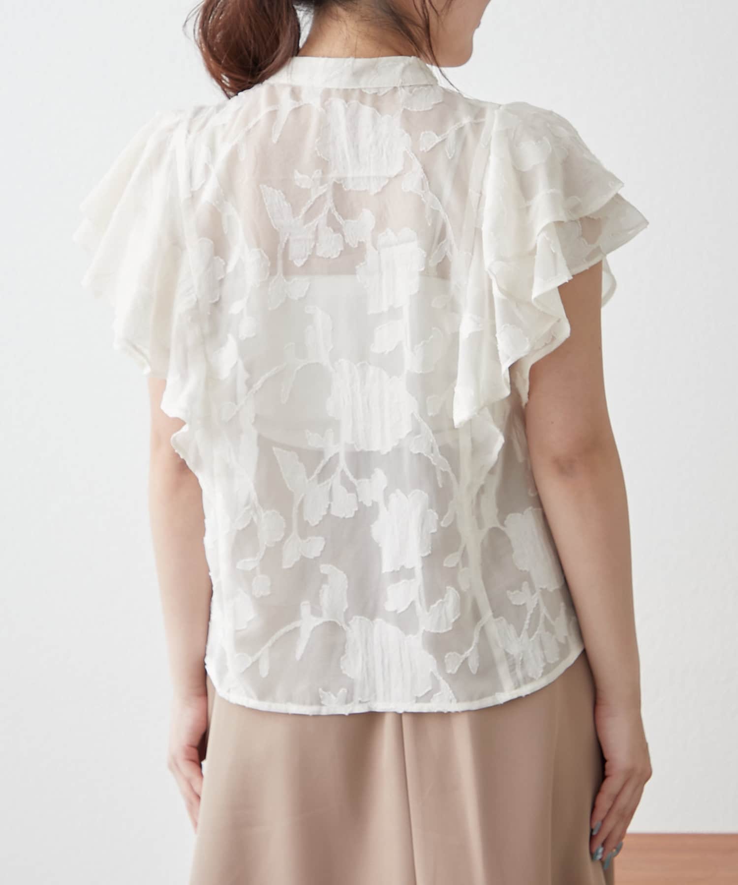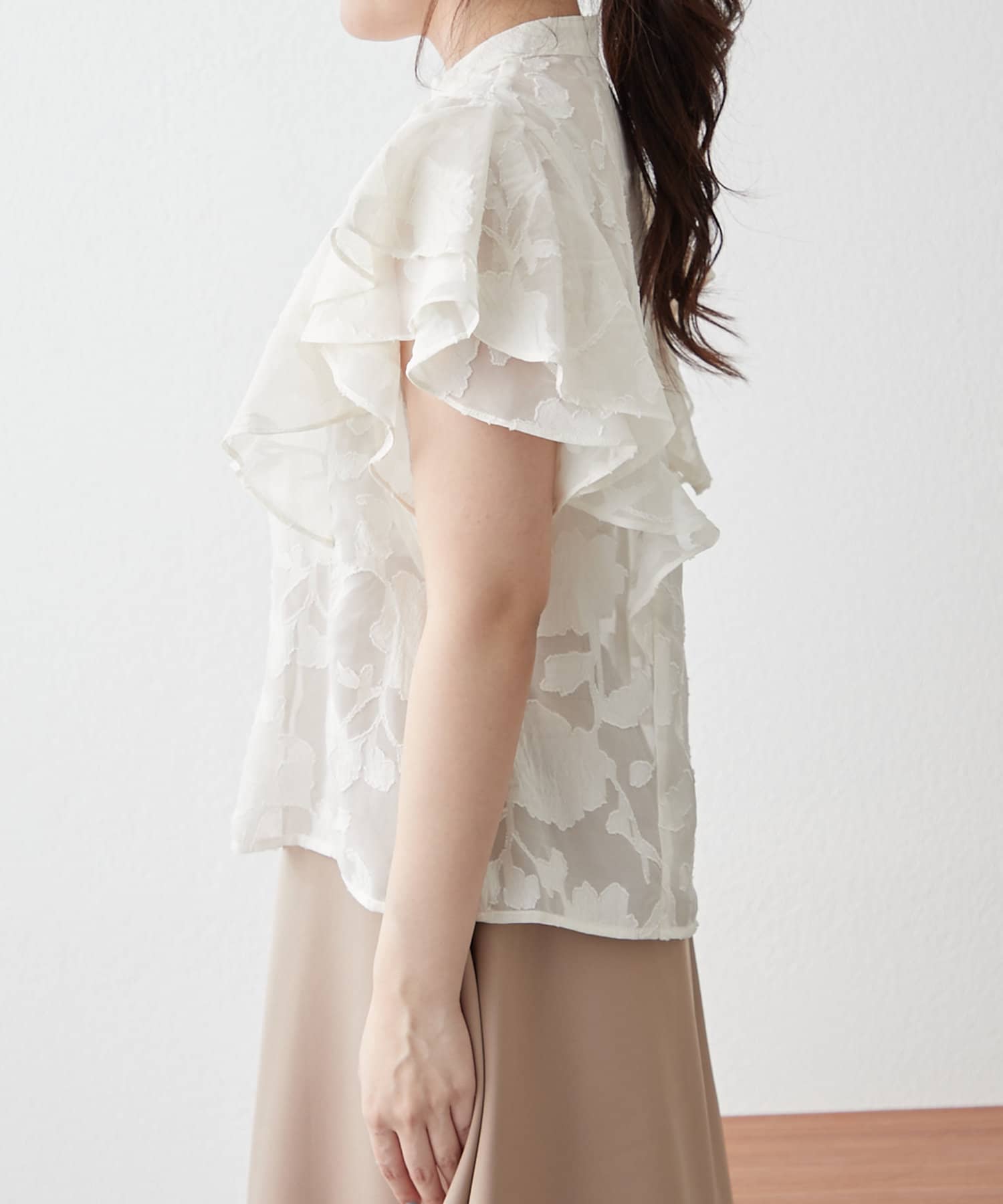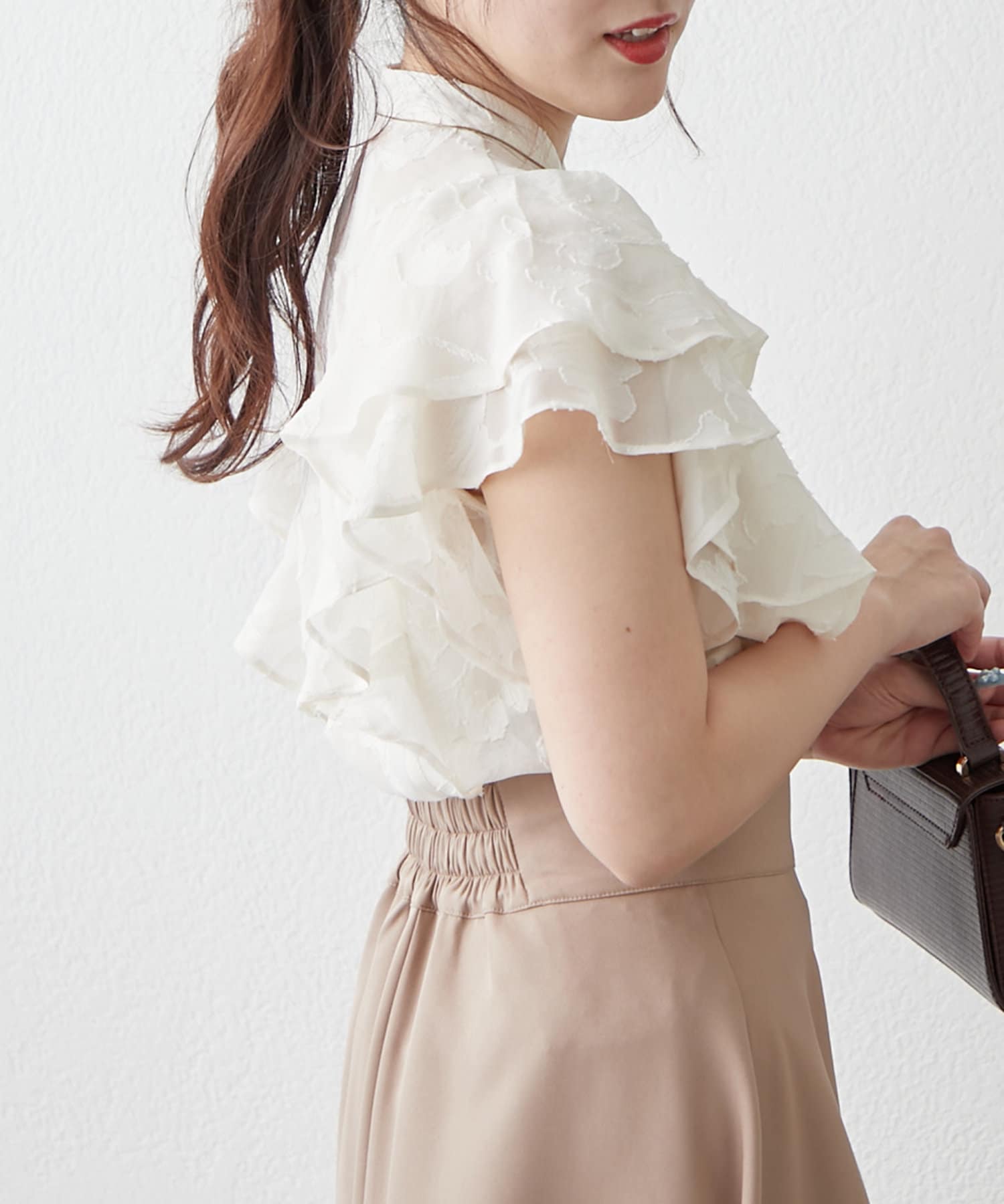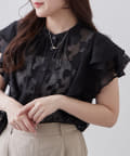【ON・OFFつかえる!】袖フリルジャガードブラウス