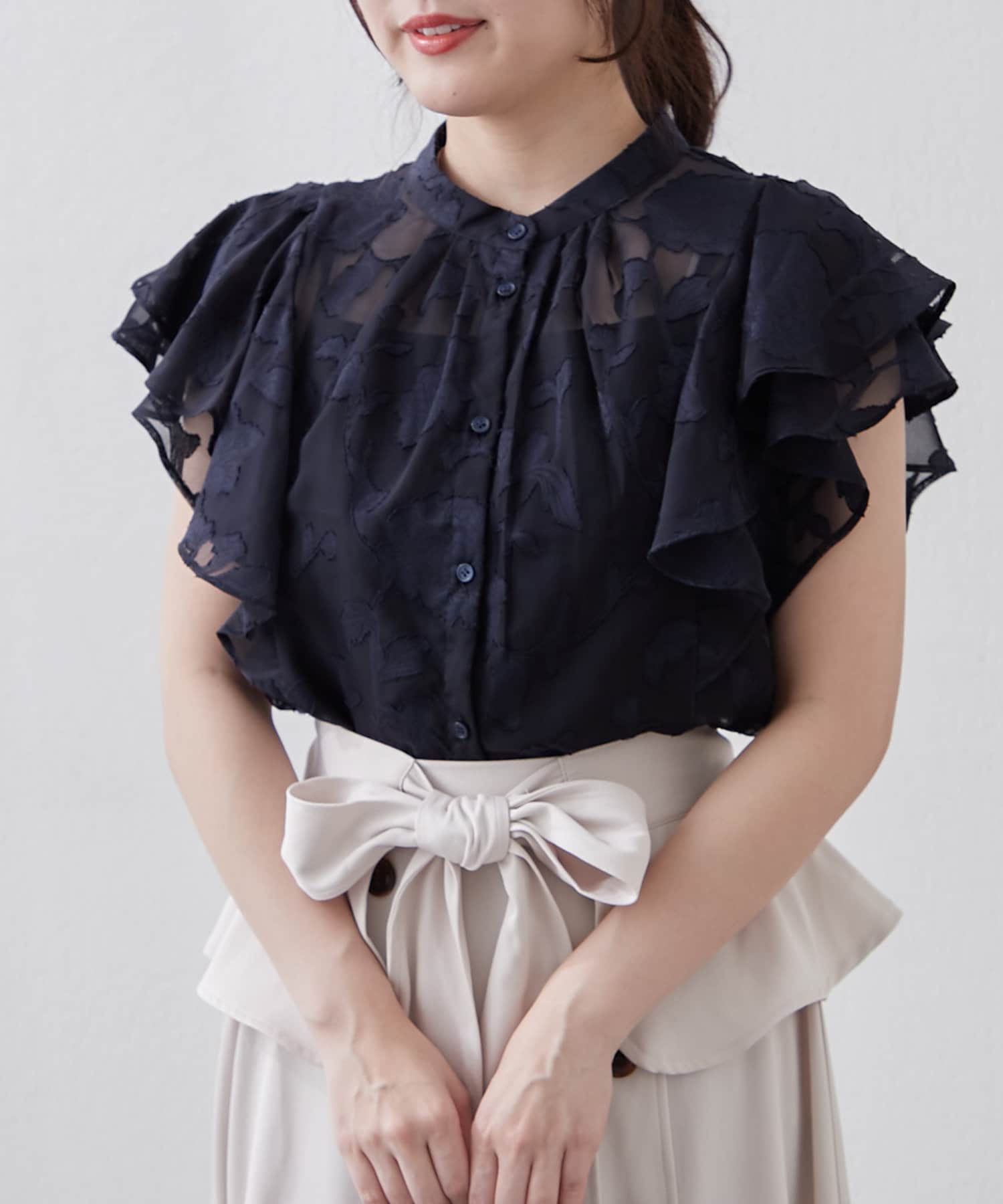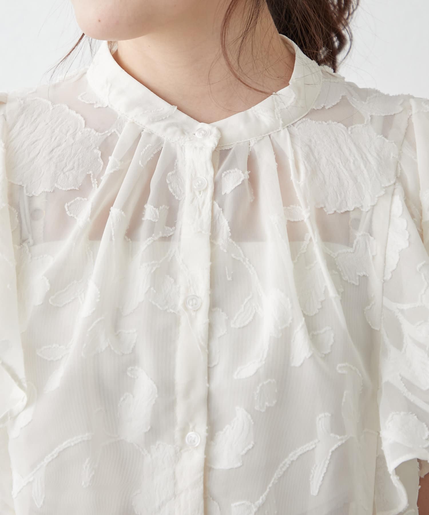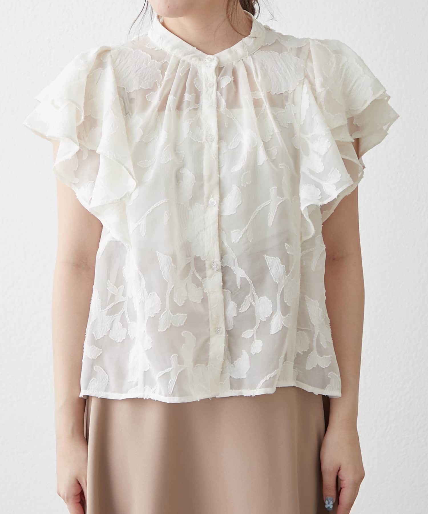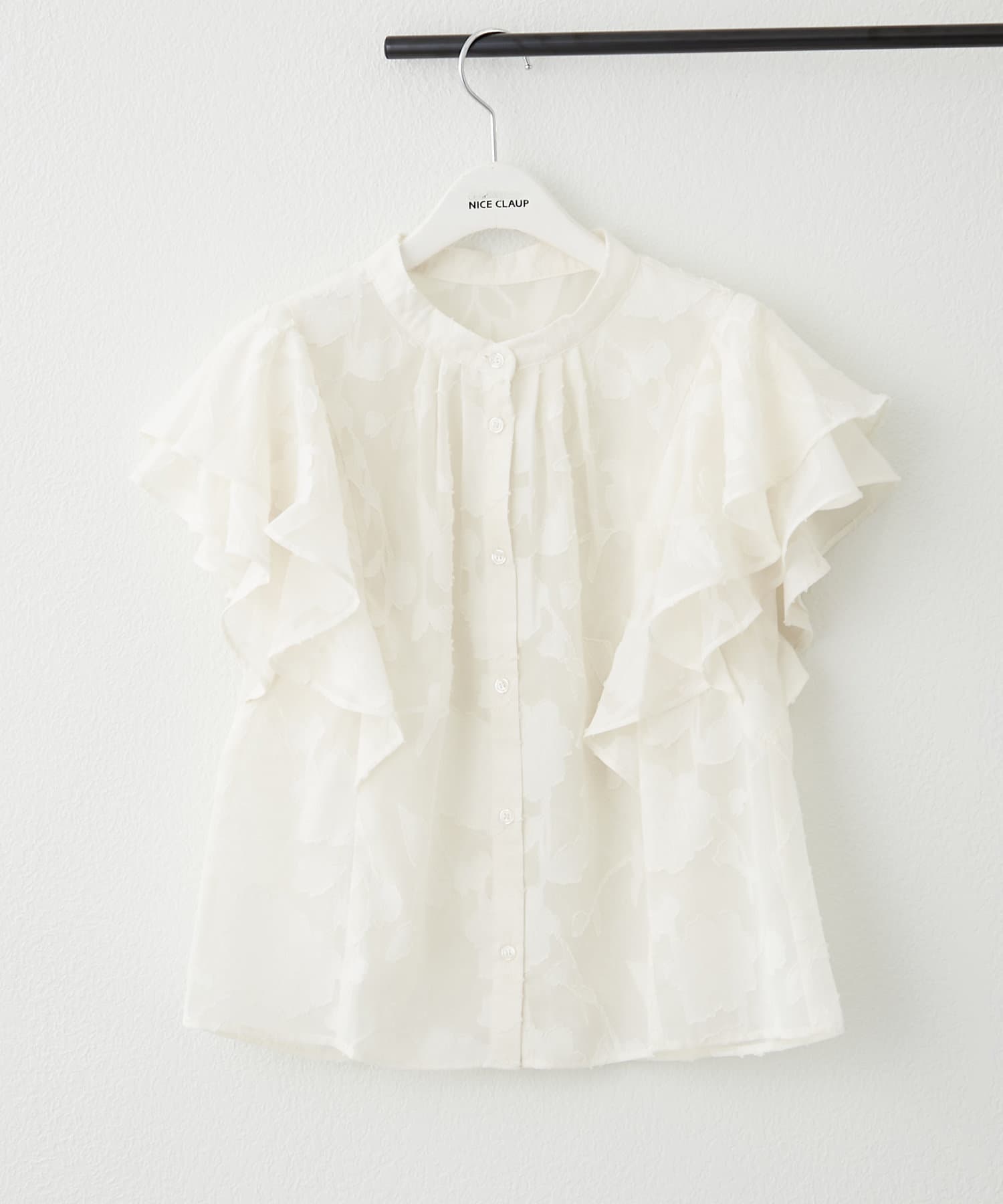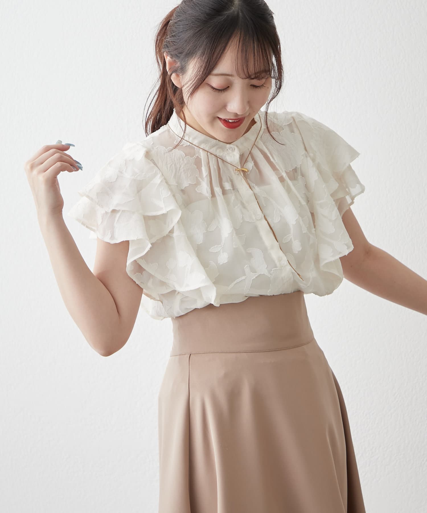 【ON・OFFつかえる!】袖フリルジャガードブラウス
