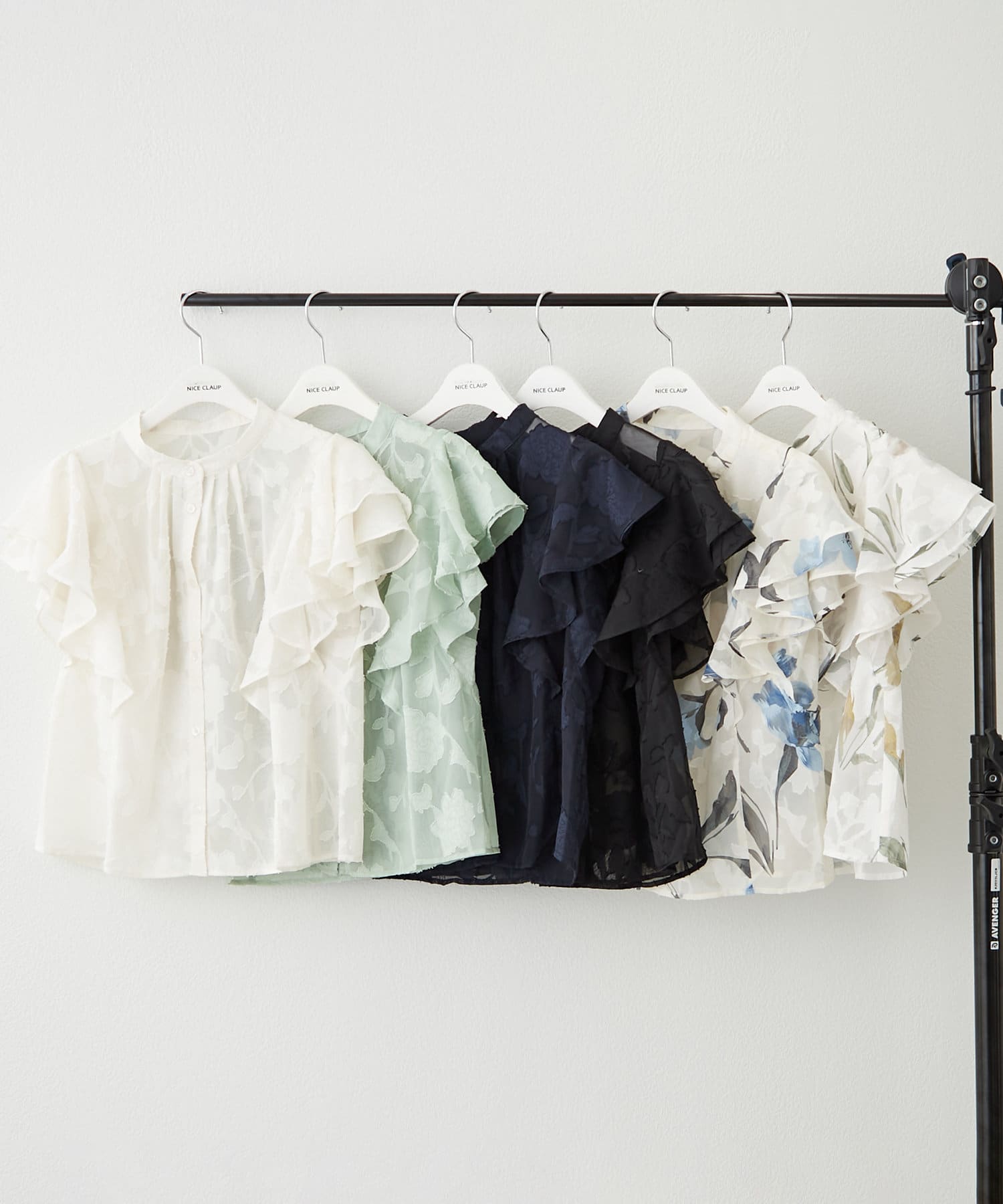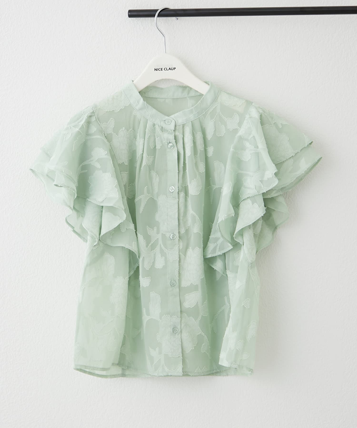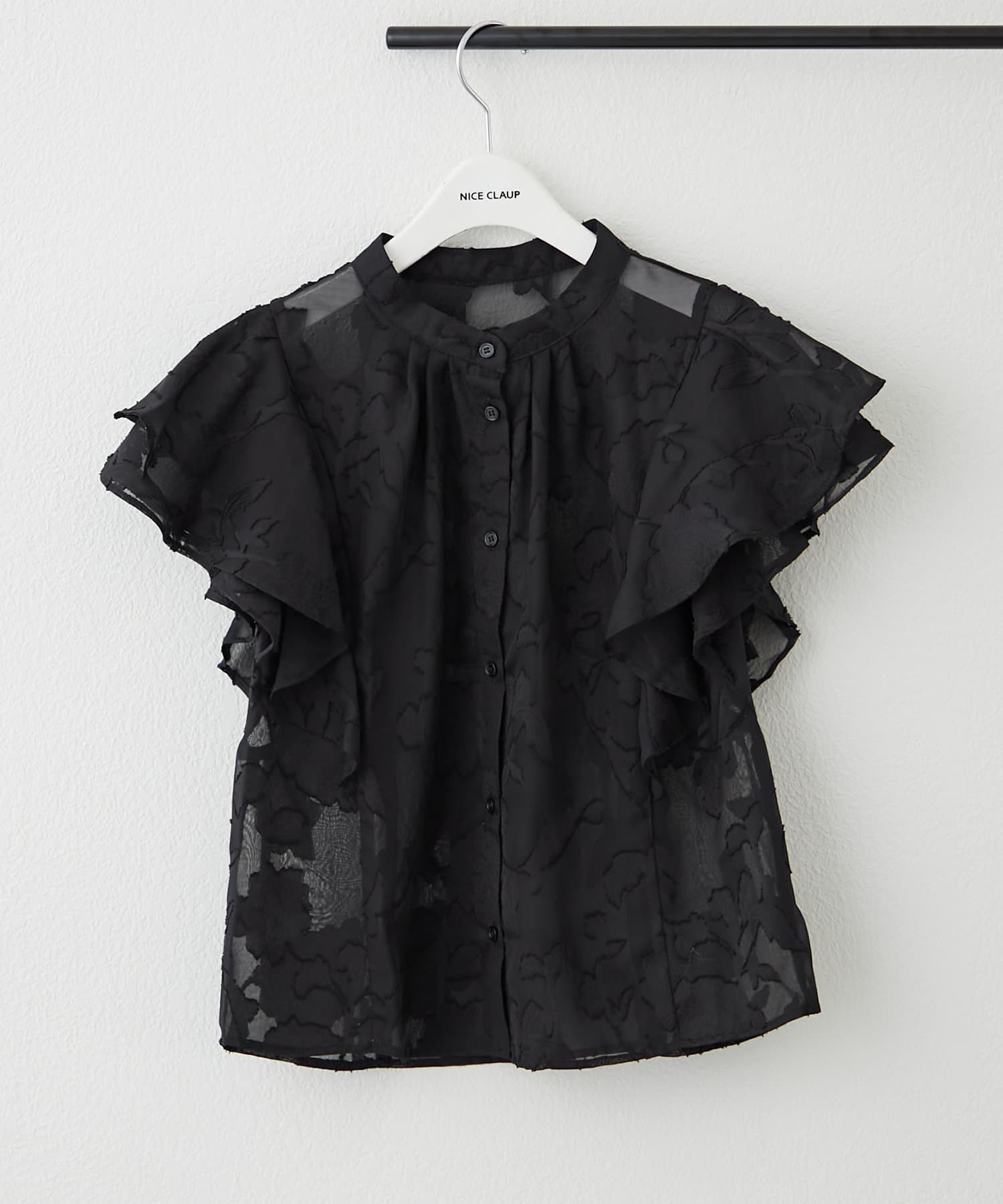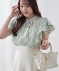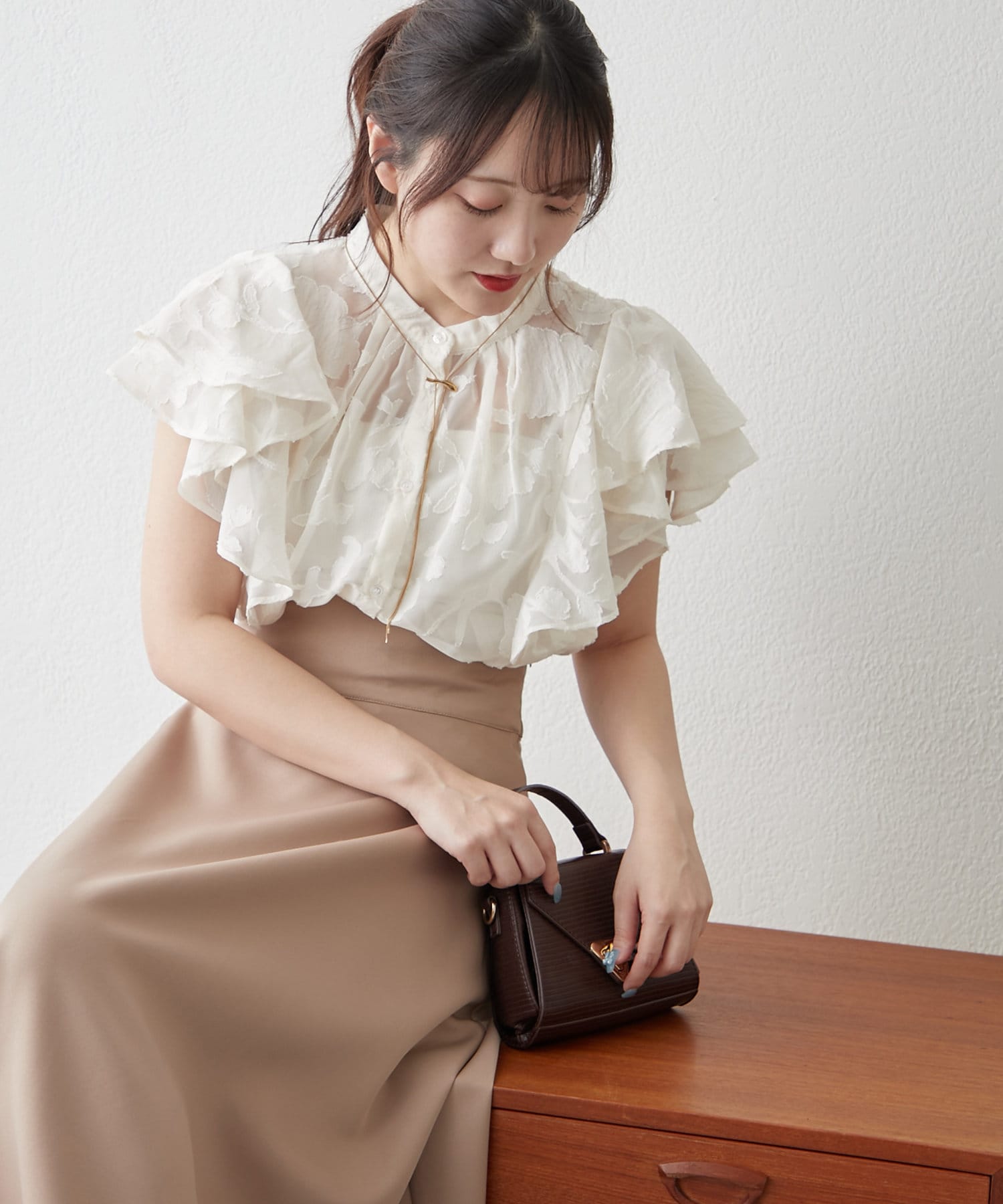 【ON・OFFつかえる!】袖フリルジャガードブラウス