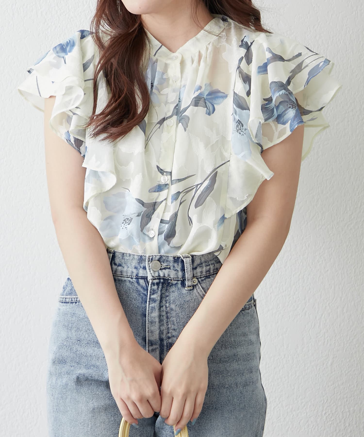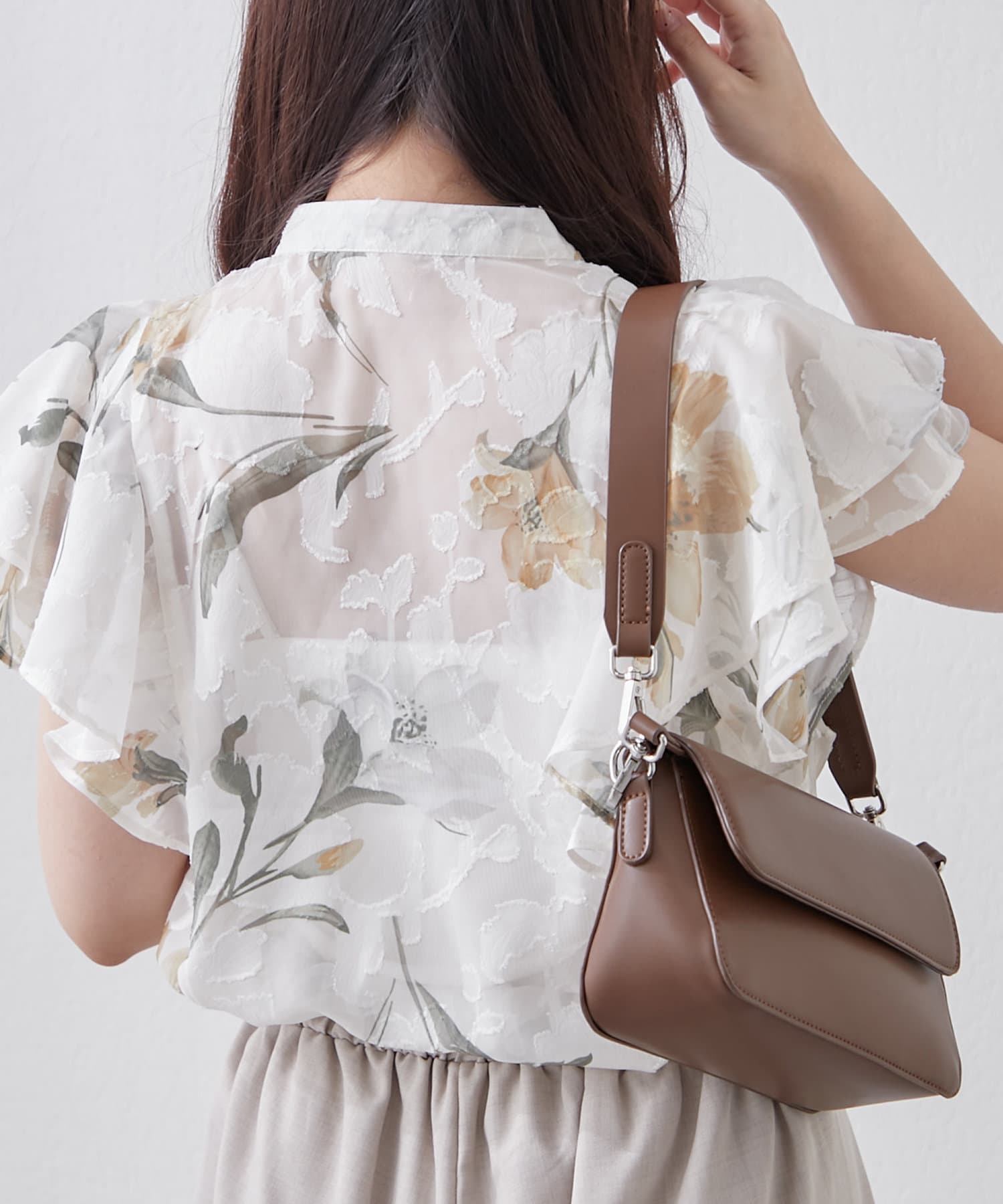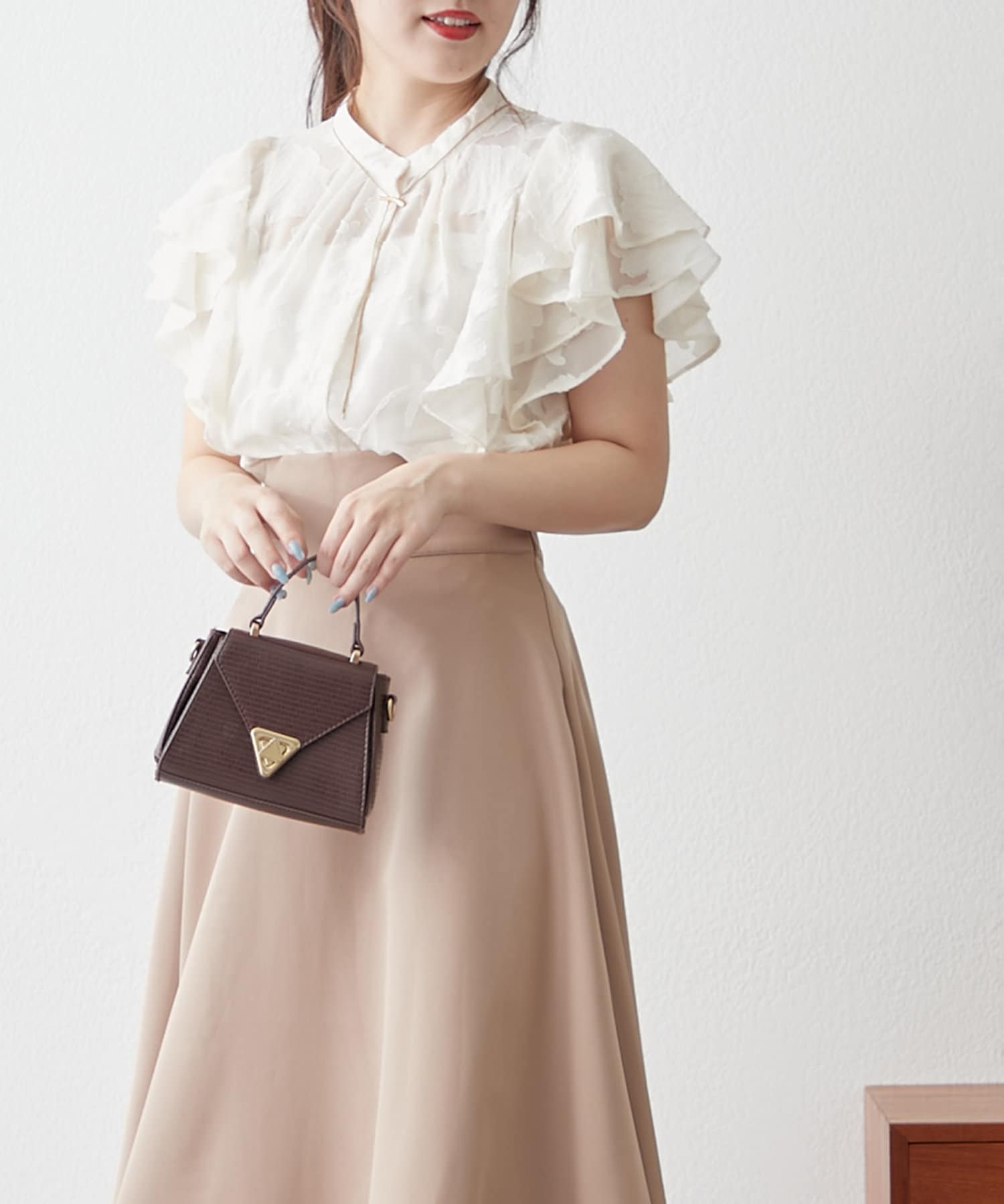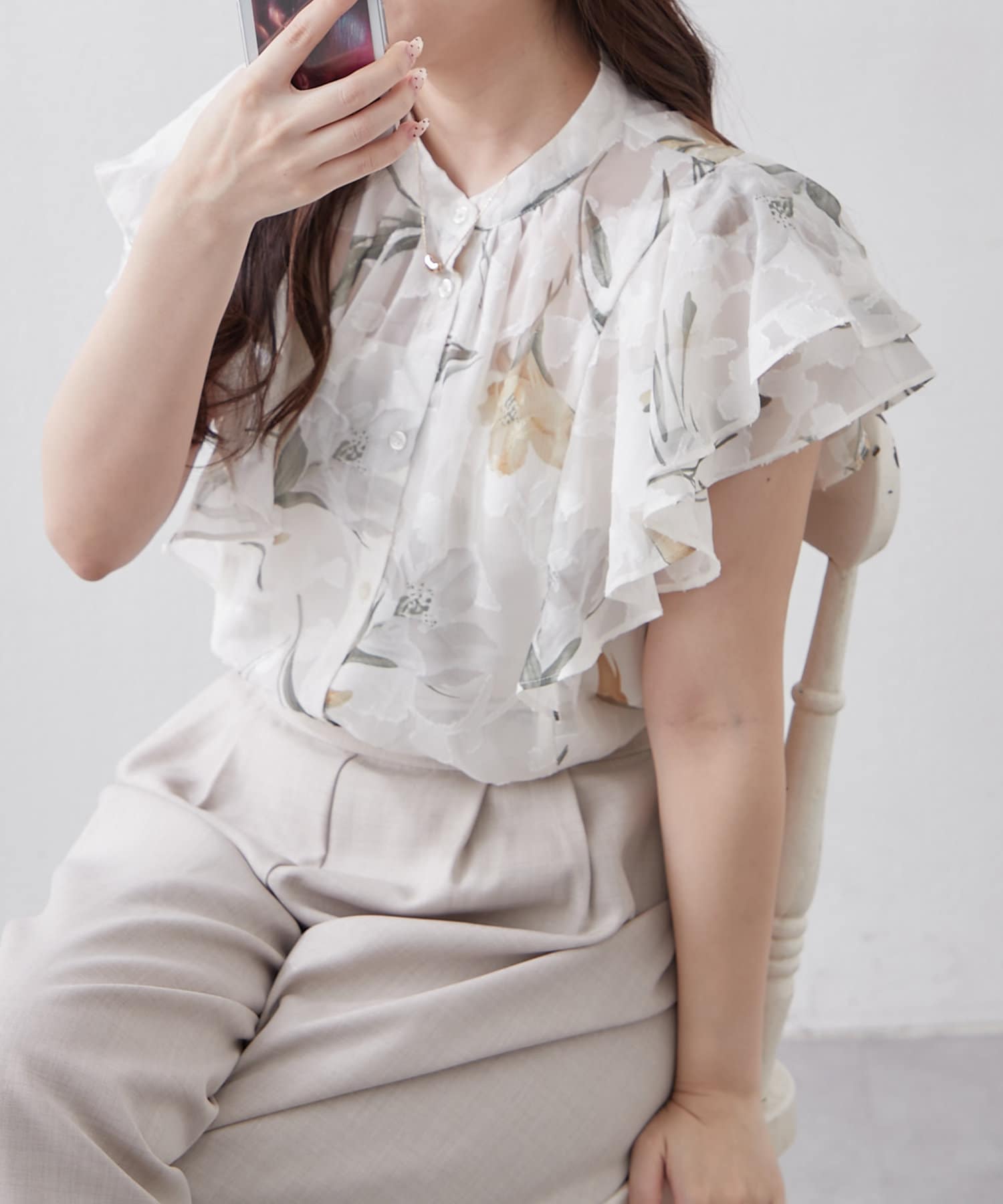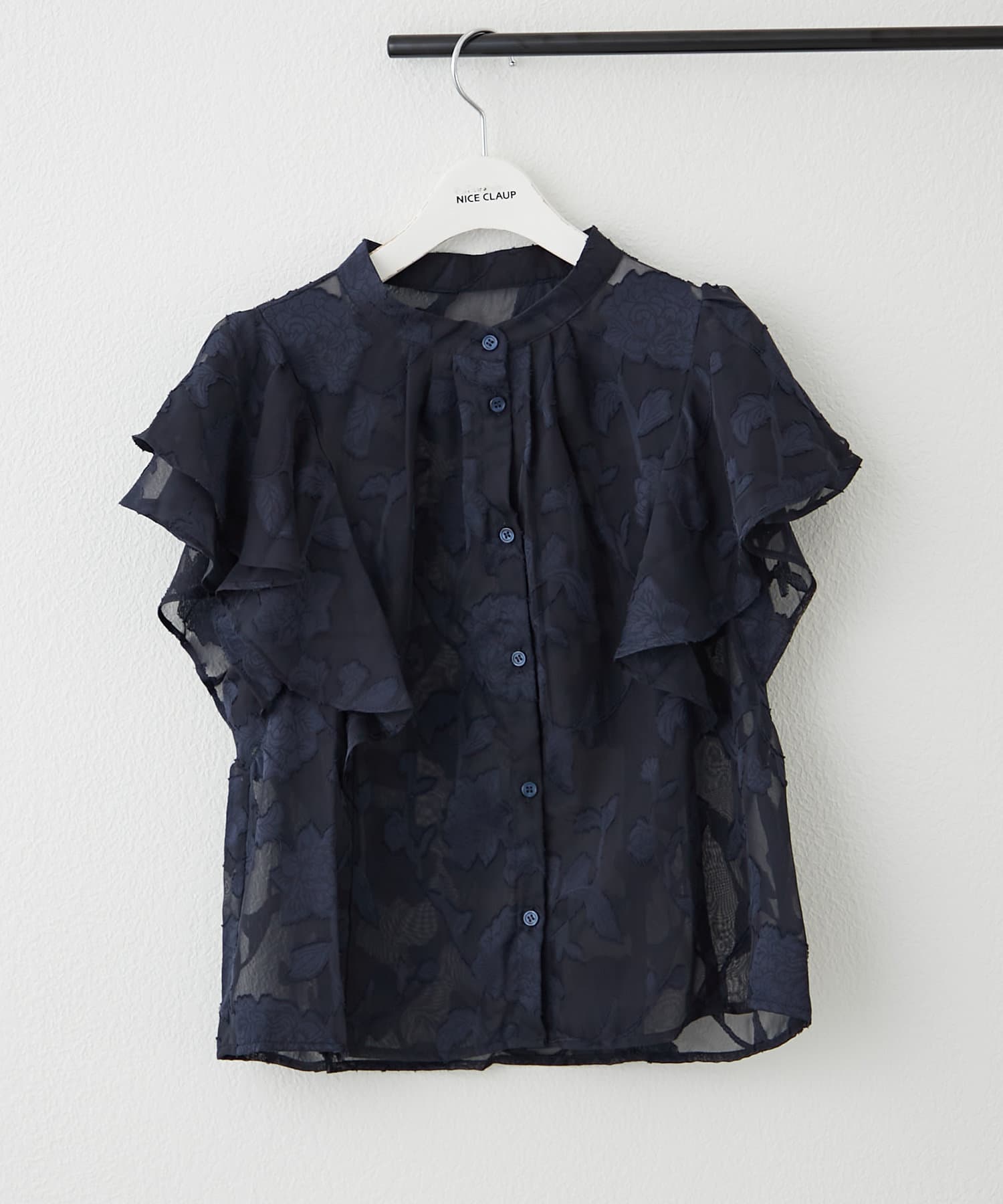 【ON・OFFつかえる!】袖フリルジャガードブラウス